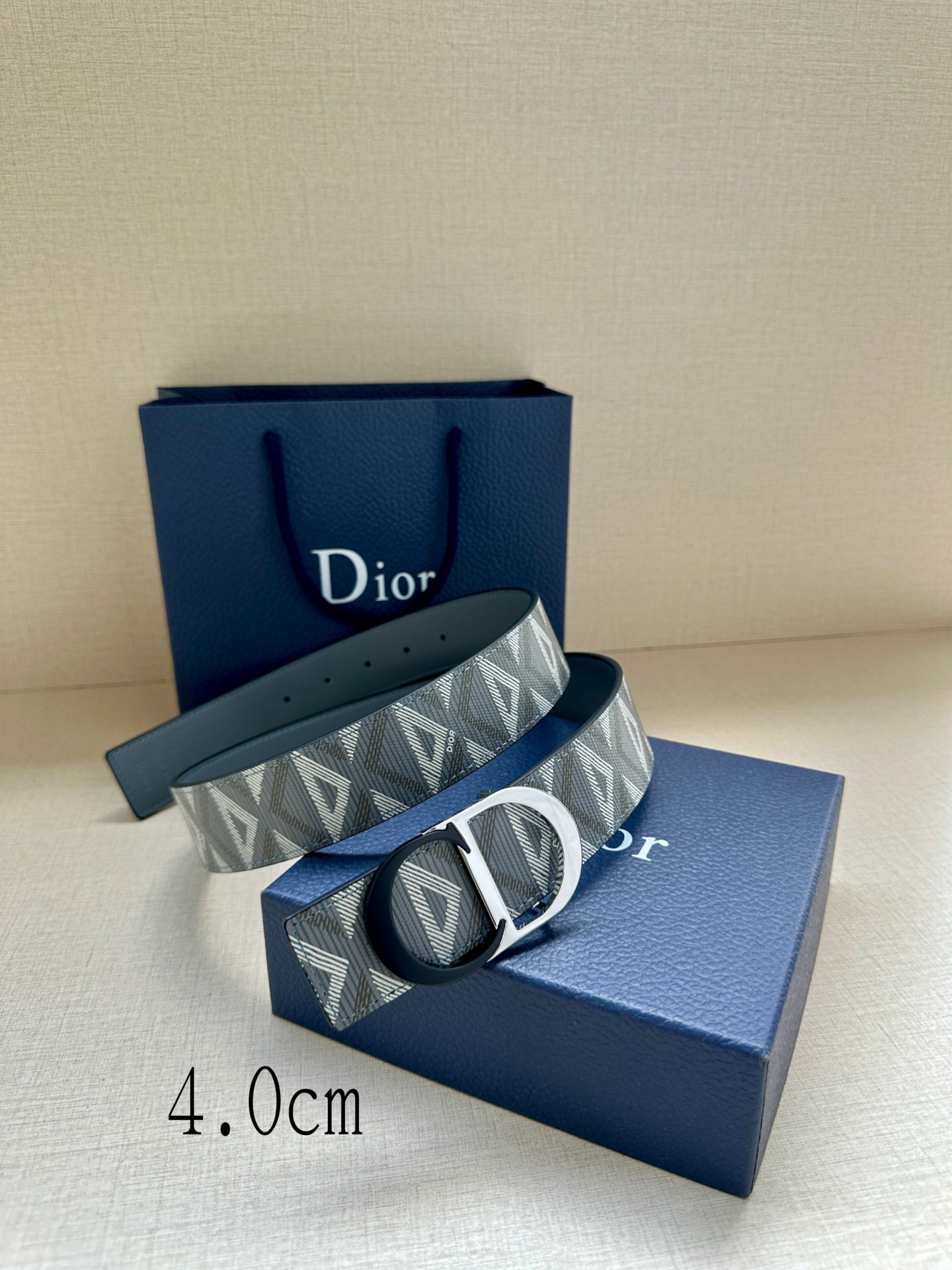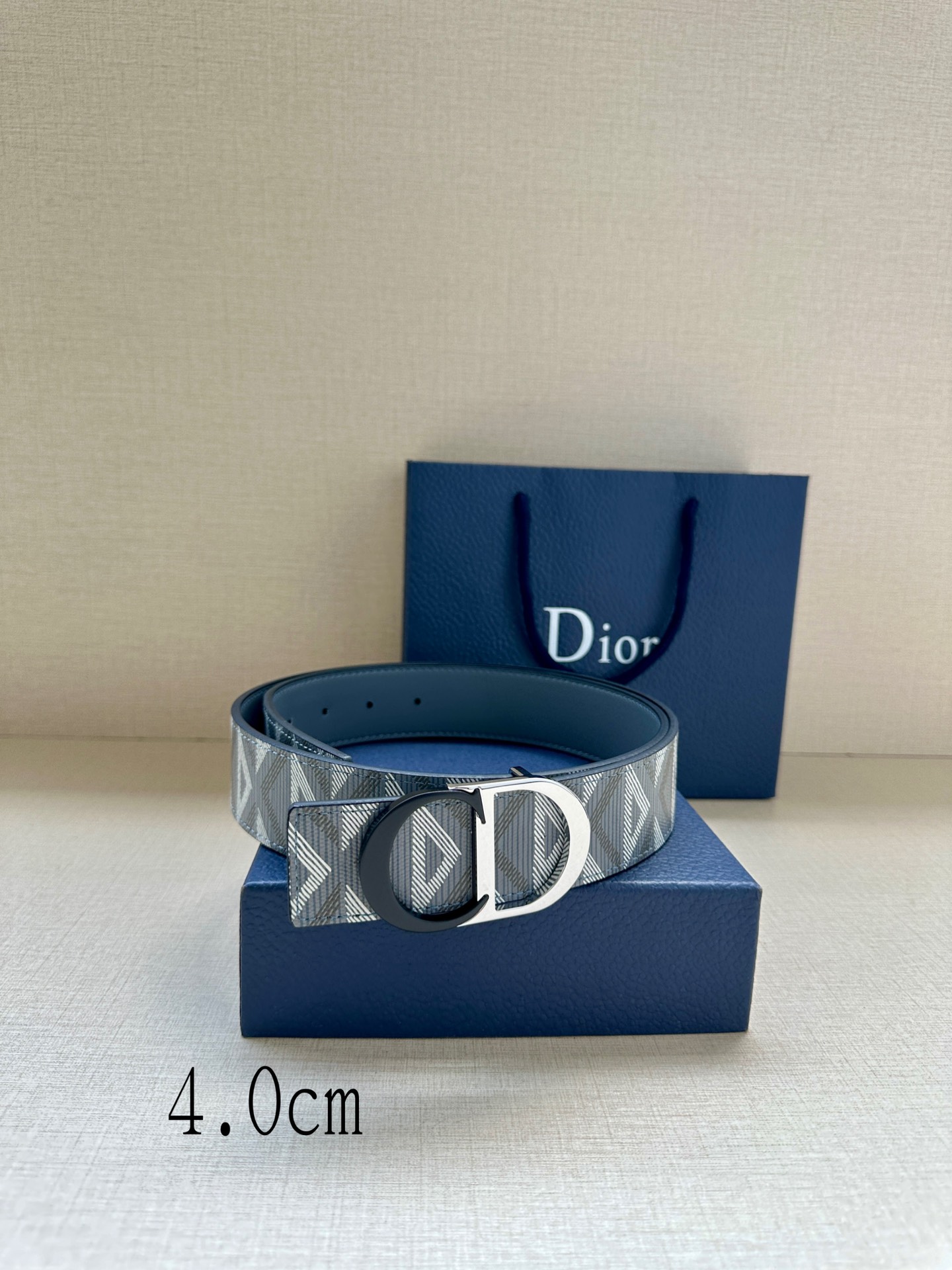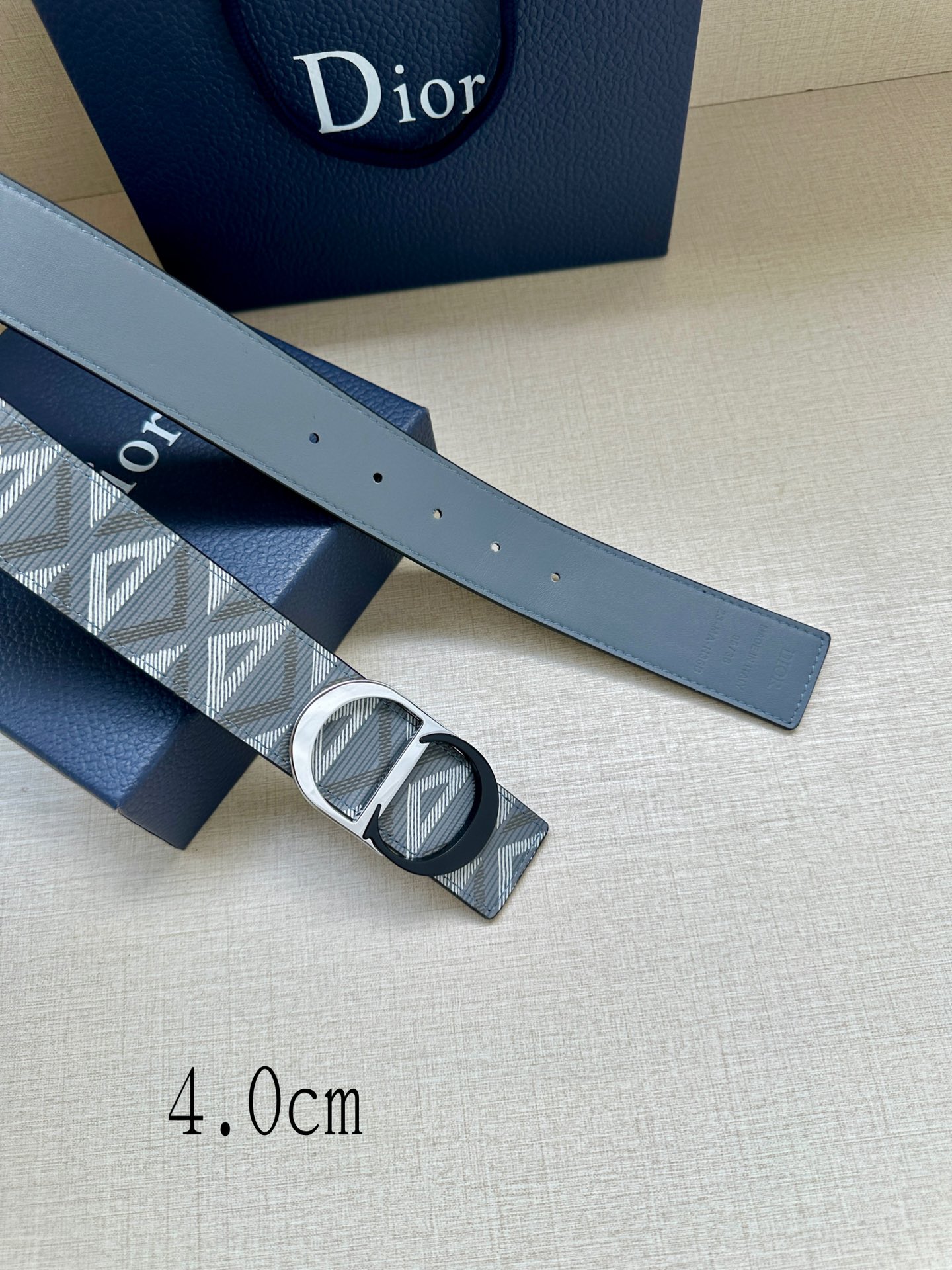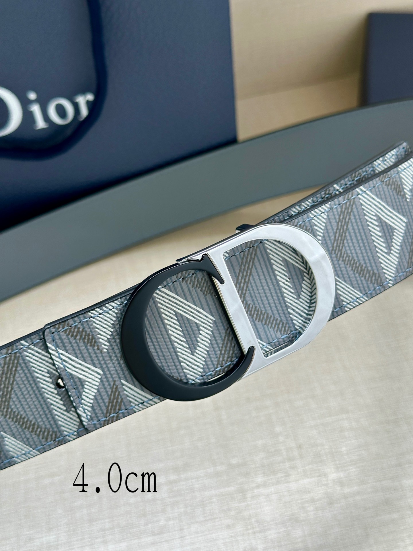 Width 4.0 This 40 mm double-sided belt buckle combines elegant temperament with modern style. Double-sided design, one side uses black CD Diamond patterned canvas, the other side uses smooth calfskin in the same tone. The CD Diamond pattern, designed by Marc Bohan in 1974, reinterprets the CD initials in a diamond form, outlining three-dimensional lines on cotton canvas. The length is adjustable and can be paired with various 40 mm belt buckles.