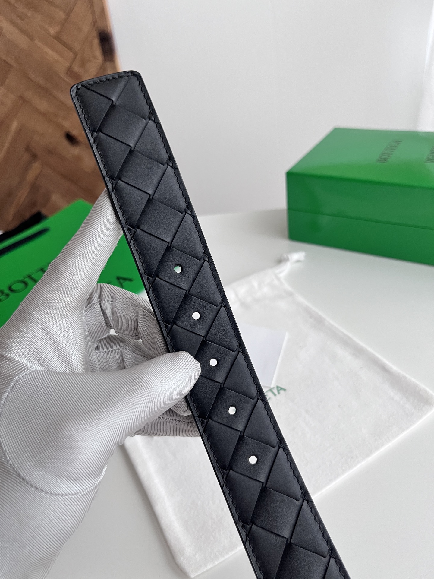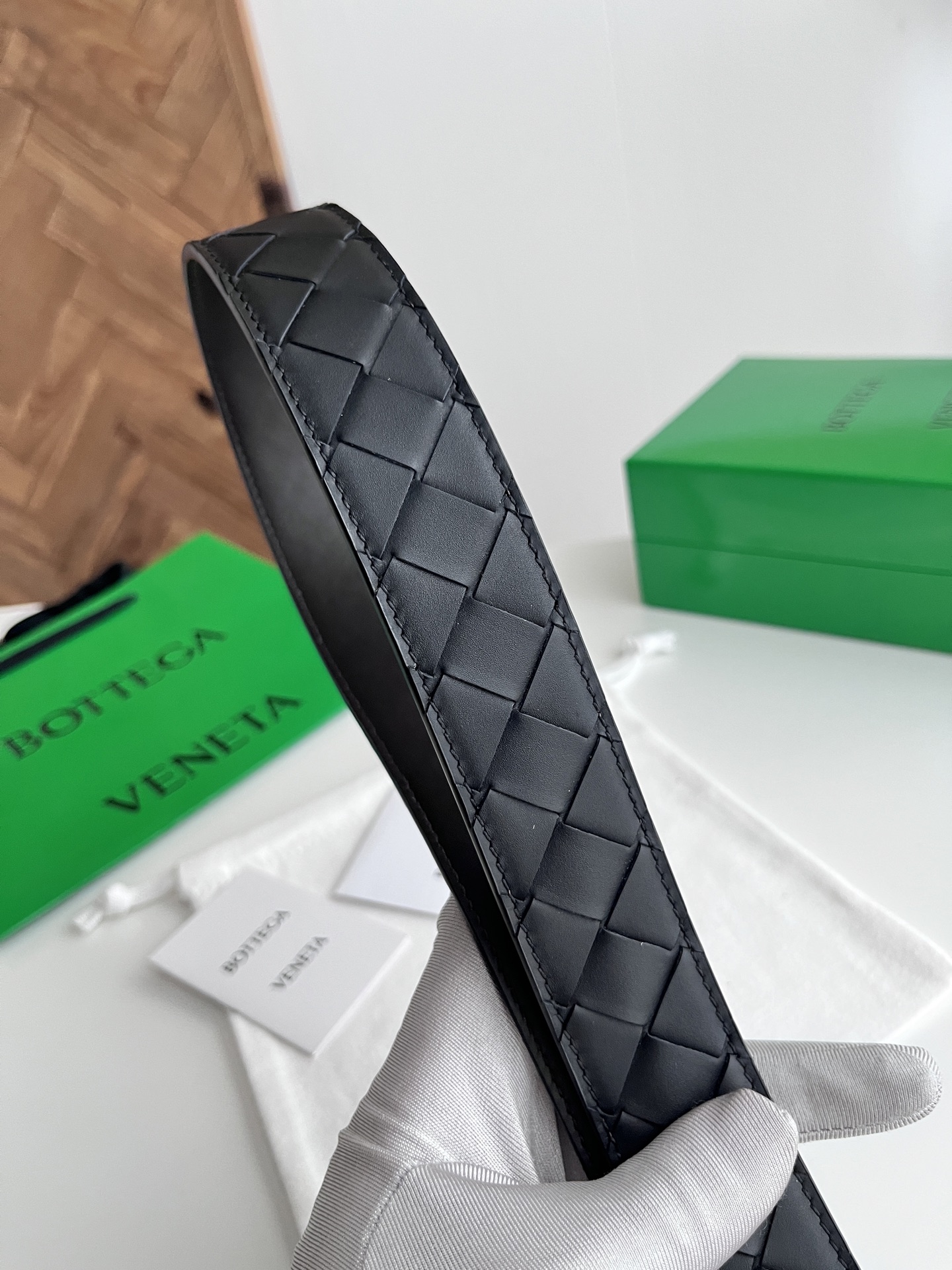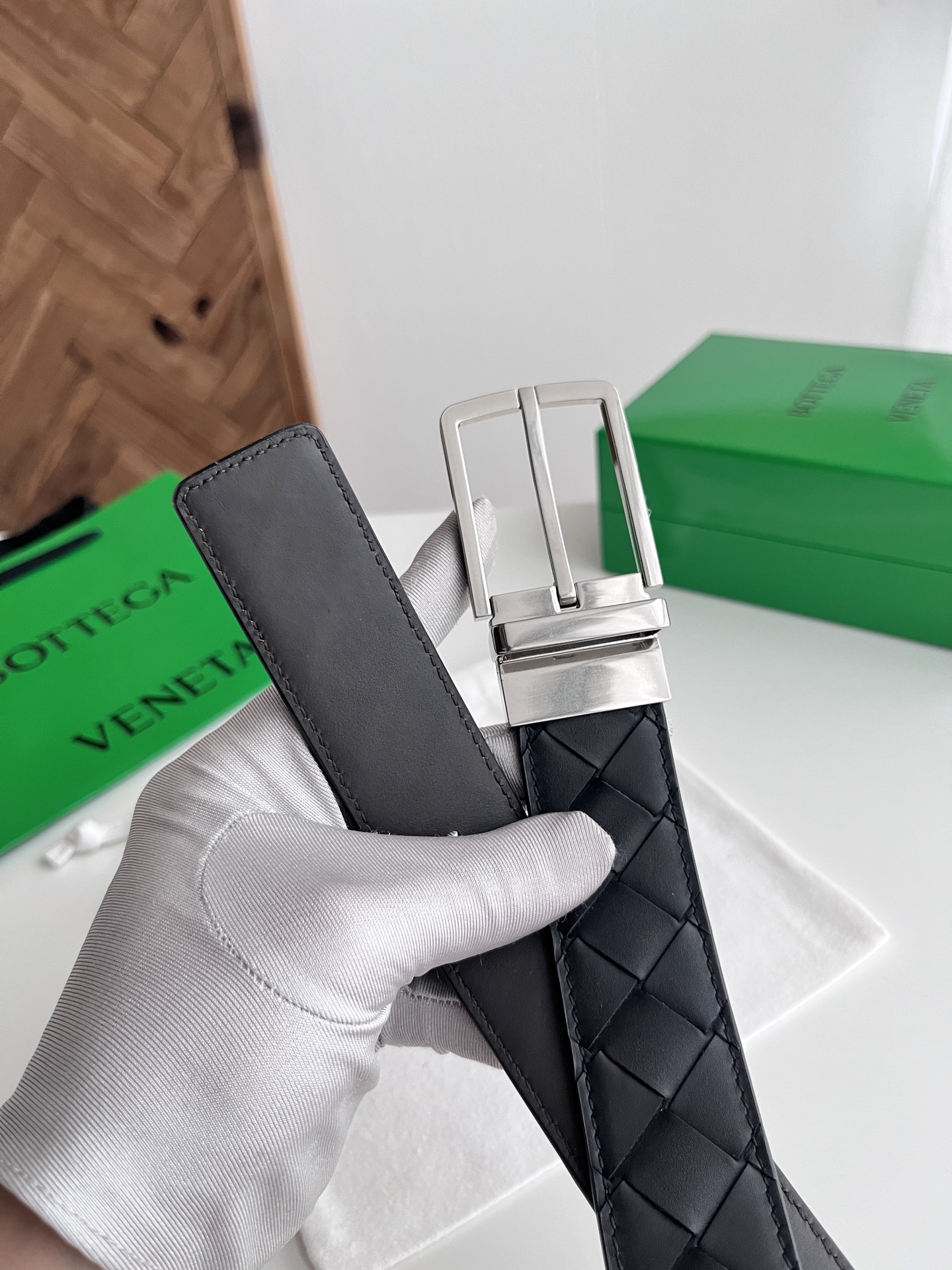Bv 2025 latest men's woven belt double-sided use pure handmade intreccio large grid weaving double-sided Italian calfskin with vacuum gun color rotatable pin buckle belt width 35MM