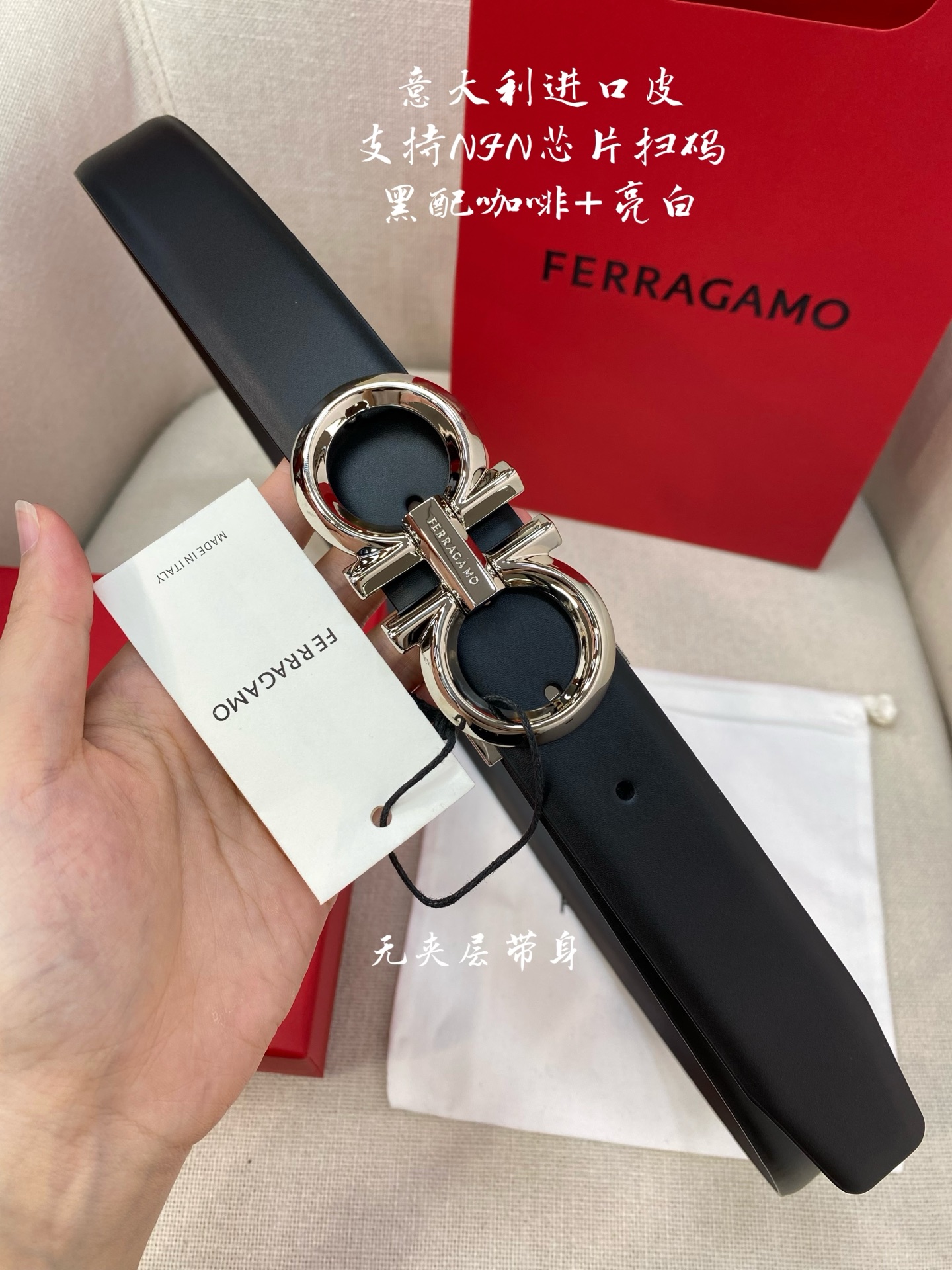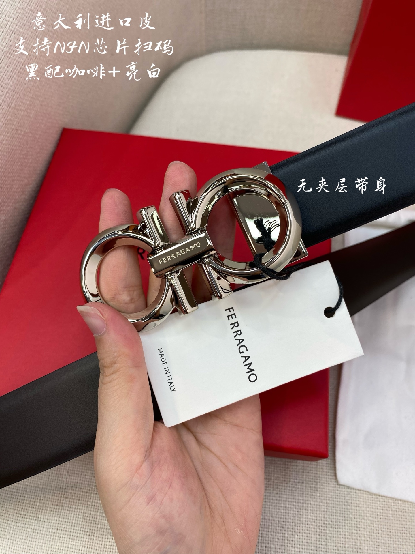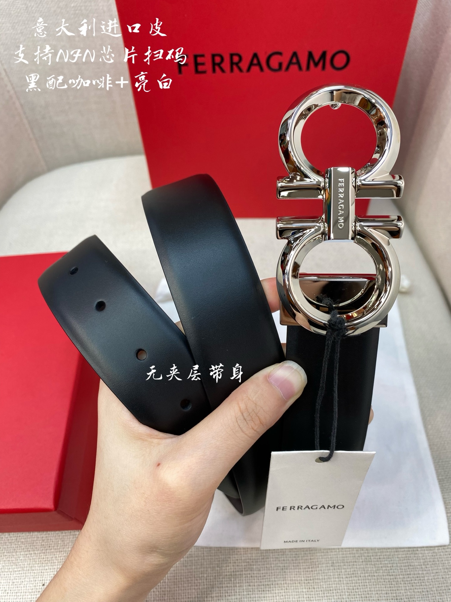 Ferragamo Ferragamo NFC chip scanning code version Genuine size 3.5cm Italian original factory leather