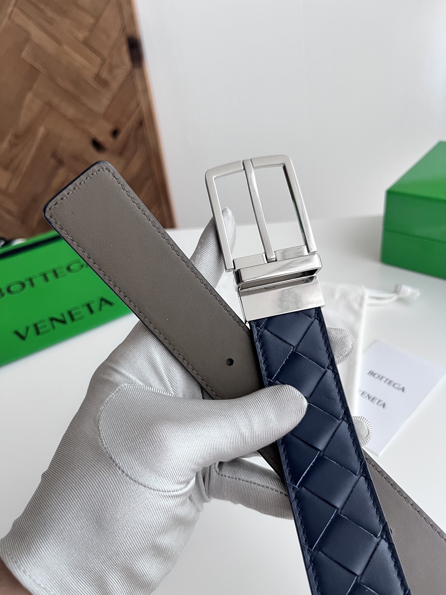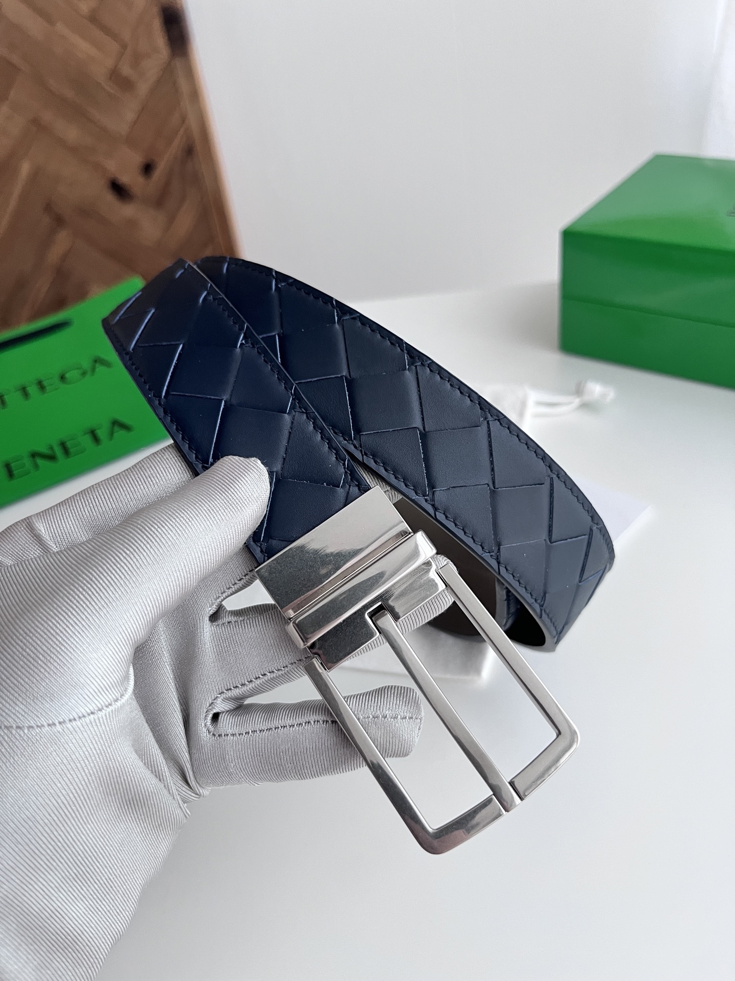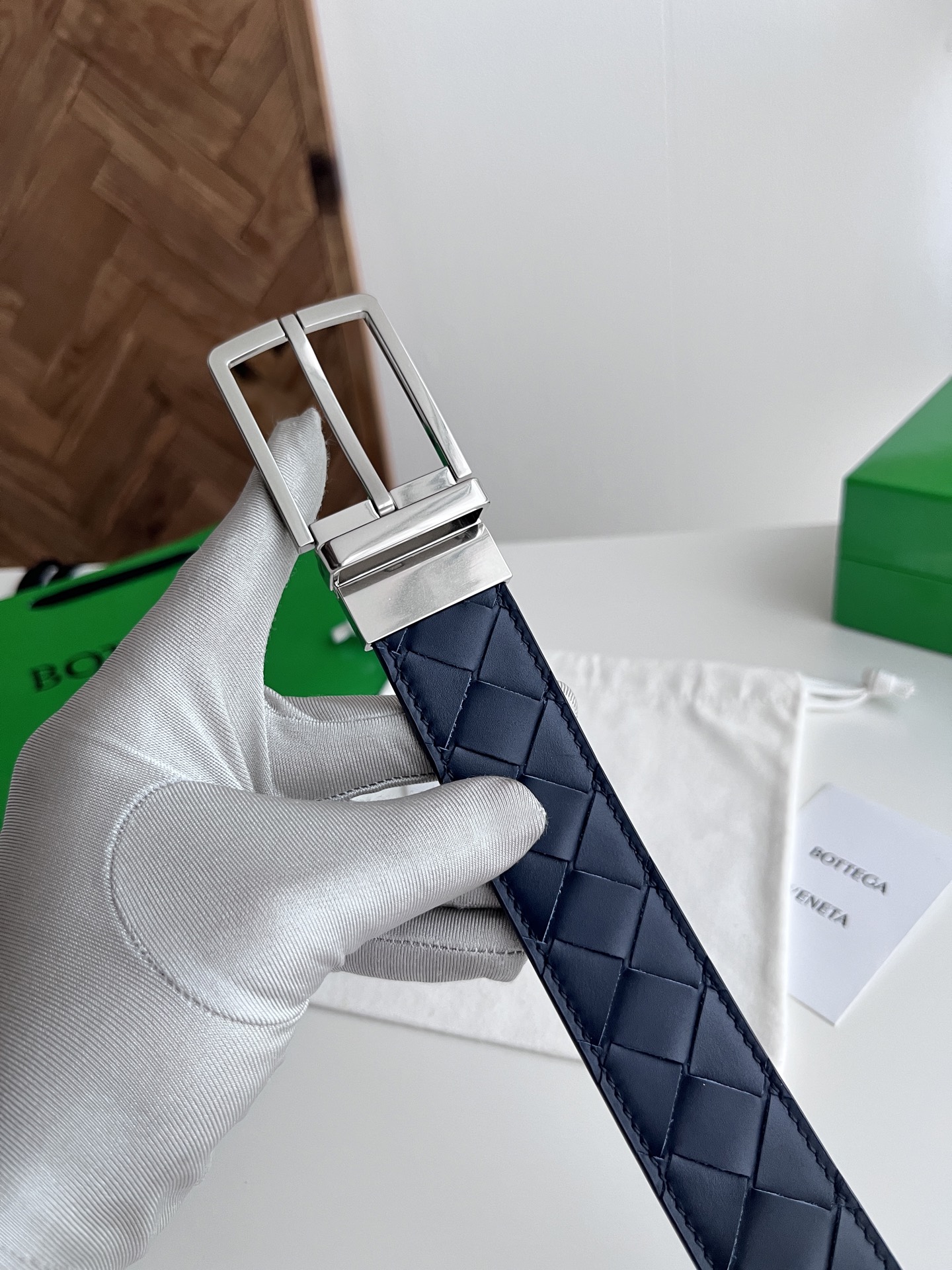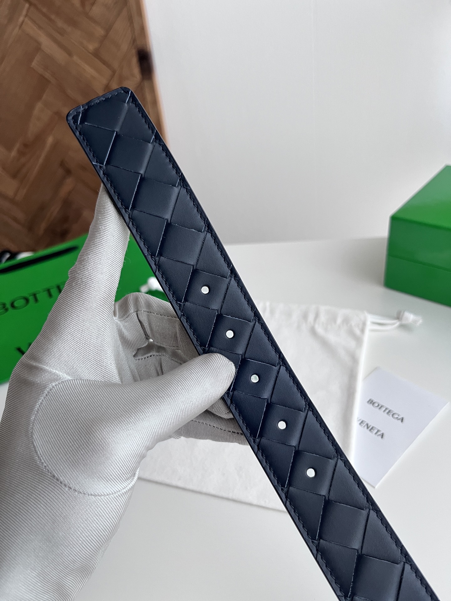 Bv 2025 latest men's woven belt double-sided use pure handmade intreccio large grid weaving double-sided Italian calfskin with vacuum gun color rotatable pin buckle belt width 35MM
