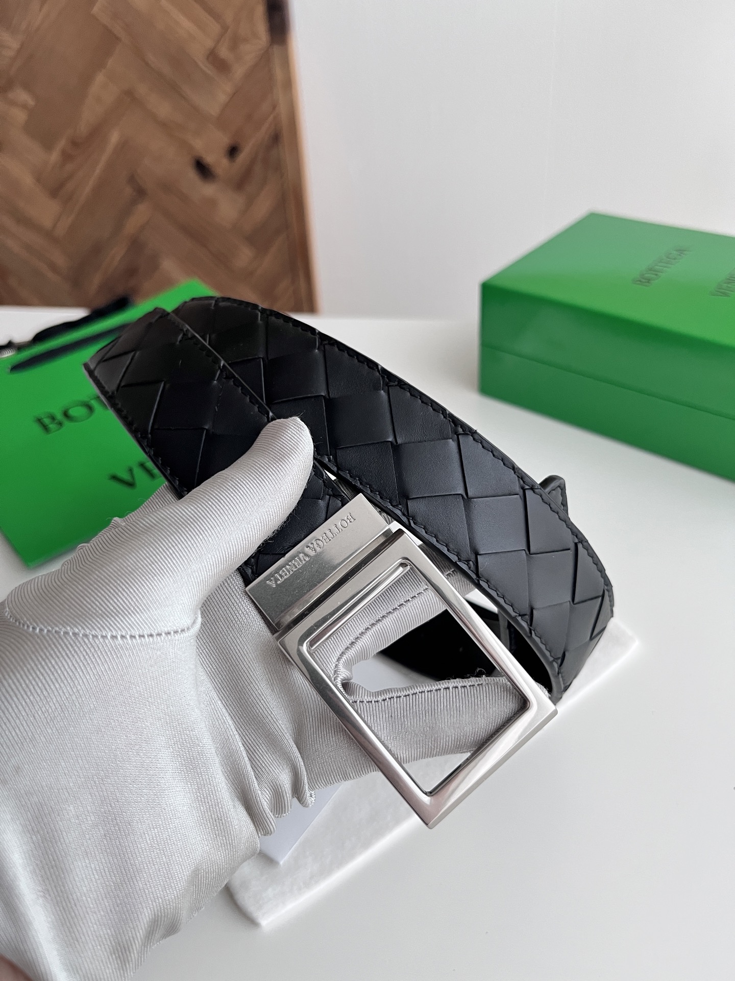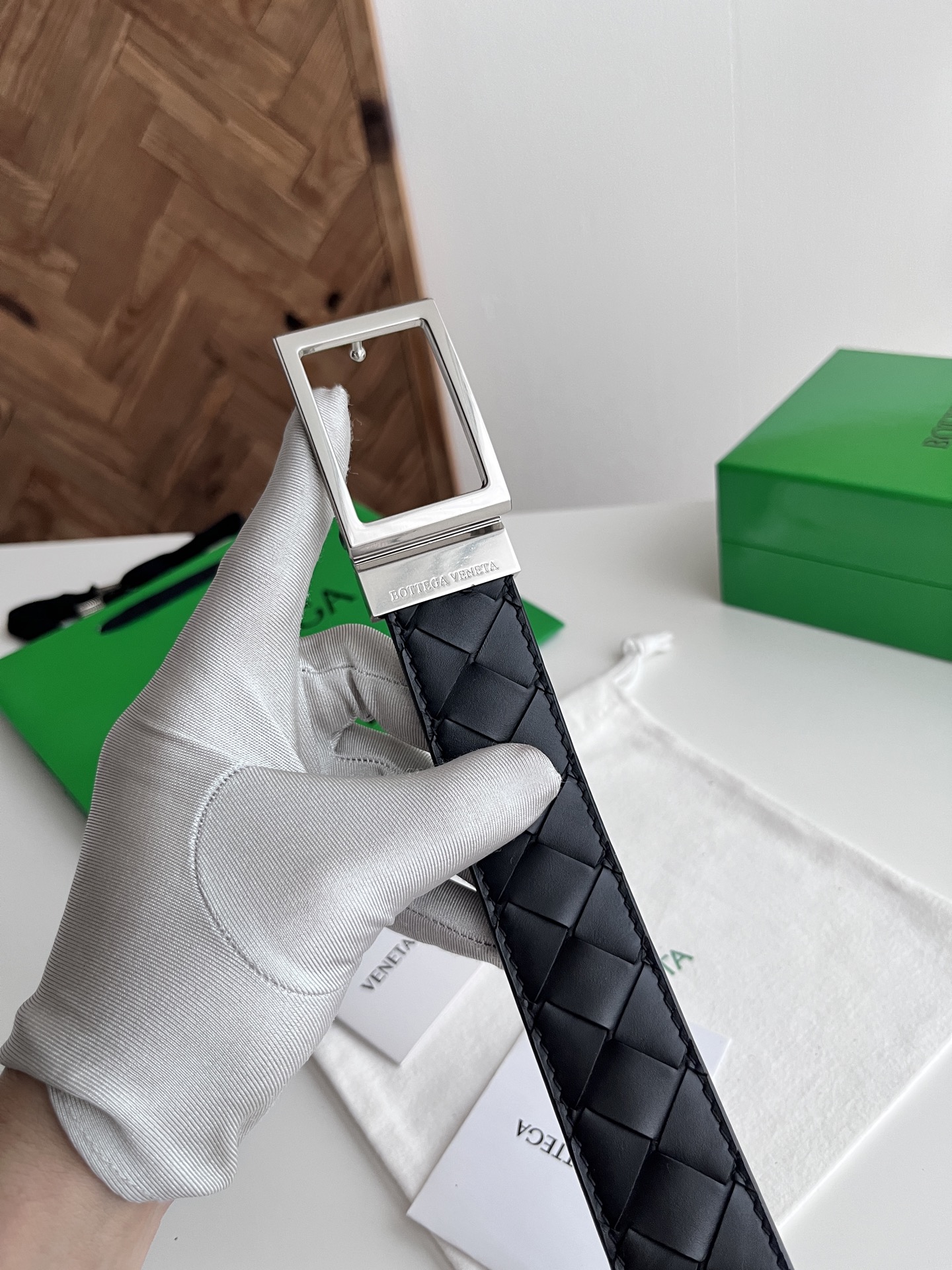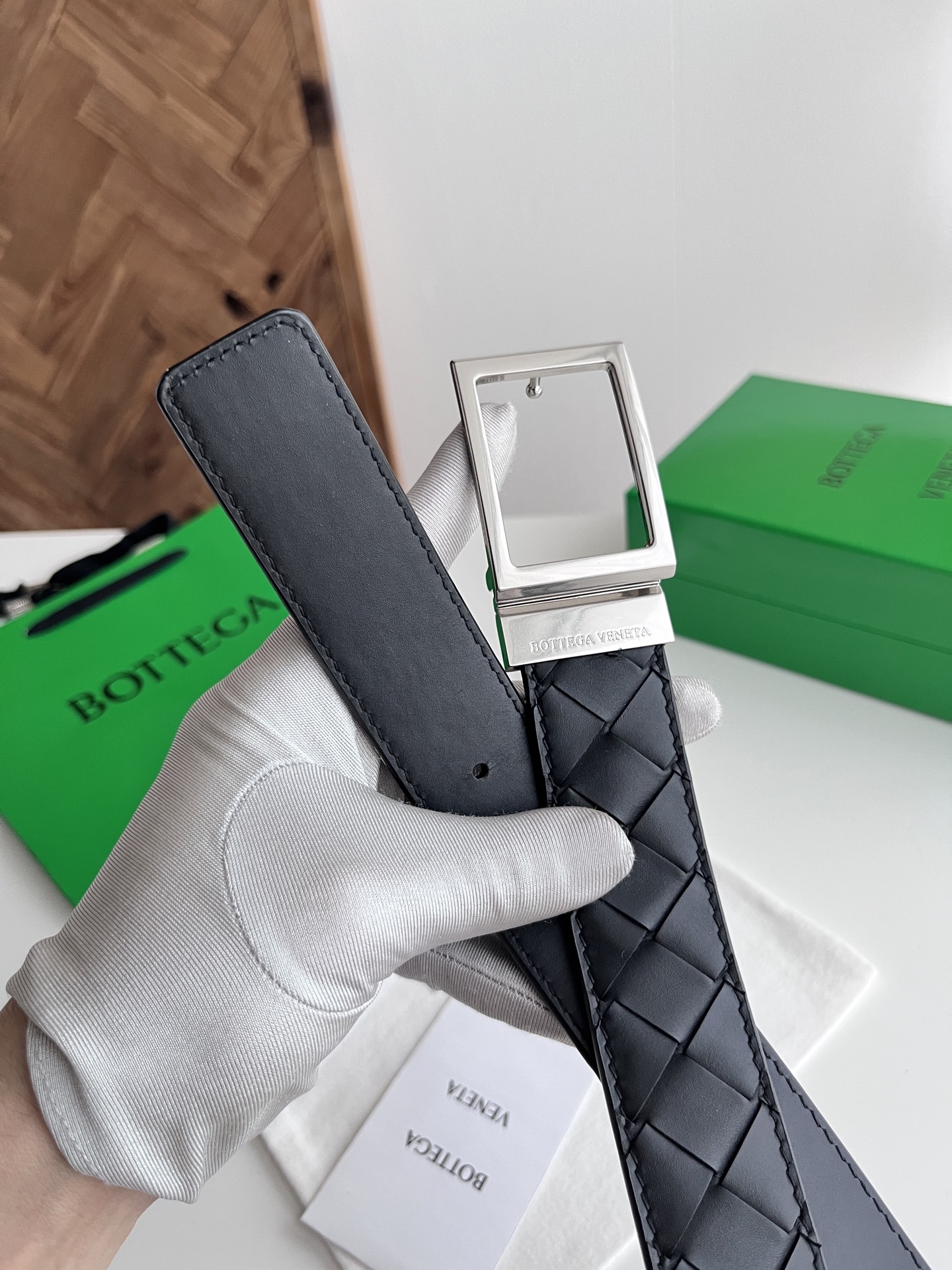 Bv 2025 latest men's woven belt double-sided use pure handmade intreccio large grid weaving double-sided Italian calfskin with slightly retro silver rotating buckle front with logo belt width 35MM