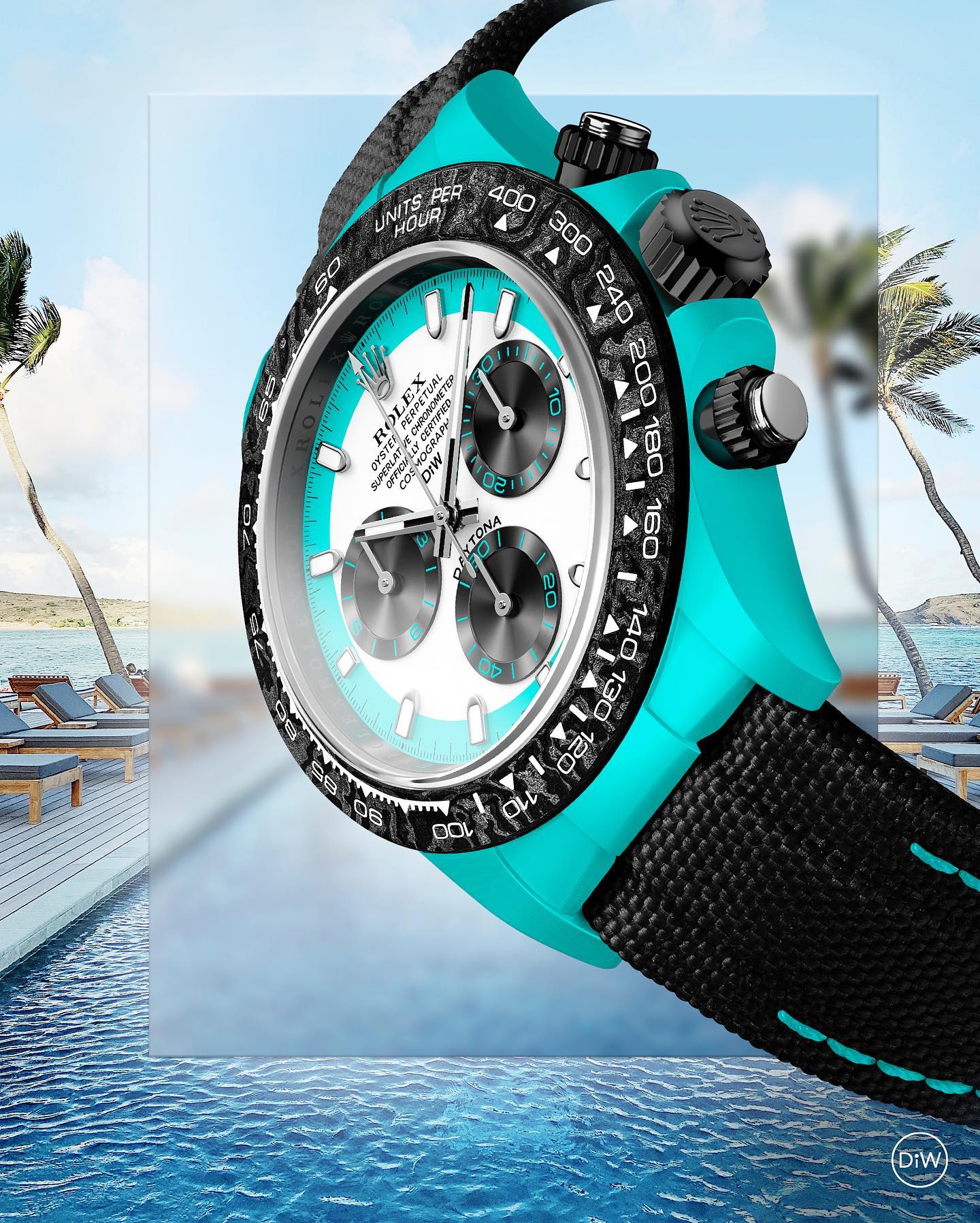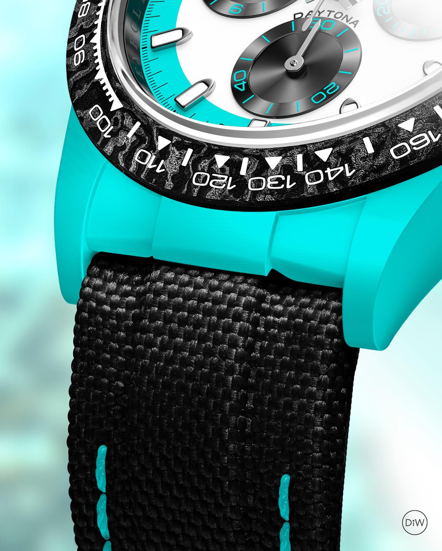 TW Factory ROLEX Cosmograph Daytona Series Carbon Fiber Custom Edition. The watch is not only lightweight to wear but also has a hard exterior. Each timepiece features a unique carbon fiber pattern material.