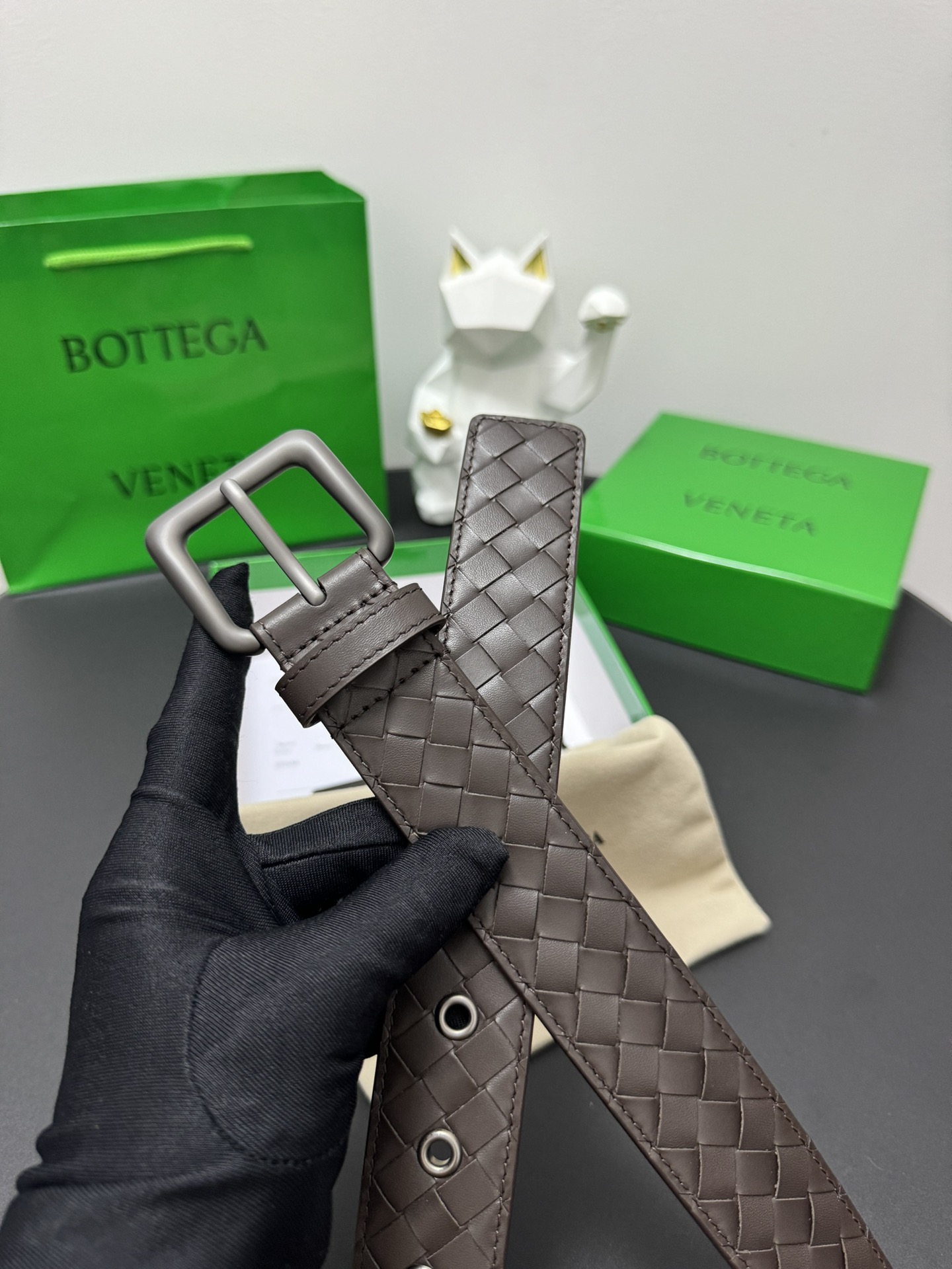 BOTTEGA VENETA Width: 3.5cm, Color: Black, Hand-woven top-layer cowhide classic piece paired with exquisite copper metal buckle, every detail reflects the highest taste, fashionable high-end quality.