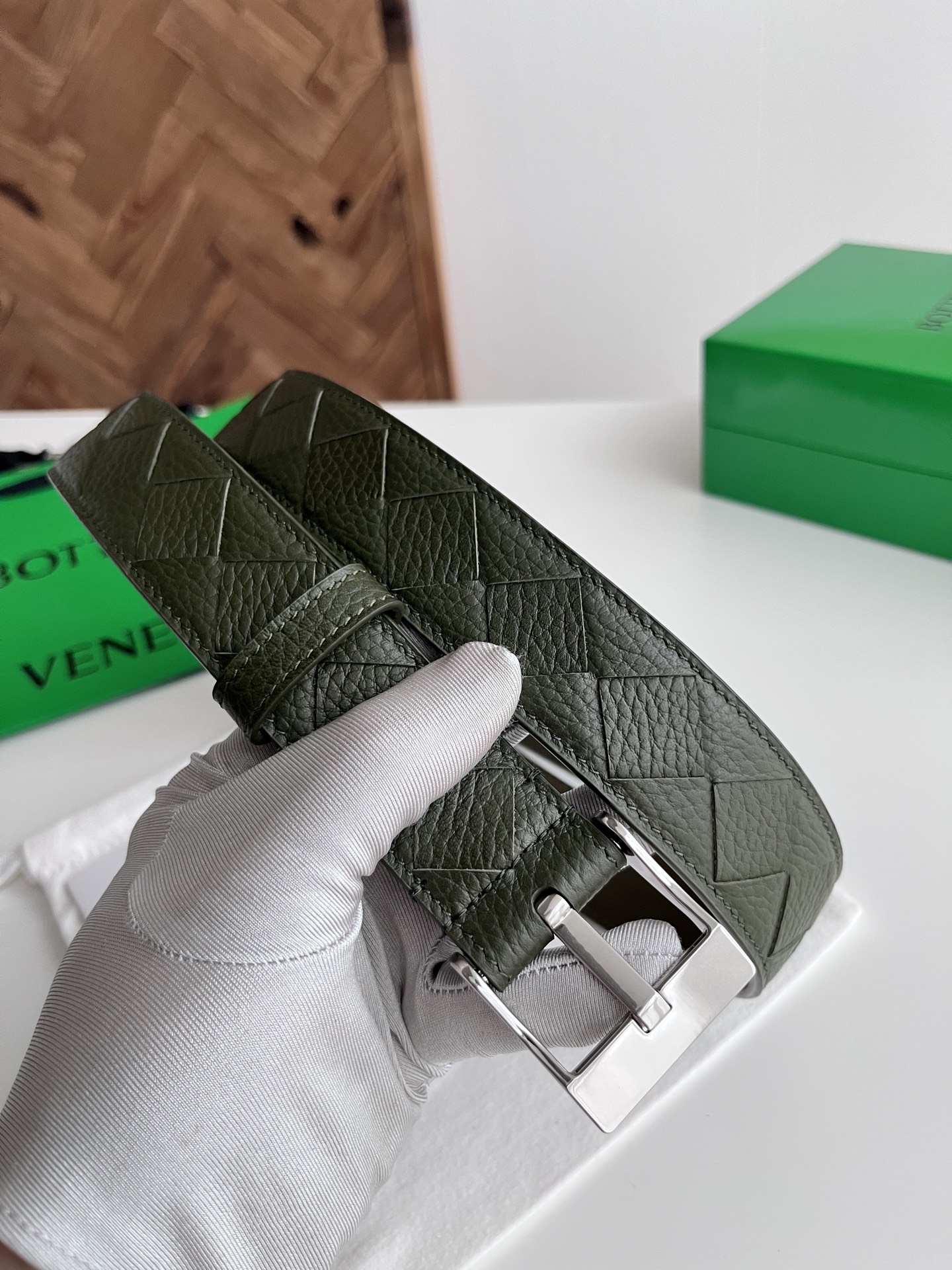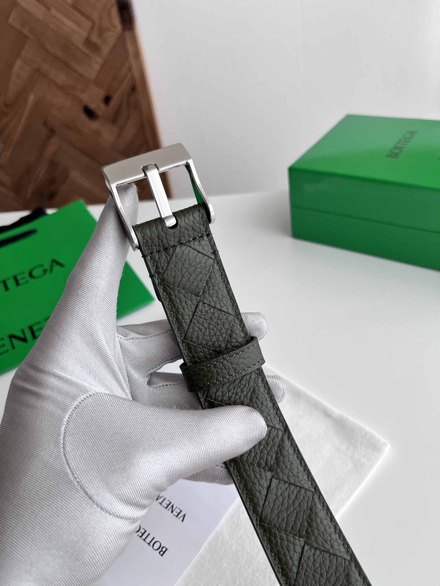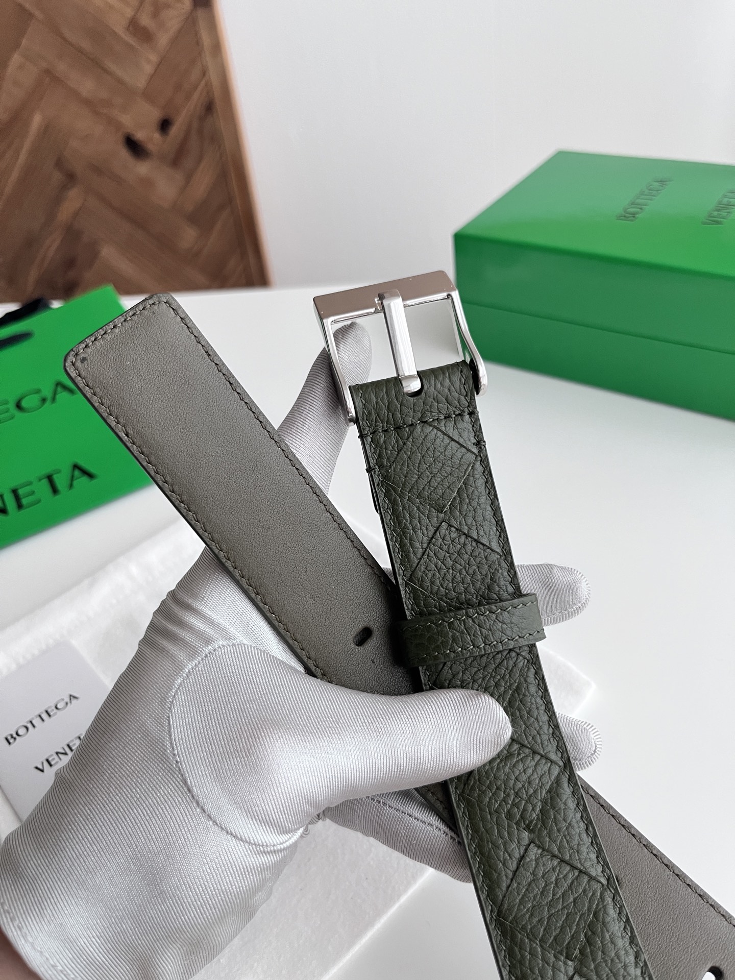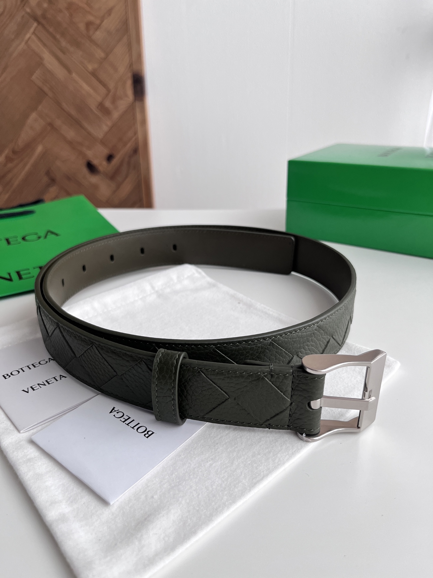 BV 2025 New Men's Belt Pure Handmade Large Intreccio Weave Italian Pebbled Calfskin with New Buckle Design Vacuum Gun Color Pin Buckle Belt Width 3.5cm