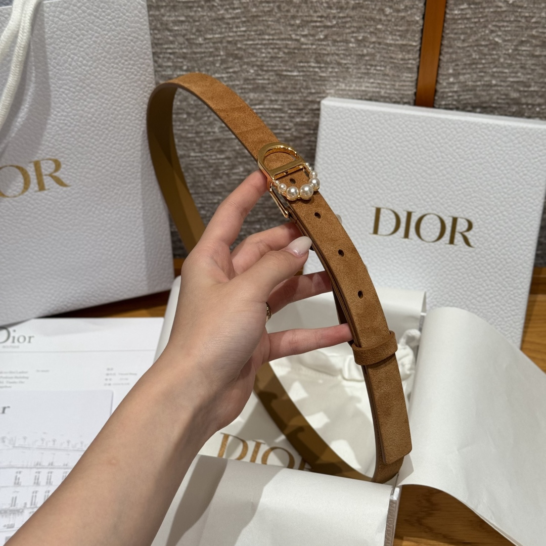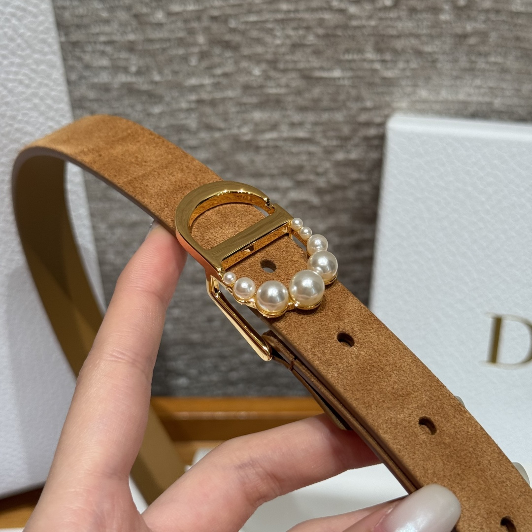 The new belt features a suede front design and is made from smooth cowhide leather on the back. The classic CD belt buckle is presented in a glossy gold-finished metal version, with the letter C adorned with white resin beads of varying sizes, showcasing the brand's exquisite craftsmanship. The style is fashionable and elegant, and can be paired with jeans, skirts, or dresses.