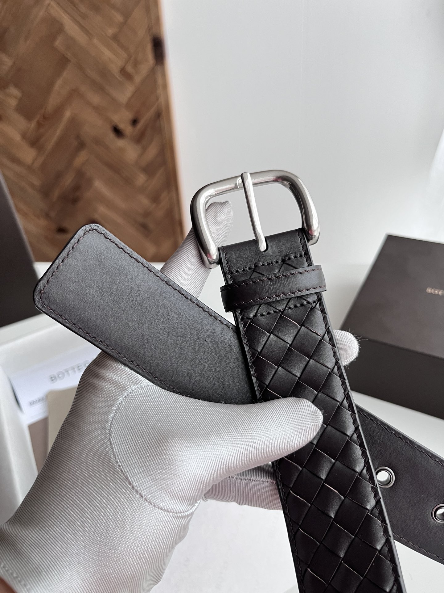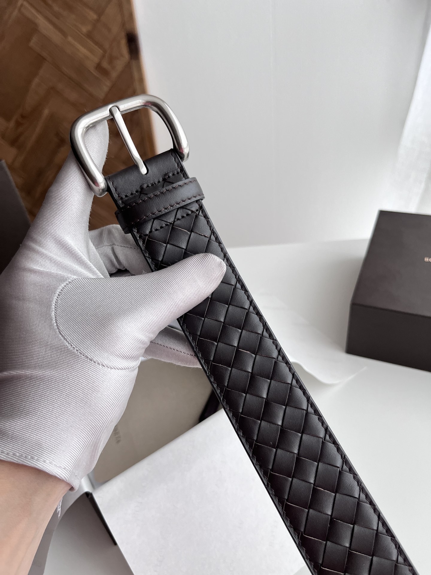 BV 2024 new wide version men's belt pure handmade intreccio weaving Italian double-sided calfskin paired with slightly vintage silver pin buckle belt width 4.0cm color: coffee color
