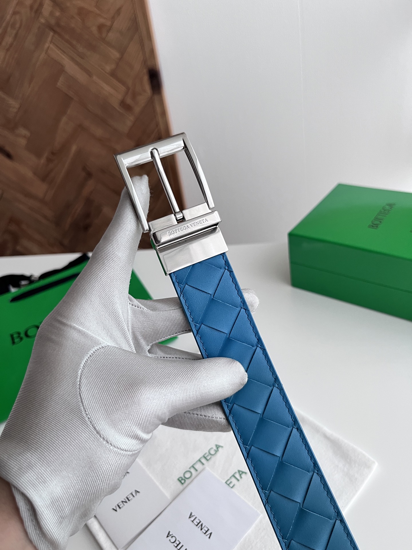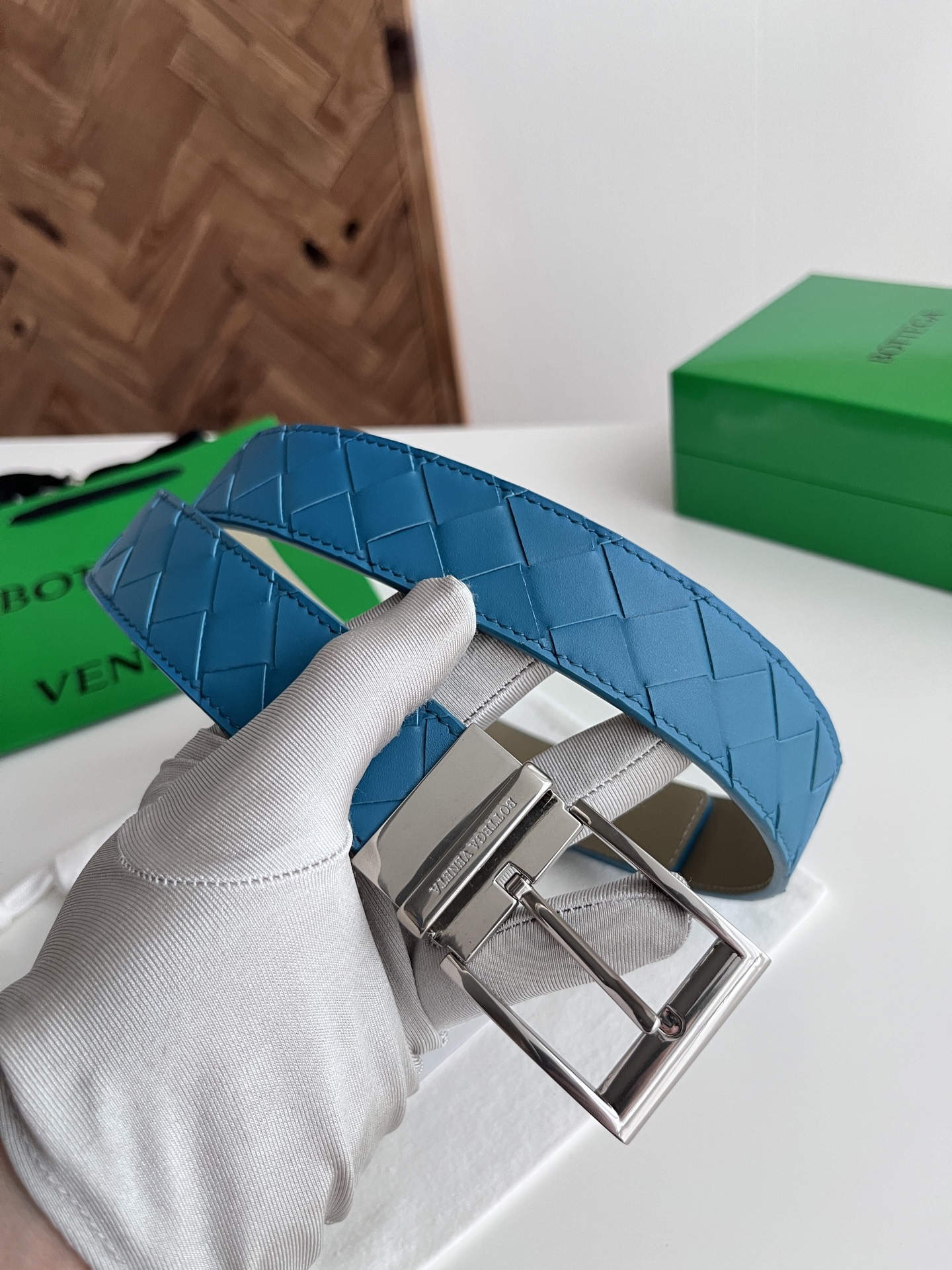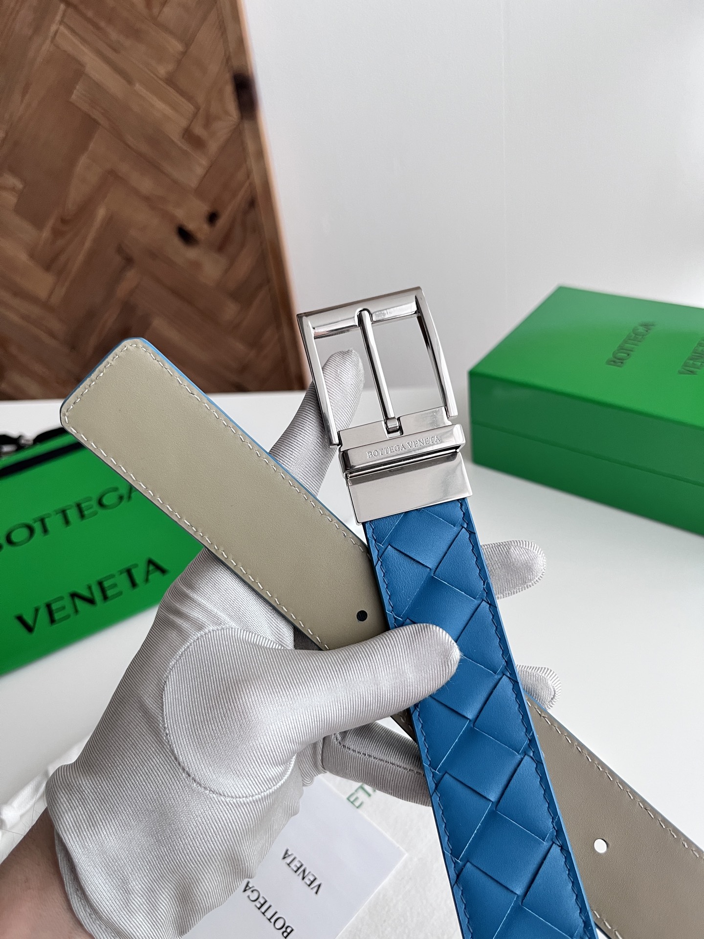 Bv 2025 latest men's woven belt double-sided use pure handmade intreccio large grid weaving double-sided Italian calfskin with slightly retro silver rotating buckle front with logo belt width 35MM