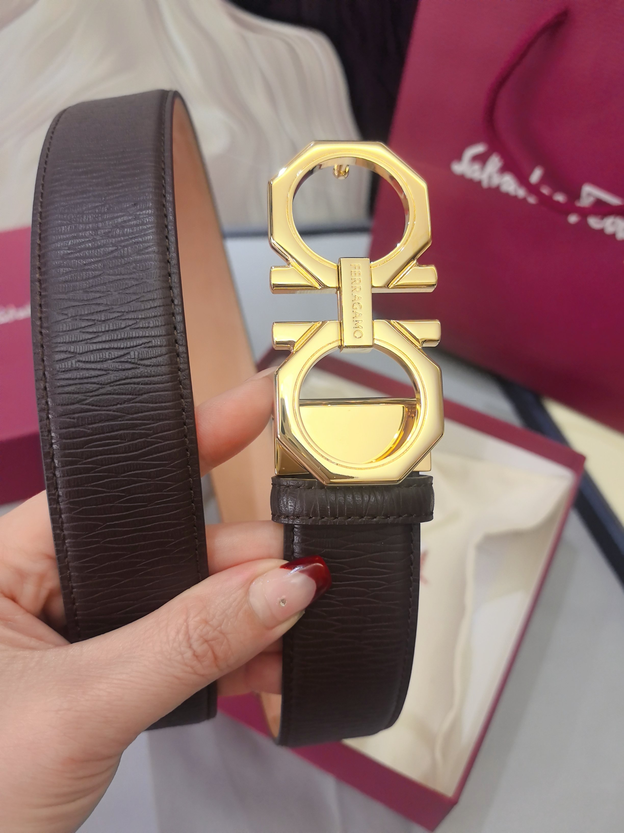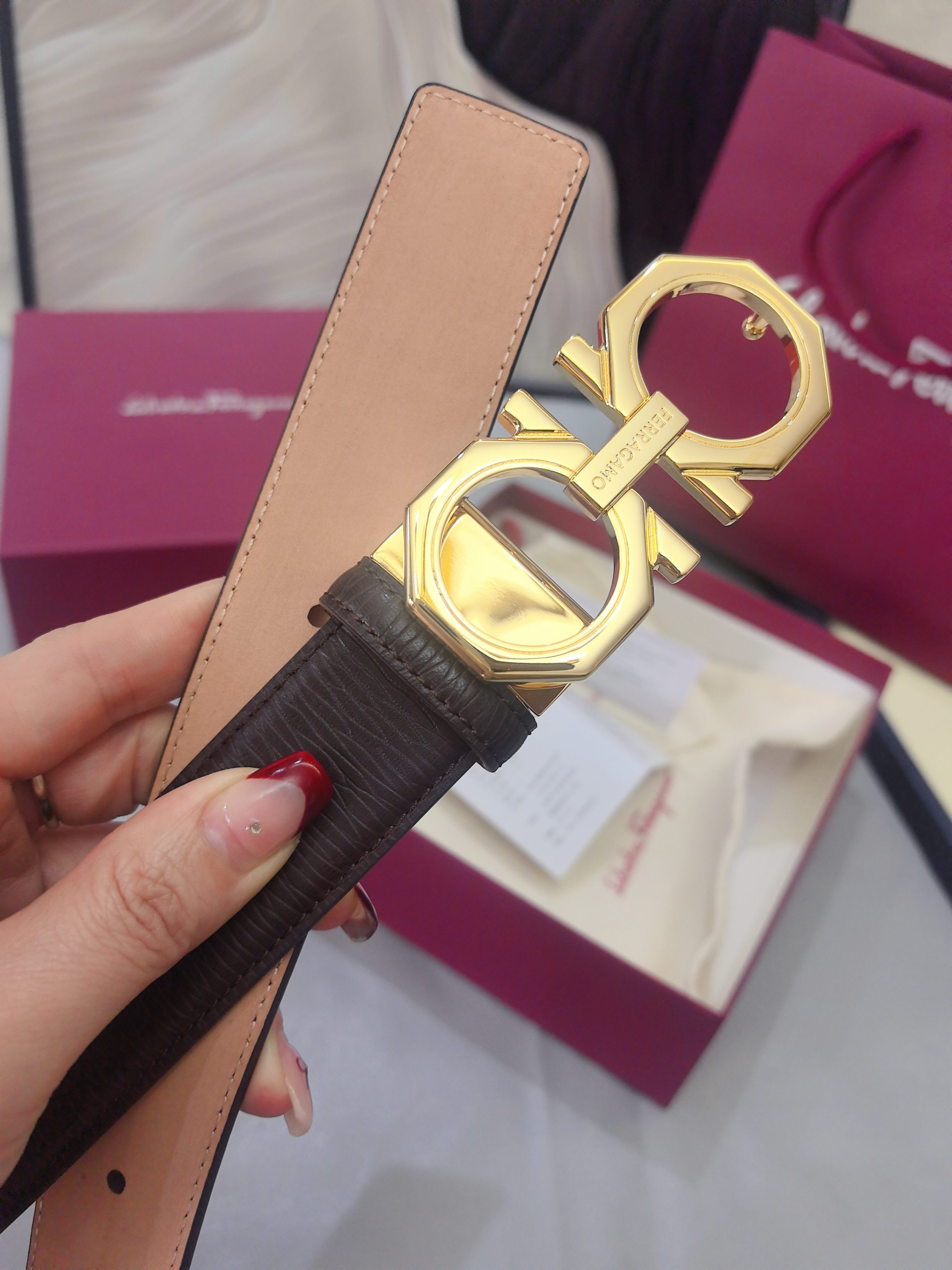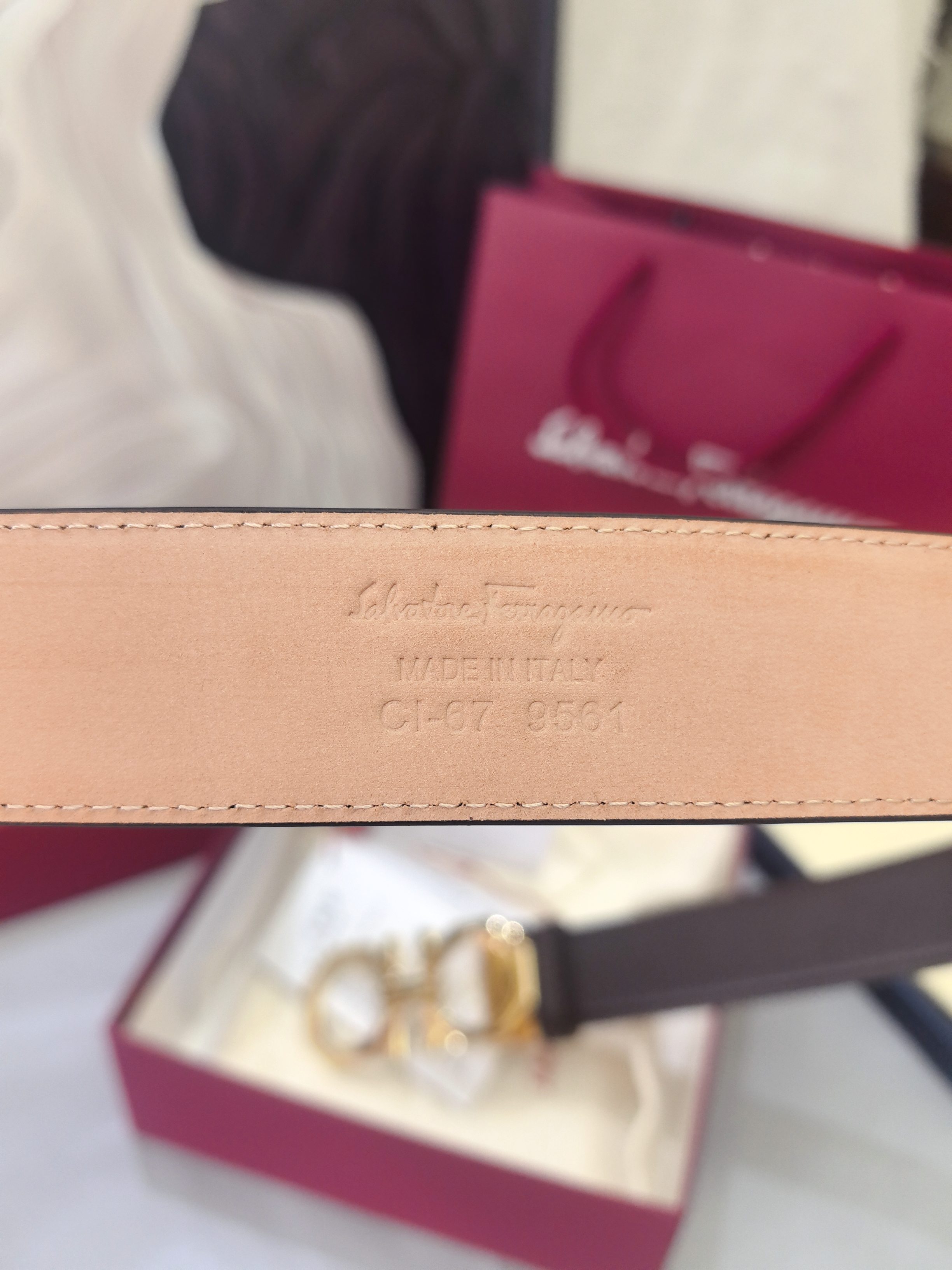 This belt features a double-sided design with contrasting textures on both sides. One side is treated with wax immersion and natural tannin dyeing, resulting in a delicate and refined finish. The other side undergoes sanding and aniline dyeing, creating a luxurious and striking texture effect. The painted buckle complements the Gancio silhouette, adorned with a central rectangular cut-out pattern. The length is adjustable, allowing the belt to be trimmed to size or additional eyelets to be added.