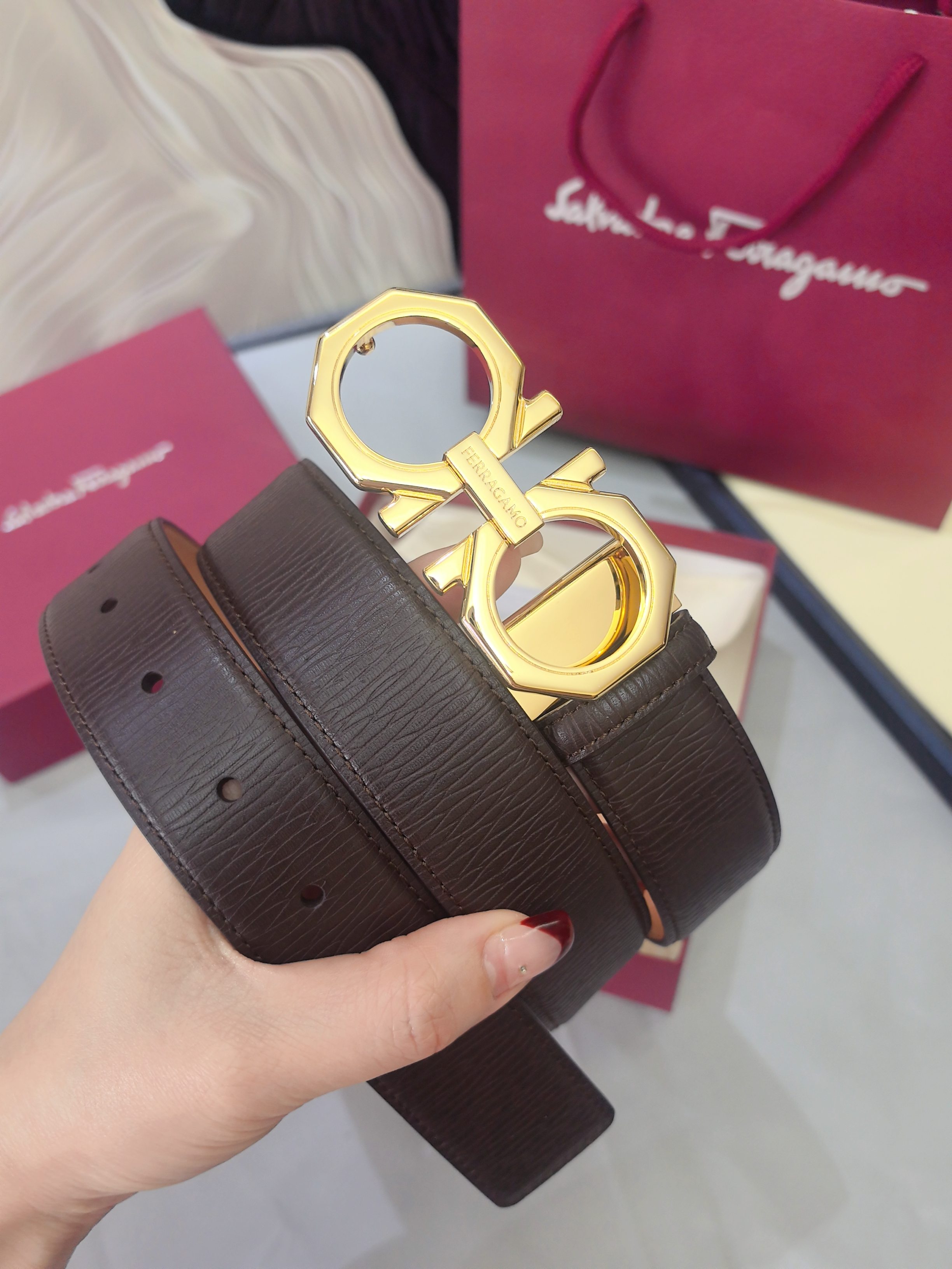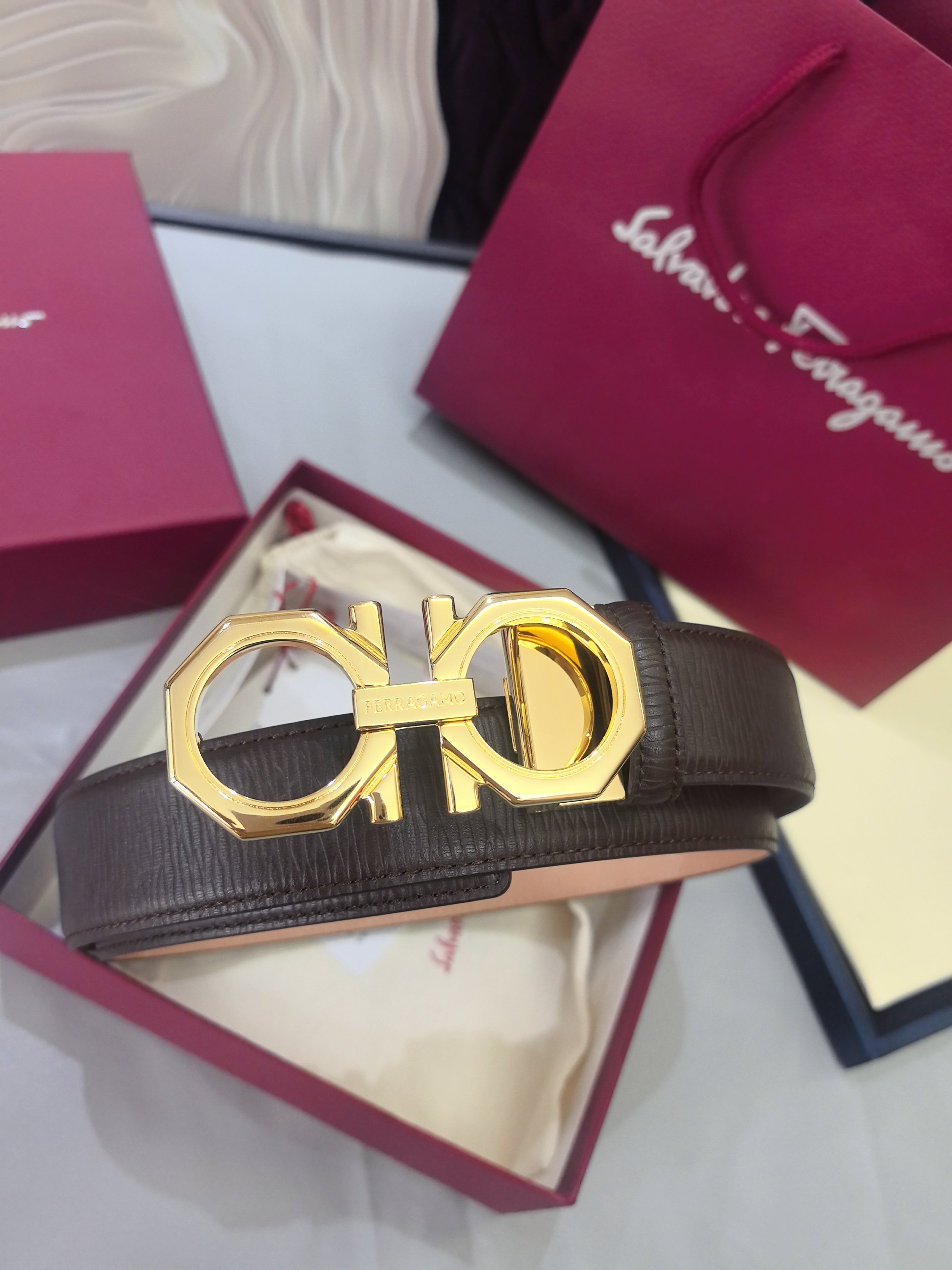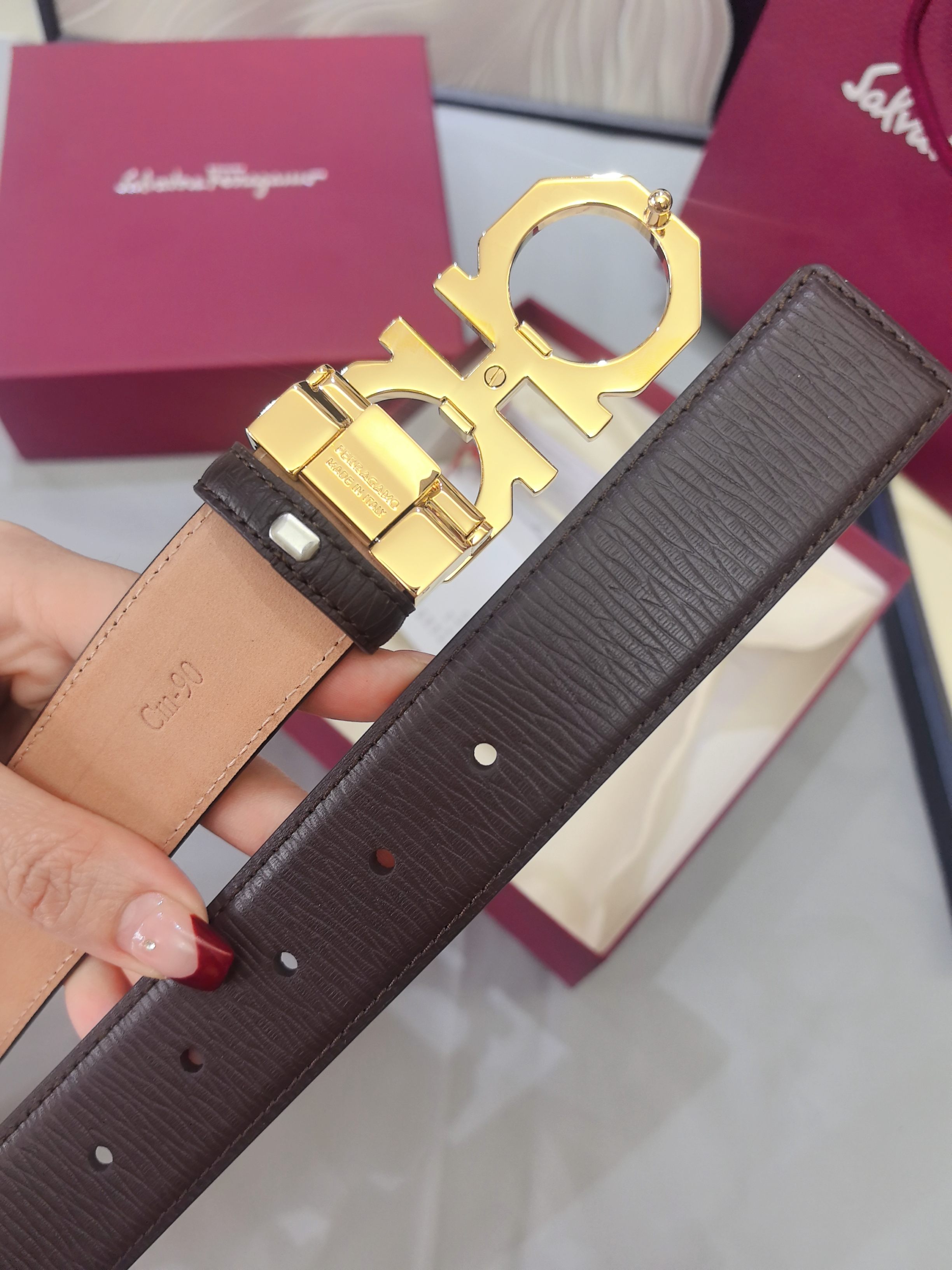 This belt features a double-sided design with contrasting textures on both sides. One side is treated with wax immersion and natural tannin dyeing, resulting in a delicate and refined finish. The other side undergoes sanding and aniline dyeing, creating a luxurious and striking texture effect. The painted buckle complements the Gancio silhouette, adorned with a central rectangular cut-out pattern. The length is adjustable, allowing the belt to be trimmed to size or additional eyelets to be added.