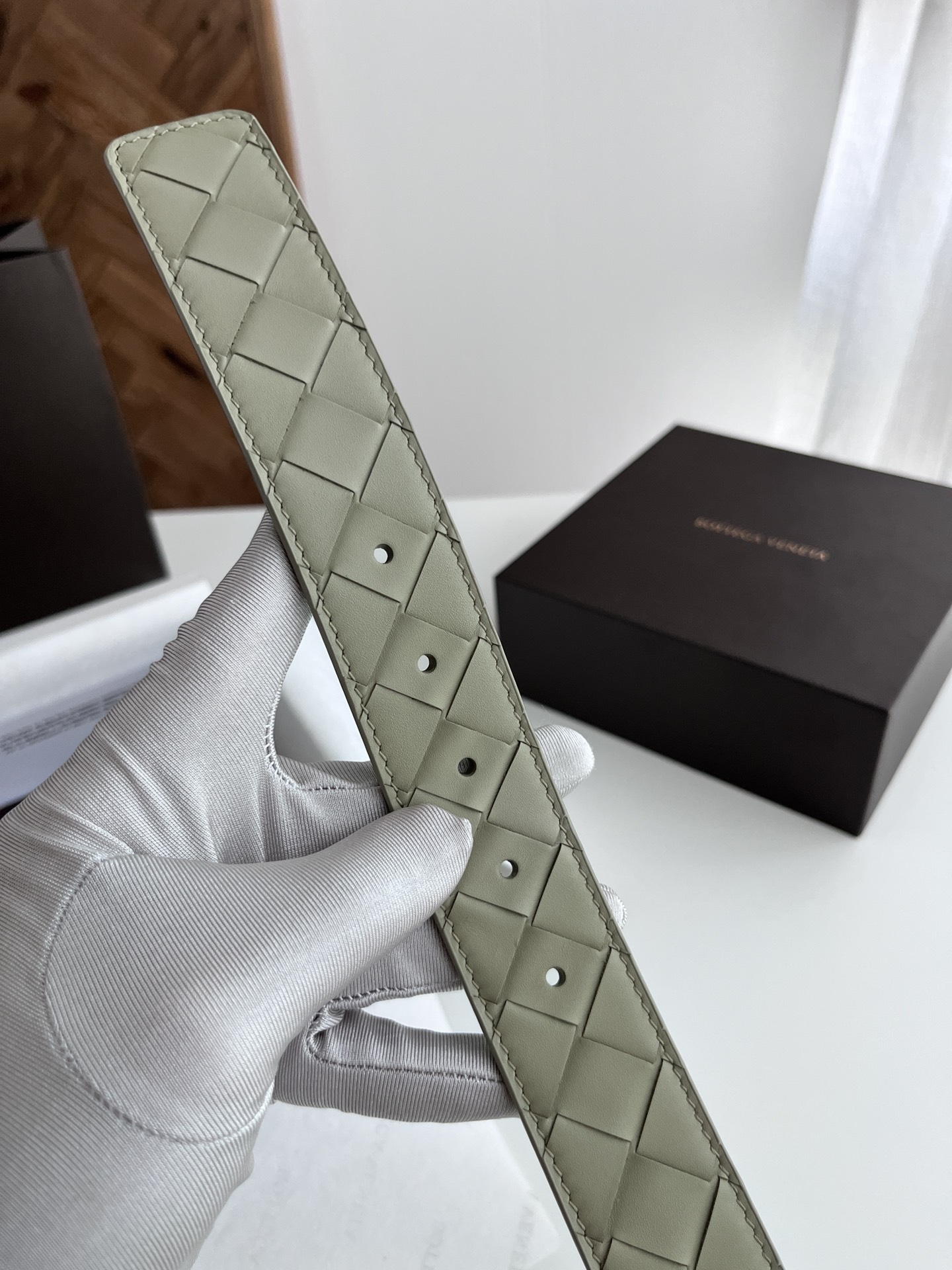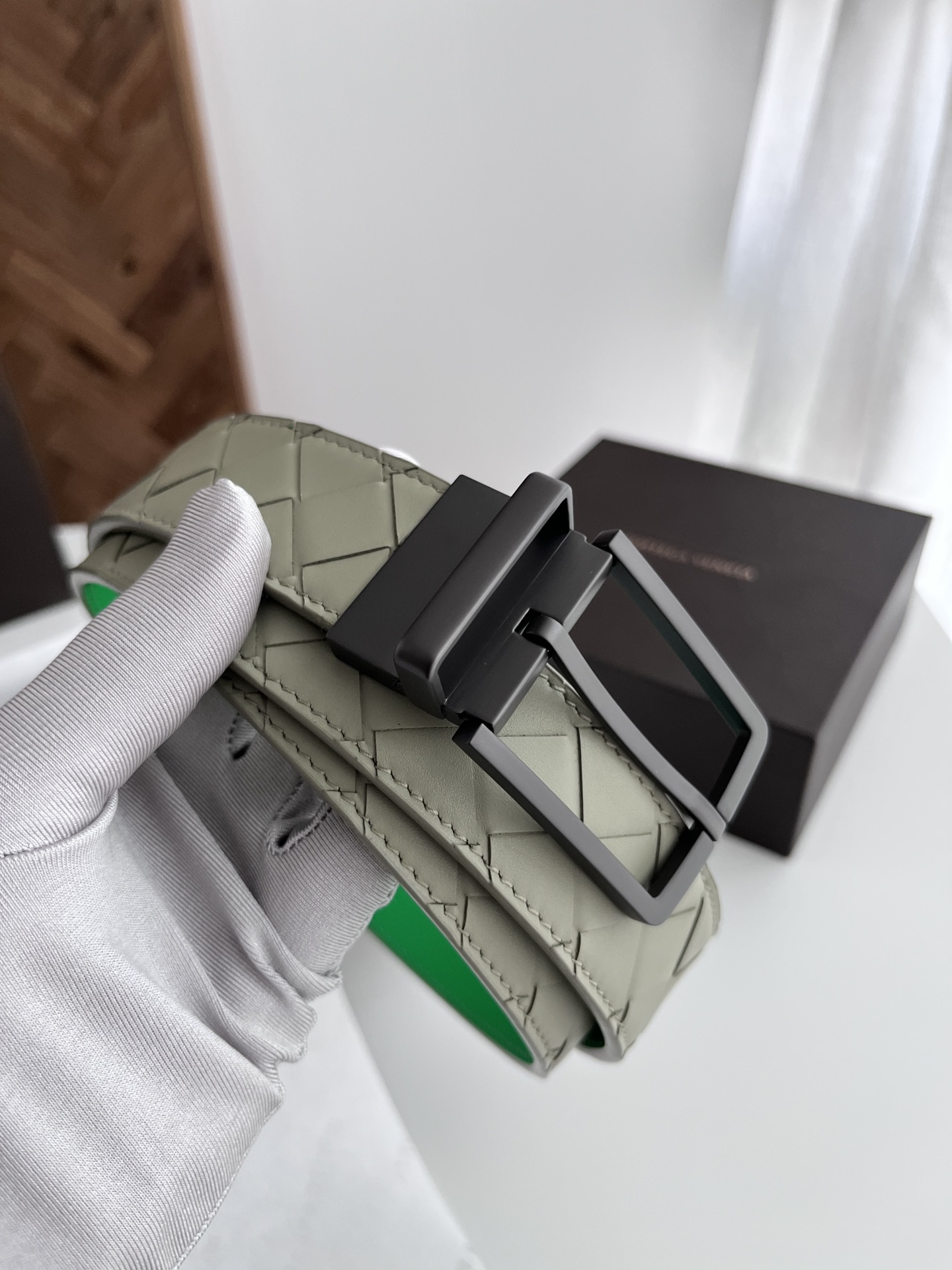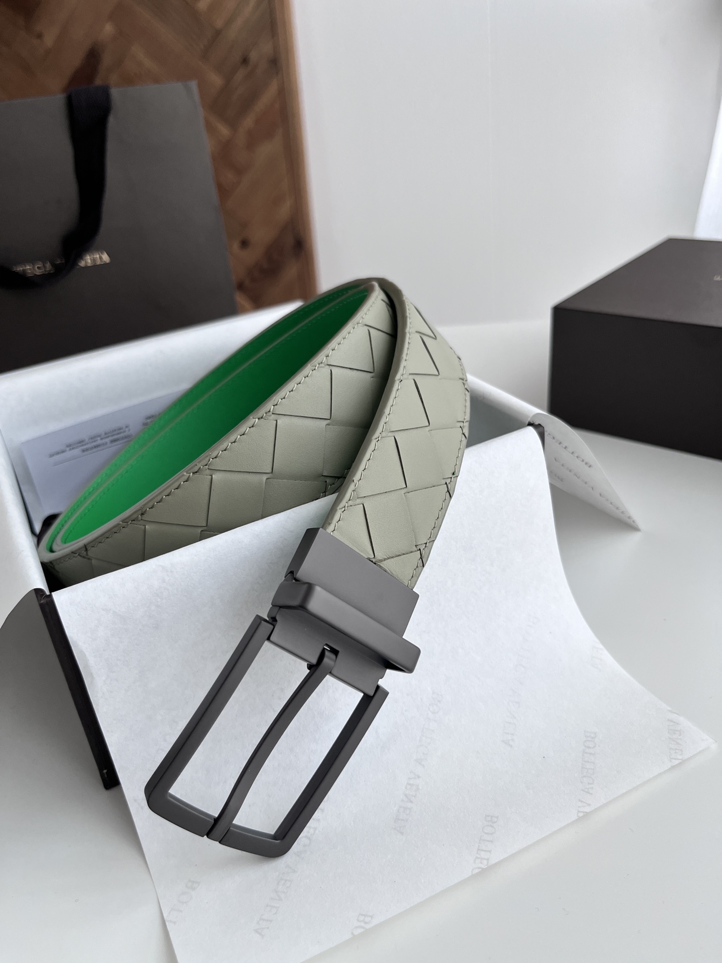 Bv latest men's woven belt double-sided use pure handmade intreccio large grid weaving double-sided Italian calfskin with vacuum gun color rotatable pin buckle width 35MM color: travertine green + parrot green