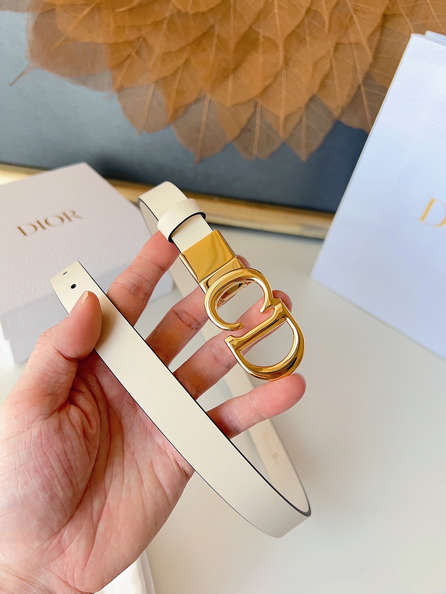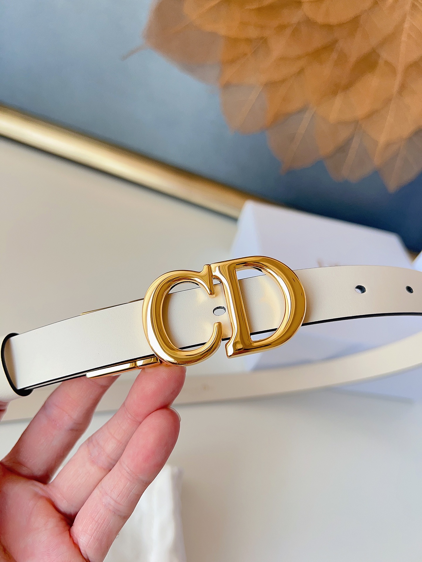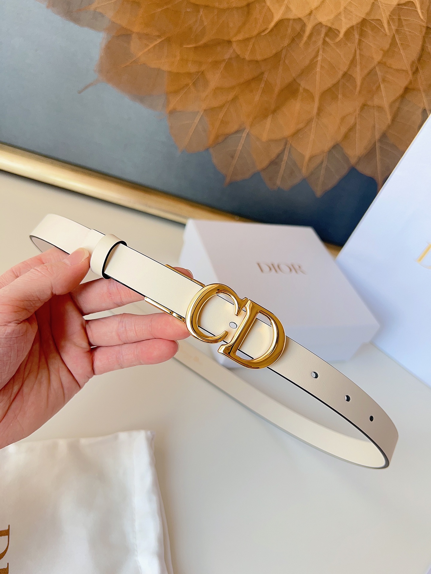 The Dior saddle belt is a classic accessory. It is reinterpreted with grained calfskin, featuring a fashionable and casual design, adorned with a glossy metal rotating CD belt buckle. The slim style pairs well with skirts, dresses, or trousers to enhance the figure. Width 2.0cm