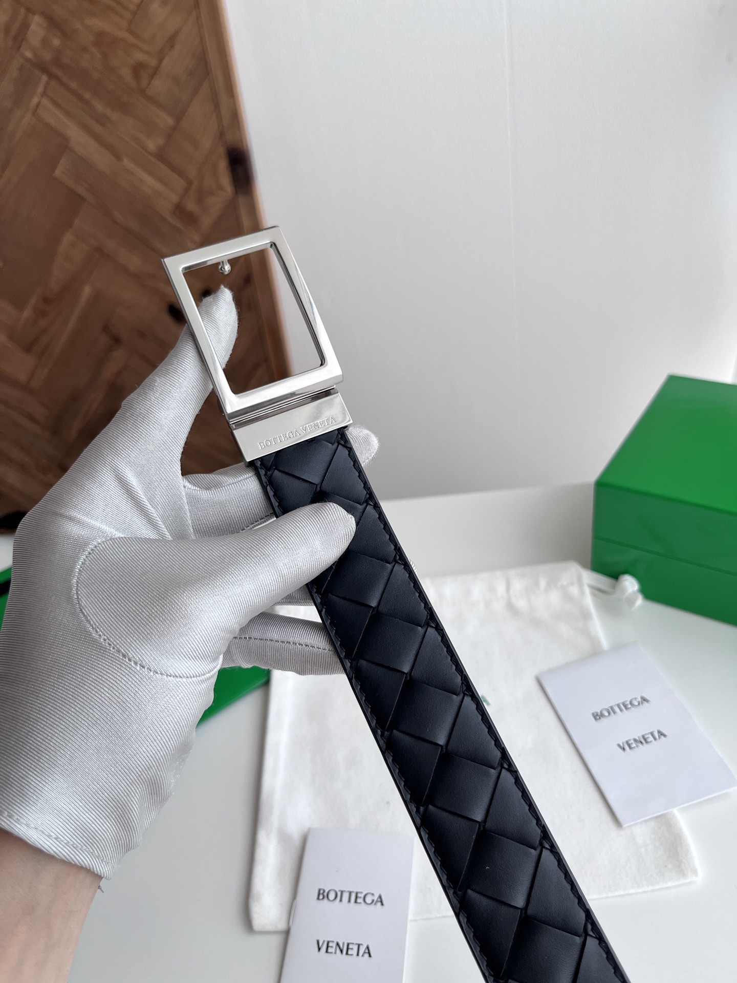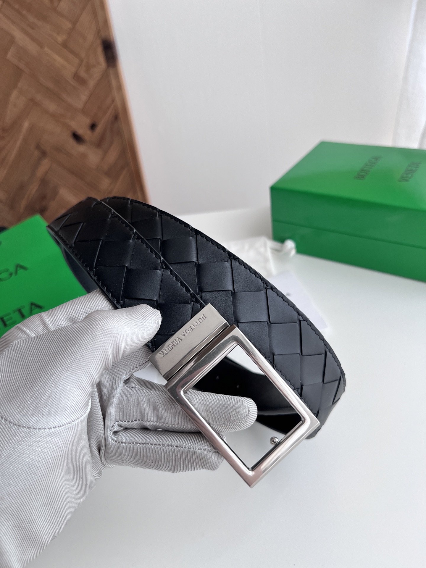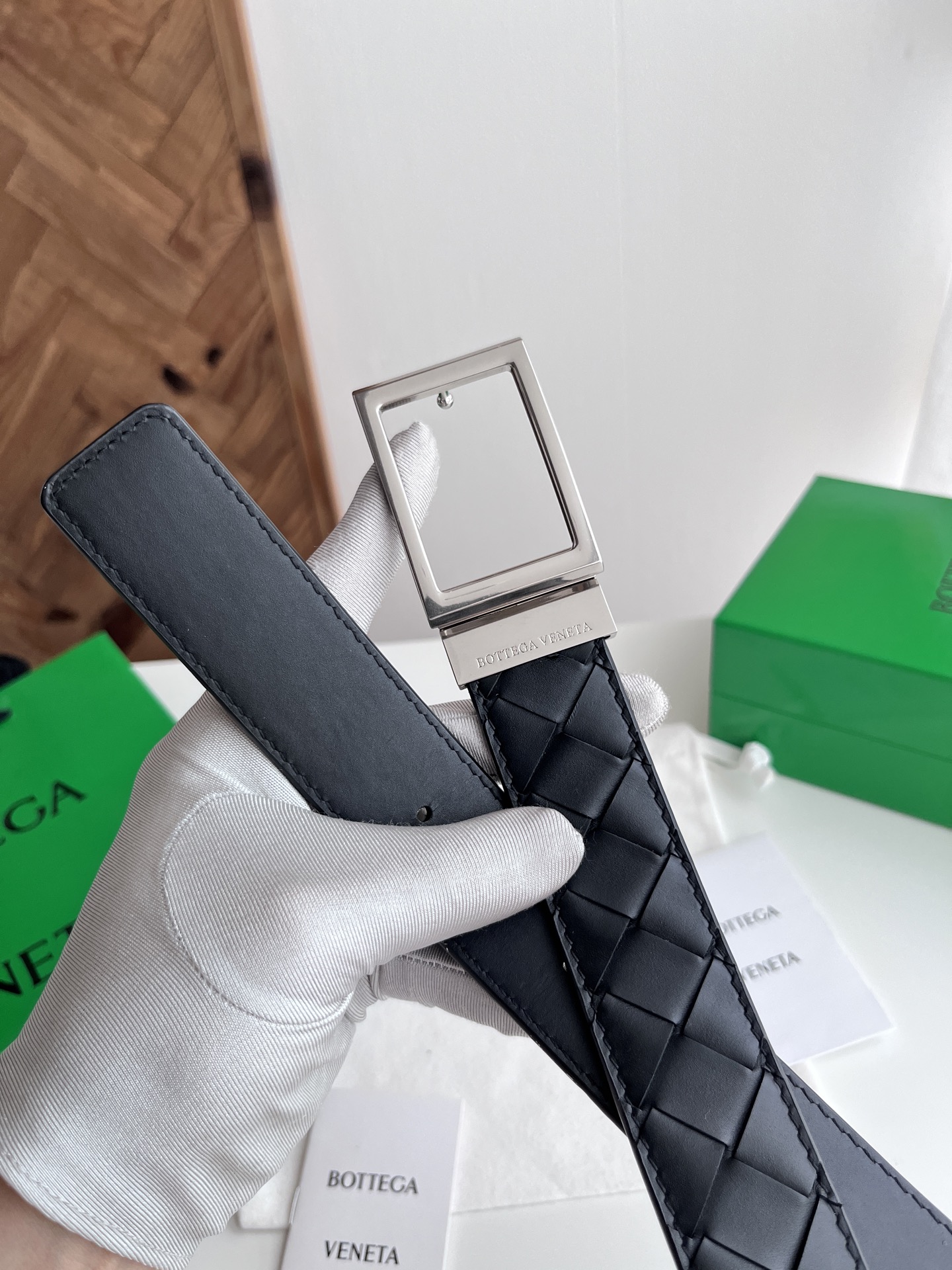 Bv 2025 new men's woven belt, reversible, fully handcrafted intreccio large grid weaving, double-sided Italian calfskin paired with slightly vintage silver rotatable square buckle, logo on the front, width 35MM