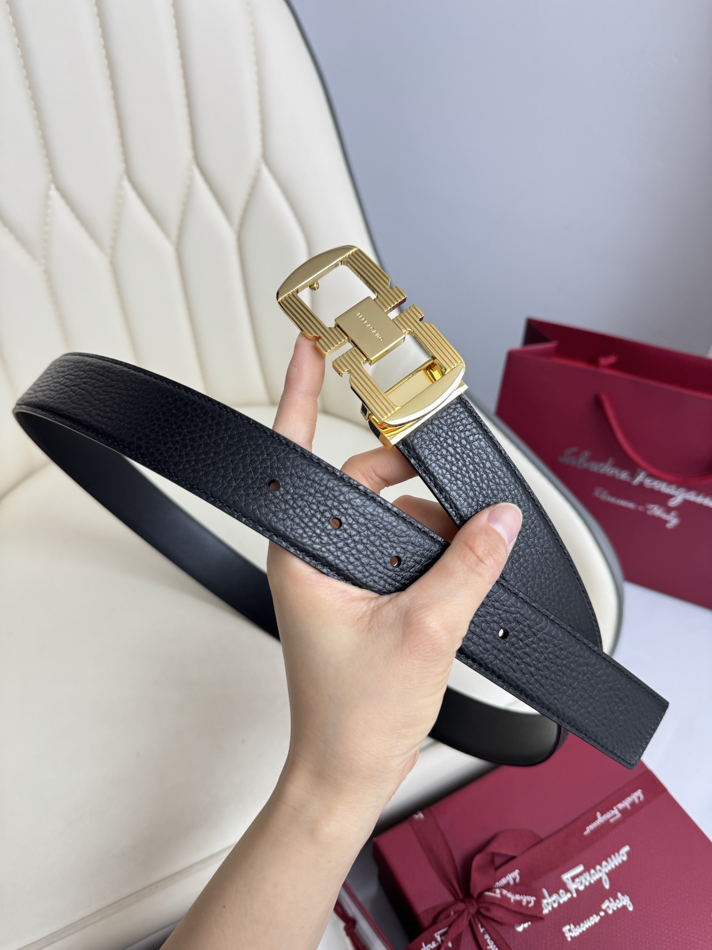 (Ferragamo) Double-sided original imported top grain leather, double-sided use, vacuum electroplated copper buckle, exquisite workmanship, boutique quality! Fashionable, casual, versatile, and highly popular! Comes with a full set of boutique packaging, width 3.5
