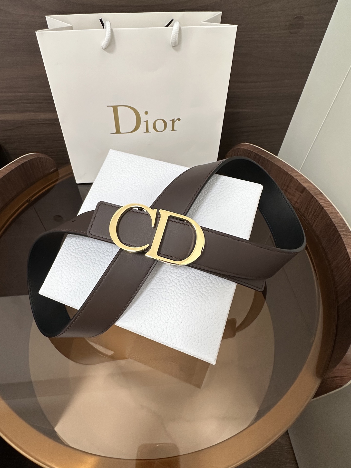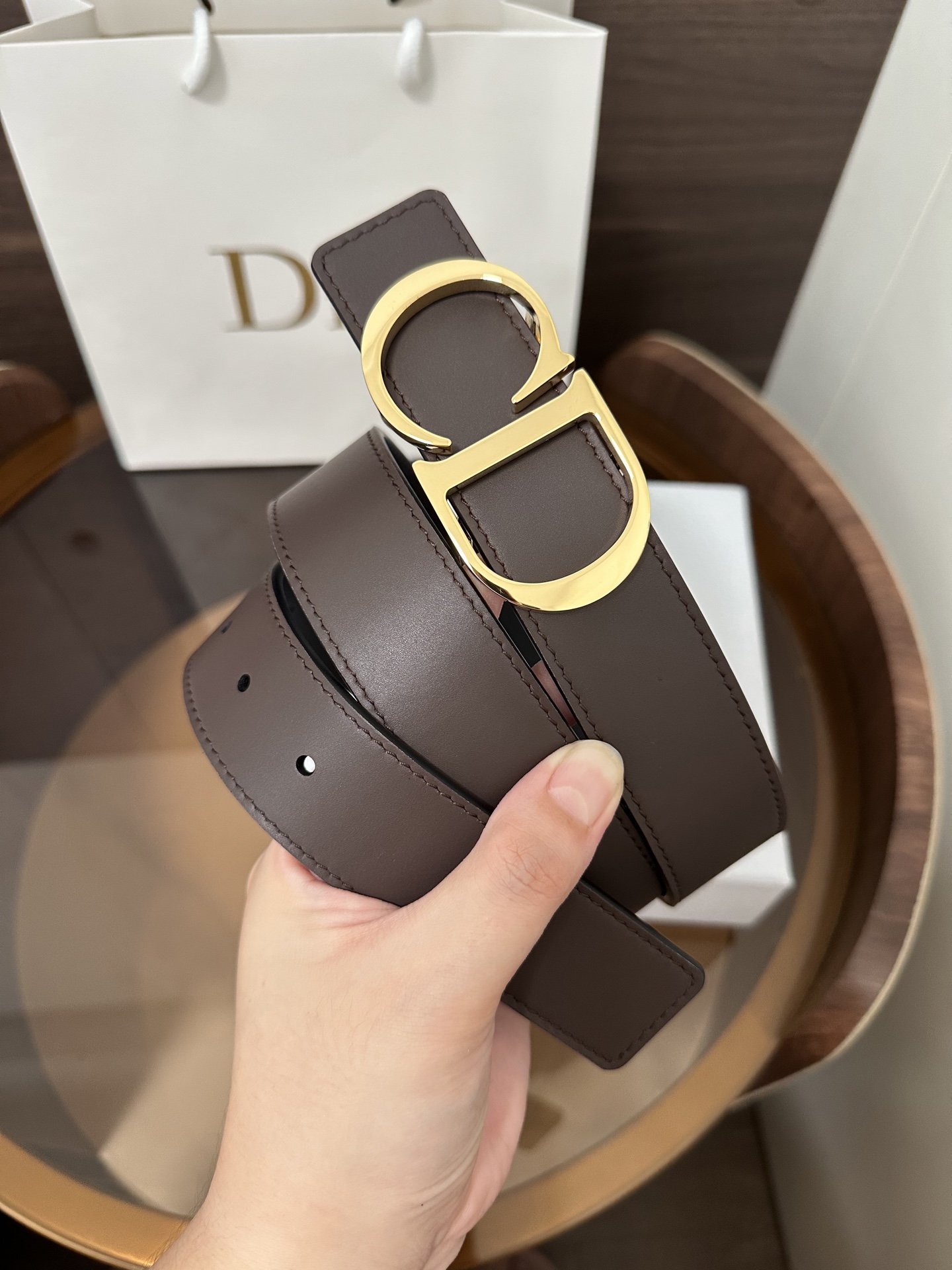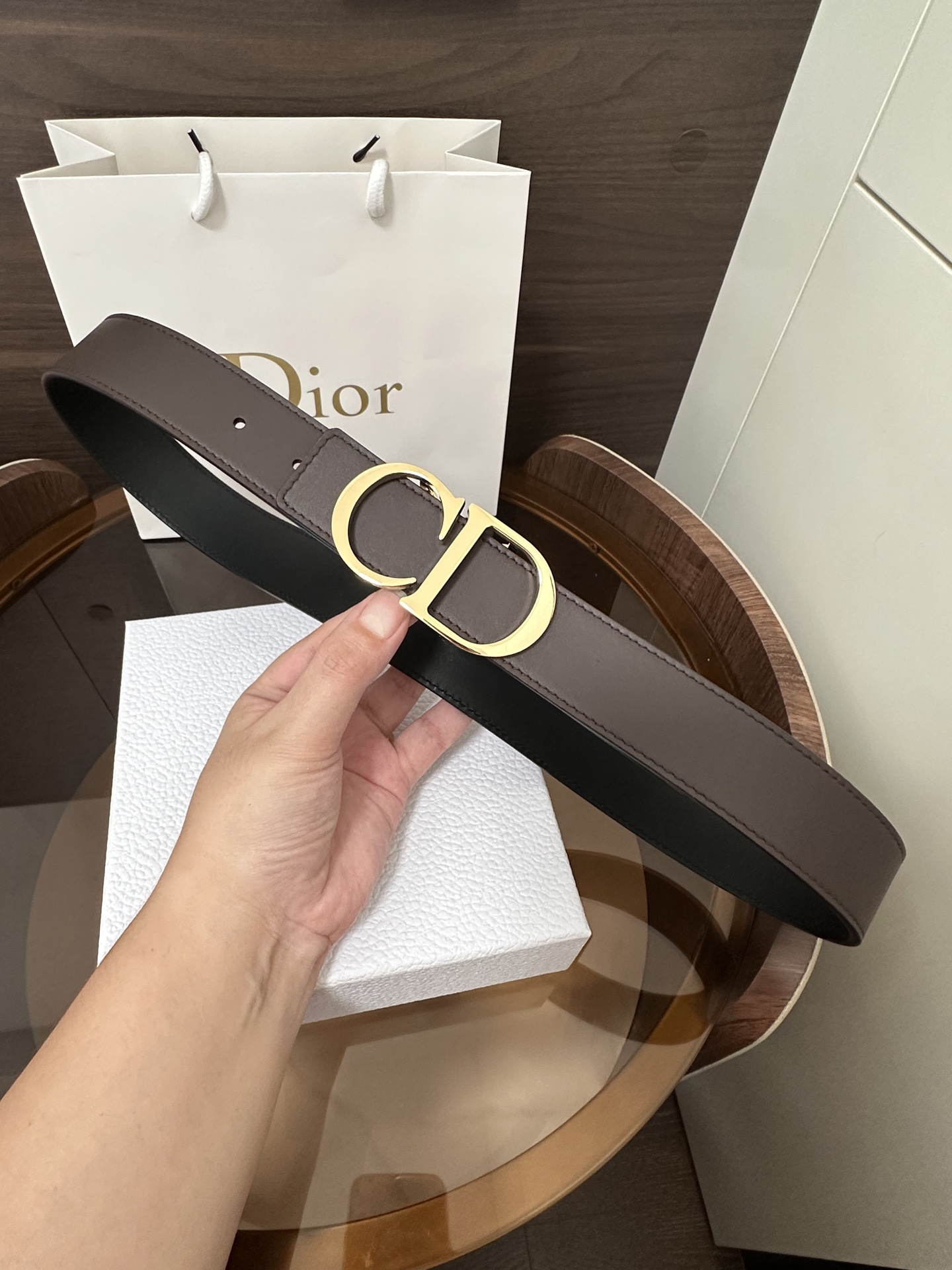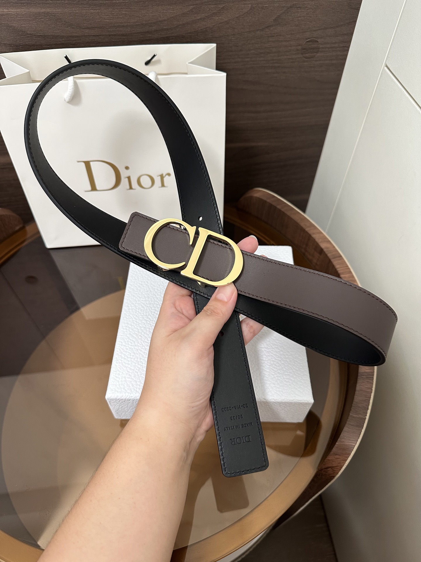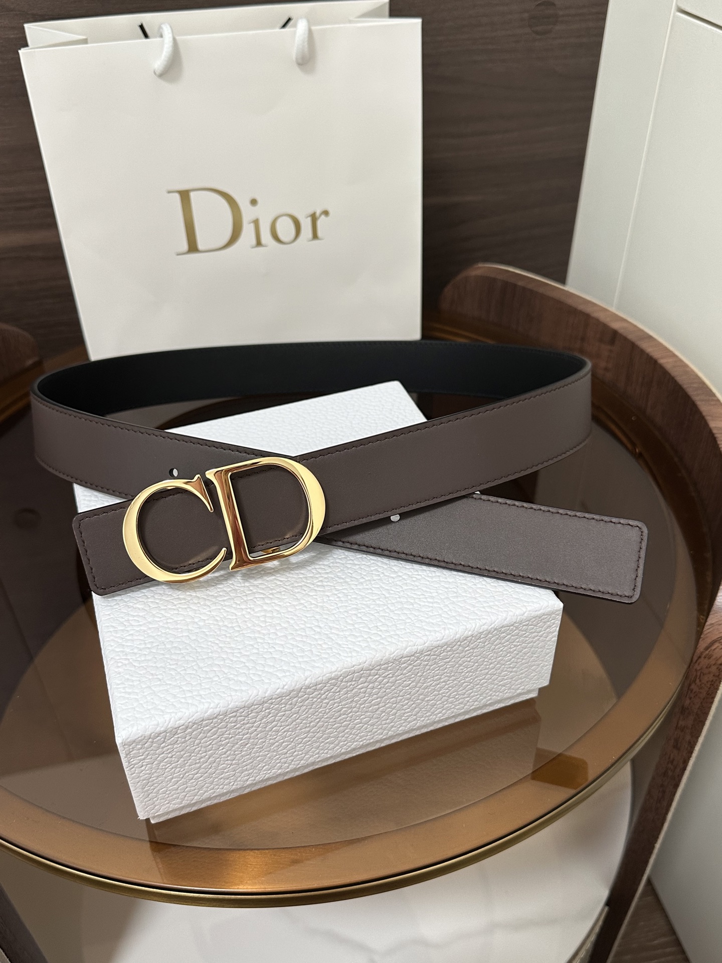 DI0R New Double-Sided Belt This 35 mm double-sided belt combines elegance with modern style. Both sides are meticulously crafted from calfskin. It can be paired with various 35 mm belt buckles to create a distinctive and versatile fashion piece.