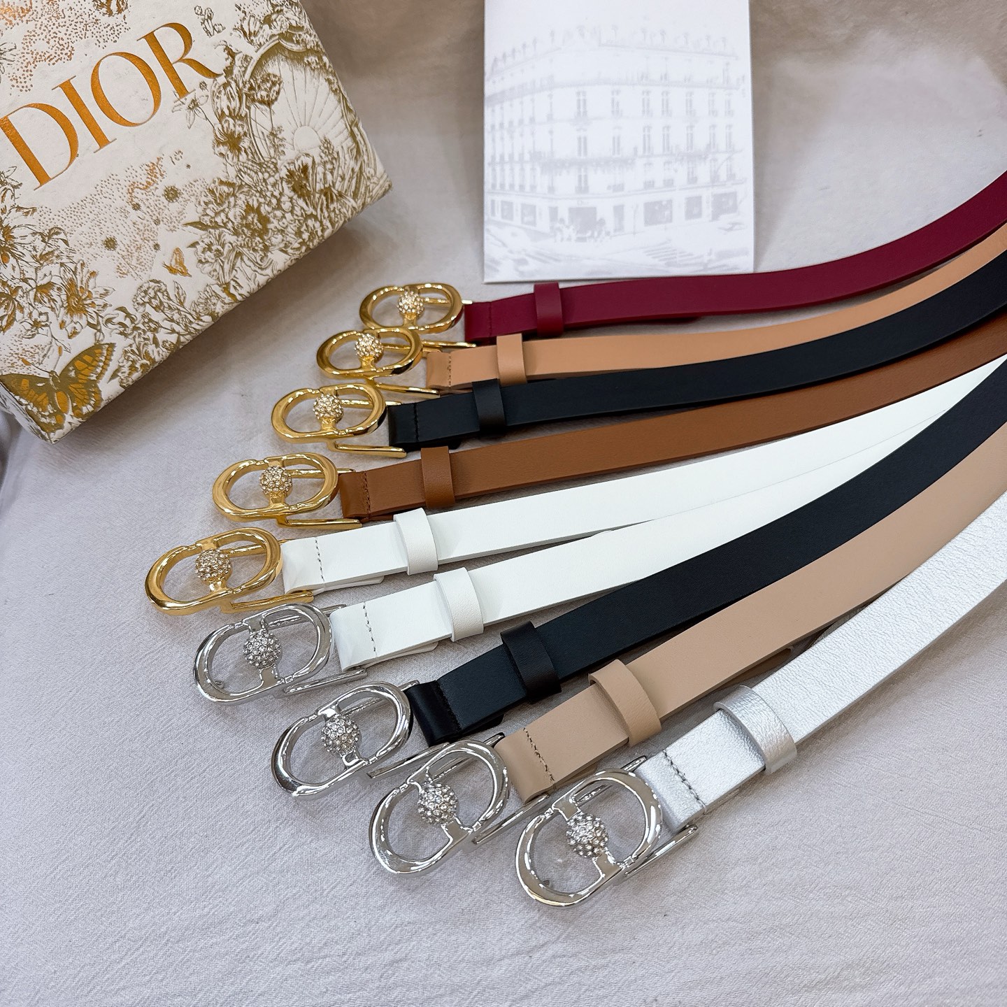 This Lucky 30 Montaigne Star belt is a new ready-to-wear piece from the 2025 Spring-Summer collection, highlighting one of the brand's cherished symbols. It is meticulously crafted from grained calfskin and features a glossy gold-finished CD buckle, adorned with the brand's lucky star to enhance its style. The center is embellished with a soccer ball-shaped fully diamond-encrusted sparkling bead, which can be paired with classic blazers, dresses, or jeans to add a touch of elegant charm.