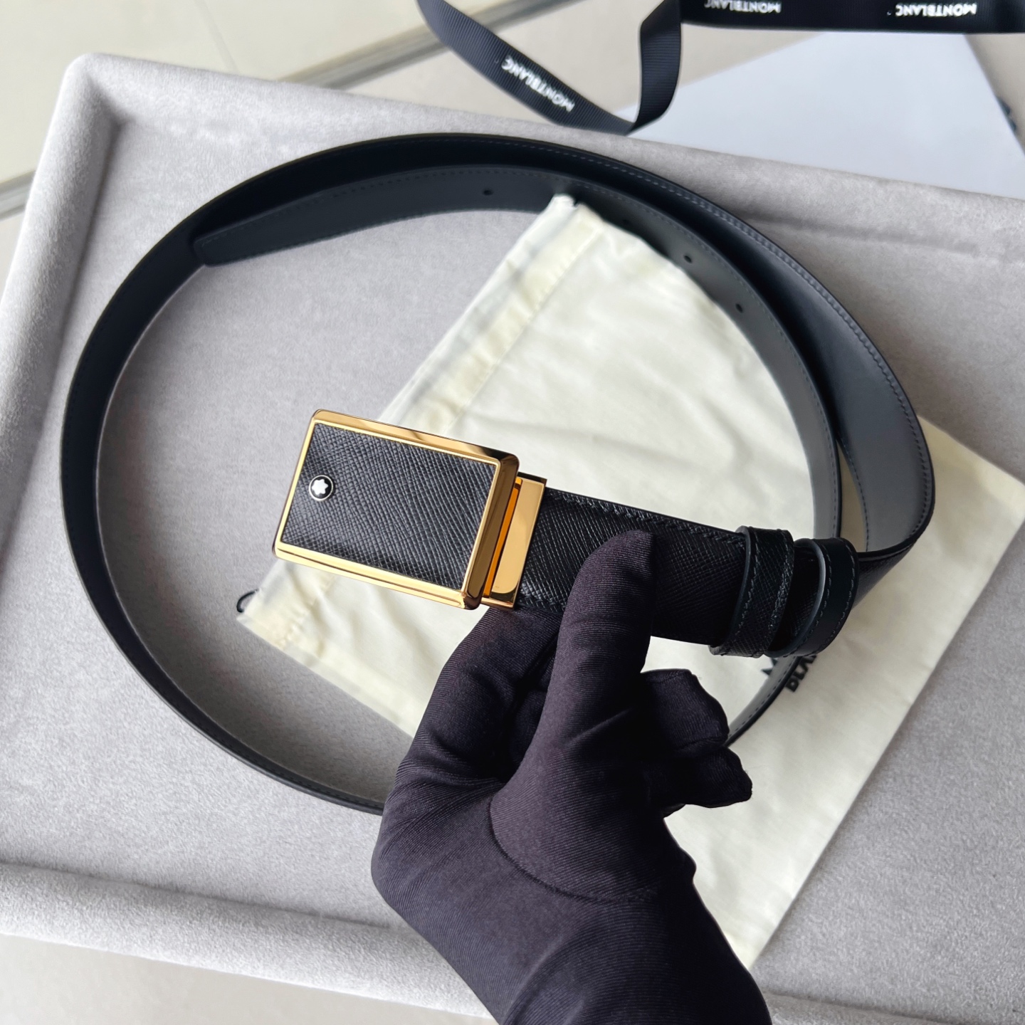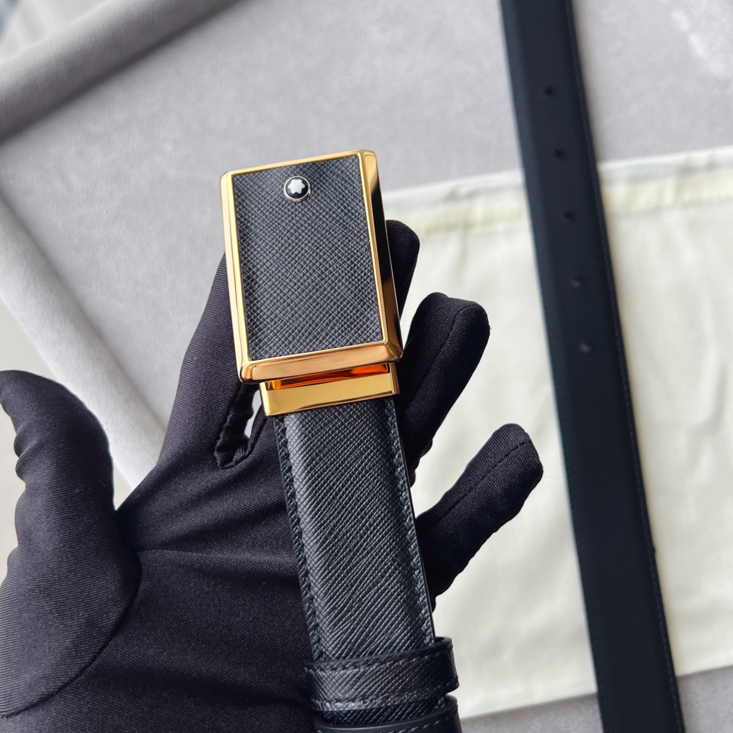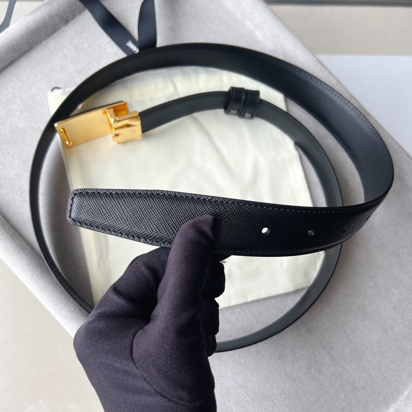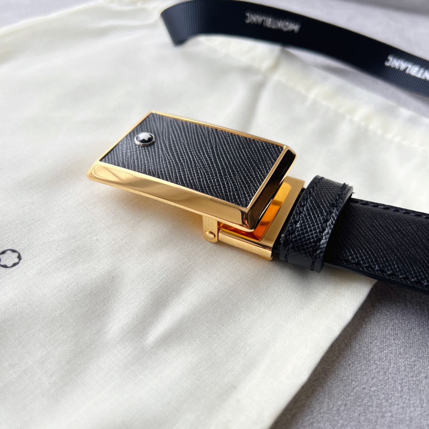 Rectangular frame black cross-grain printed leather and stainless steel decorative buckle. Adjustable length, 3.5cm x 120cm, cross-grain printed black leather belt