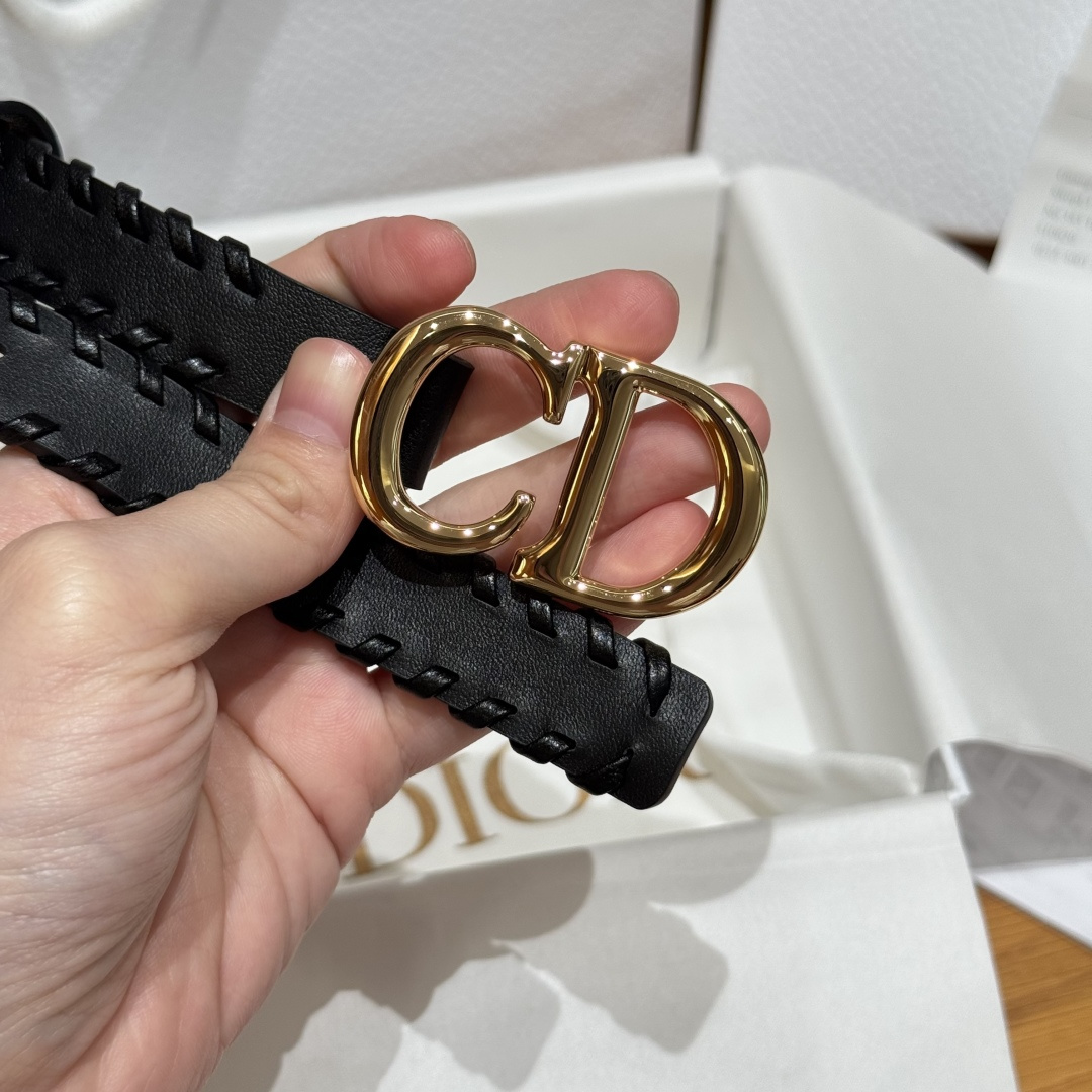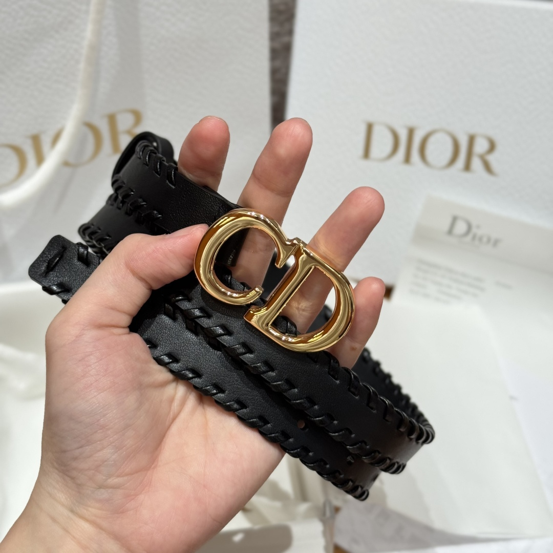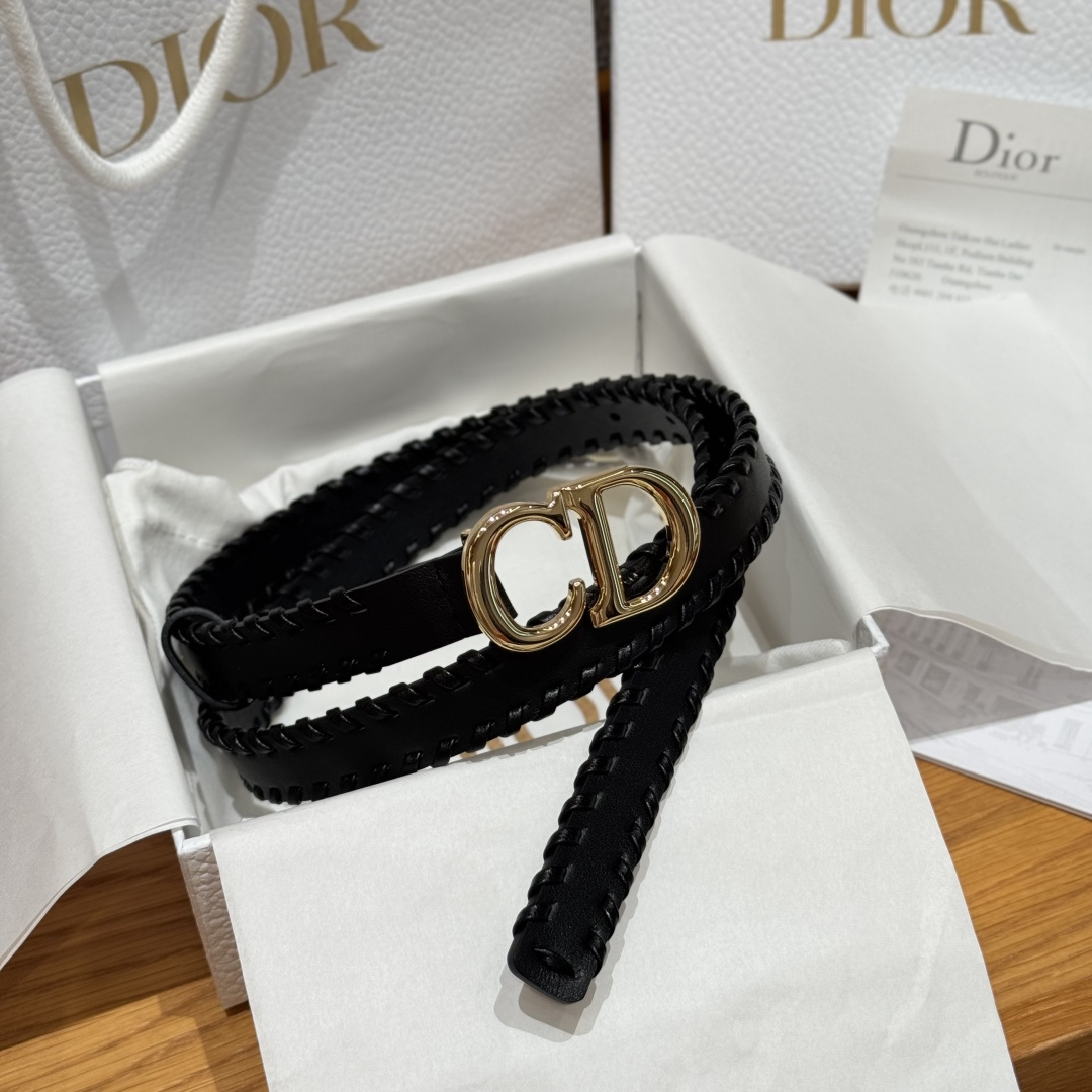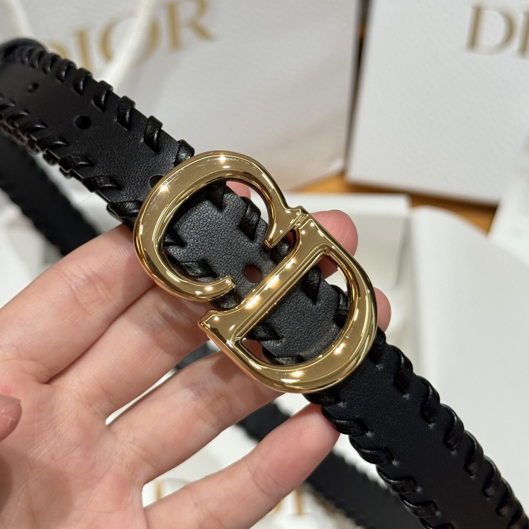 Home • Belt • Dior saddle belt in golden brown leather with CD buckle, hand-stitched details. Classic design for jeans, skirts, or dresses.