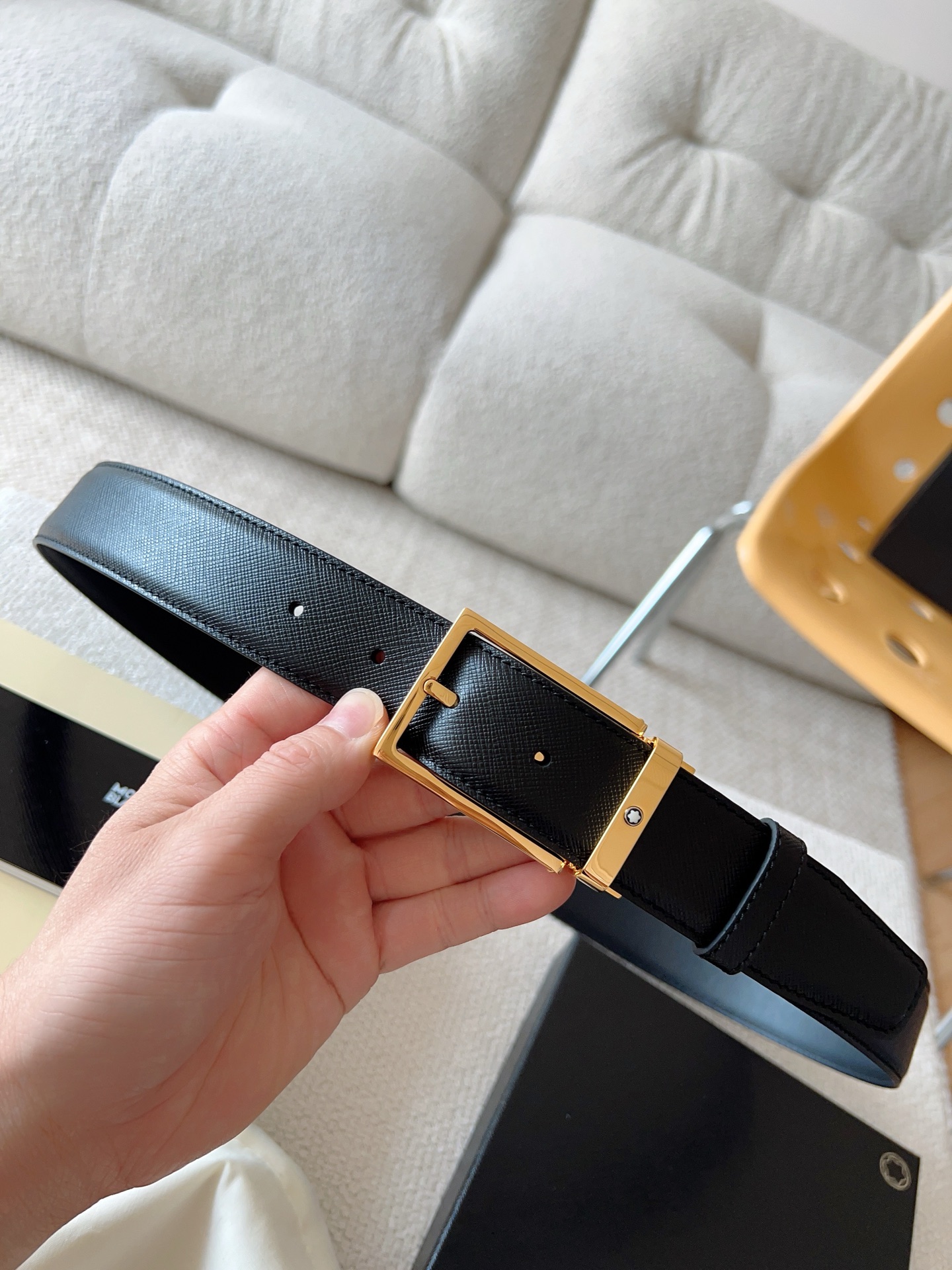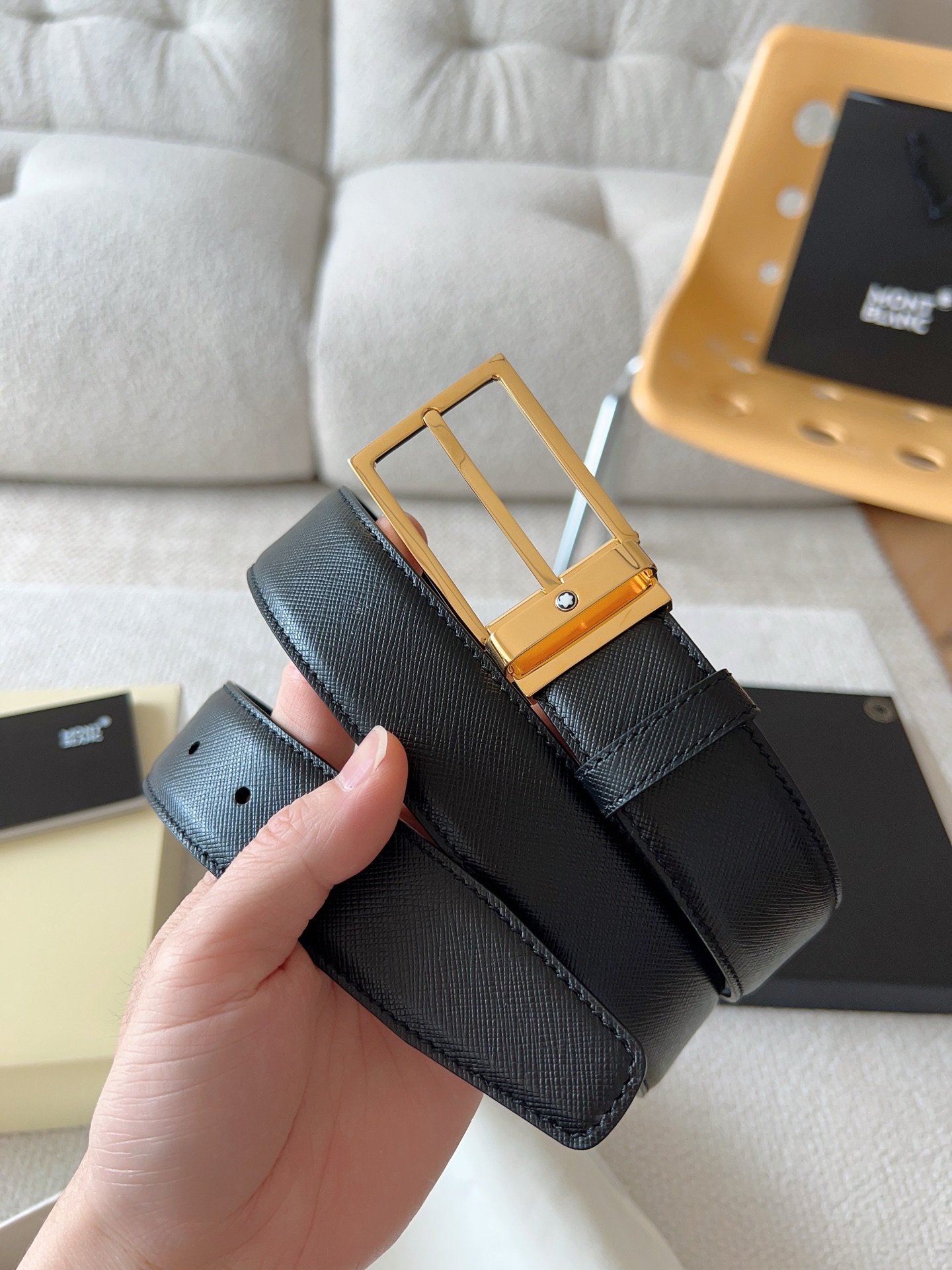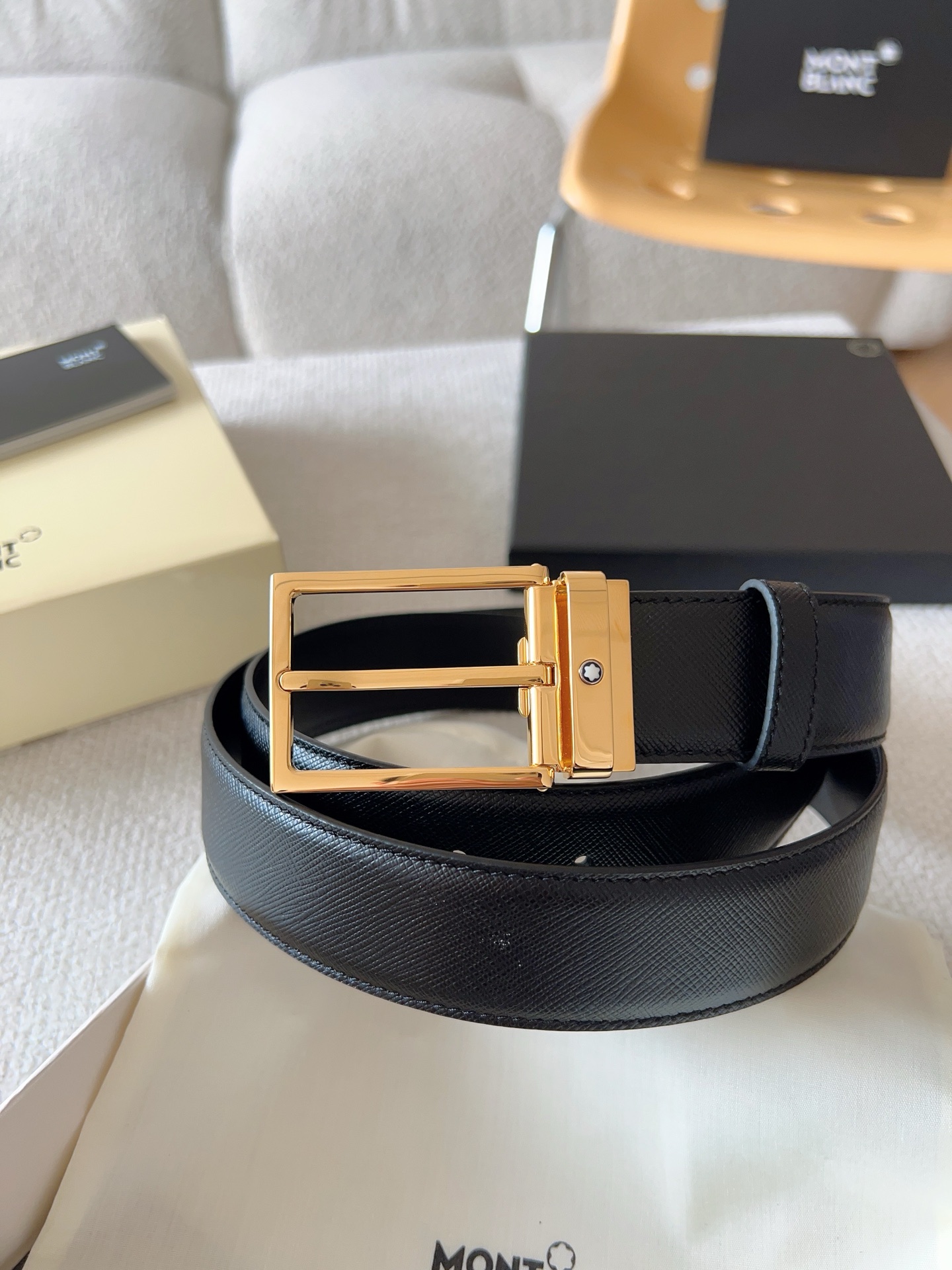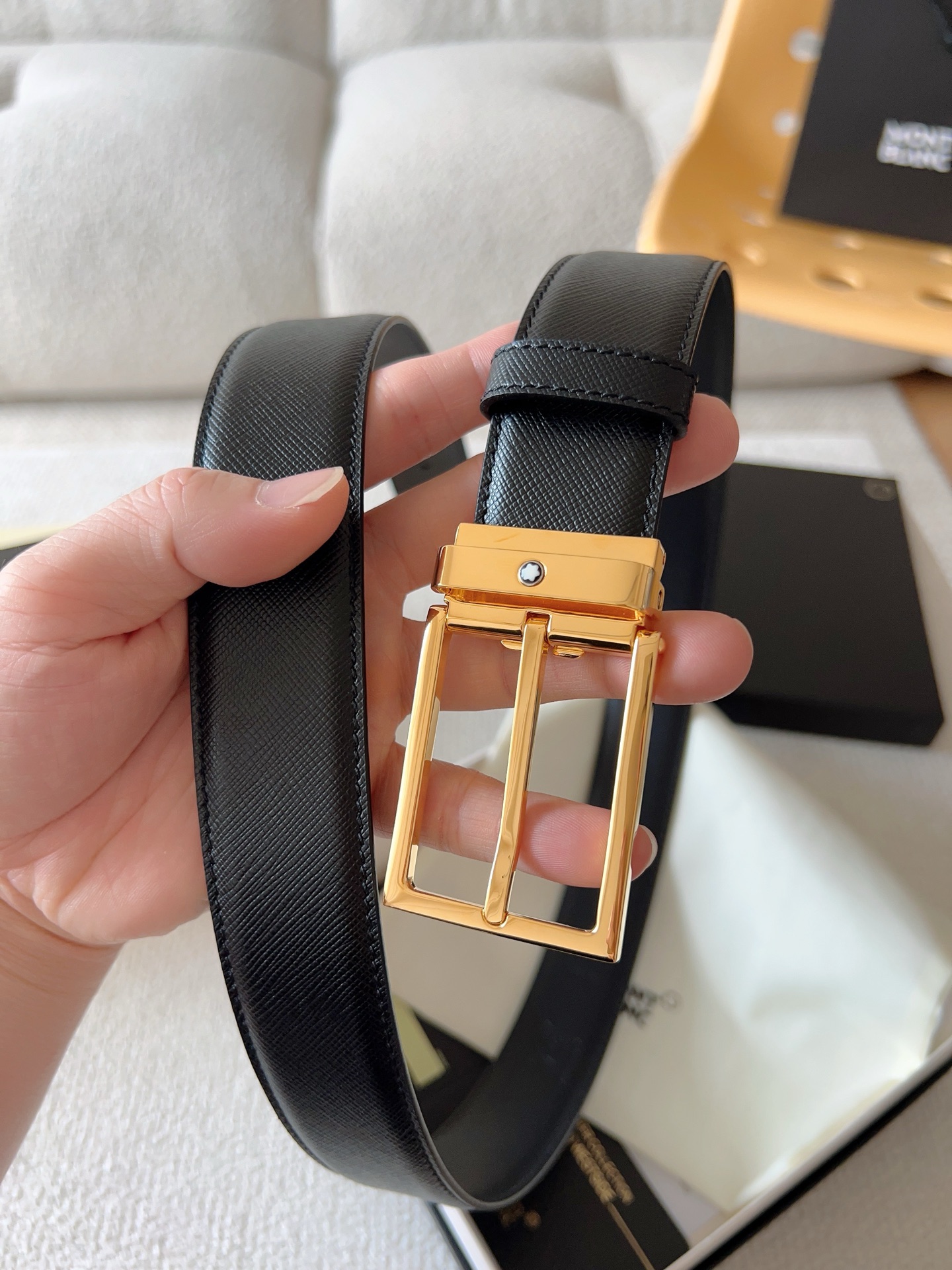 The Montblanc brand represents elegant and enduring lifestyle essentials, reflecting today's society's pursuit and celebration of culture, design, tradition, and excellent craftsmanship. The elegant hexagonal white star emblem has become a symbol of outstanding quality and perfect craftsmanship. Product selection: Imported materials paired with high-quality metal buckles; Belt width: 35mm