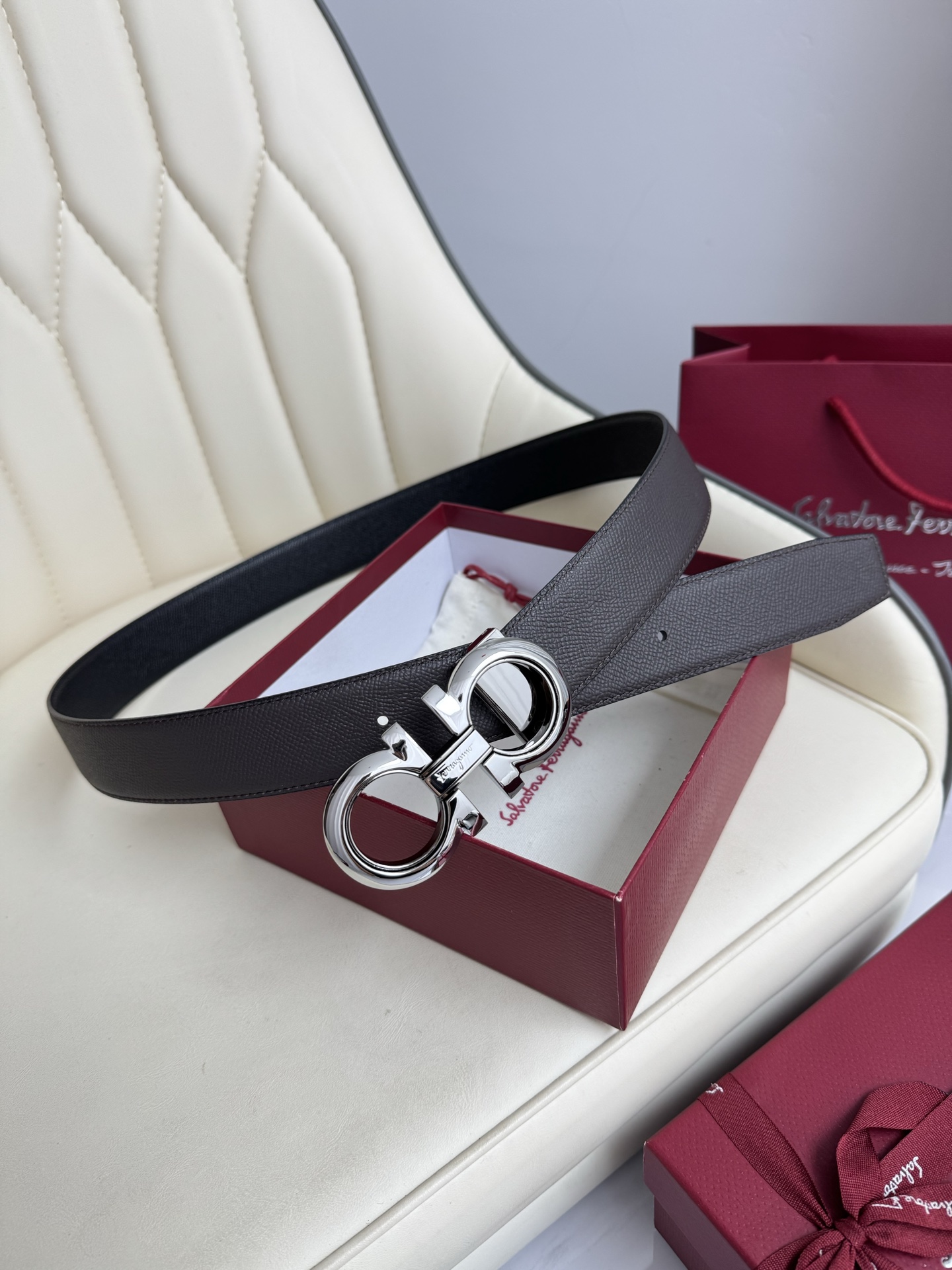 (Ferragamo) Double-sided original imported top grain leather, double-sided use, vacuum electroplated copper buckle, exquisite workmanship, boutique quality! Fashionable, casual, versatile, and highly popular! Comes with a full set of boutique packaging, width 3.5