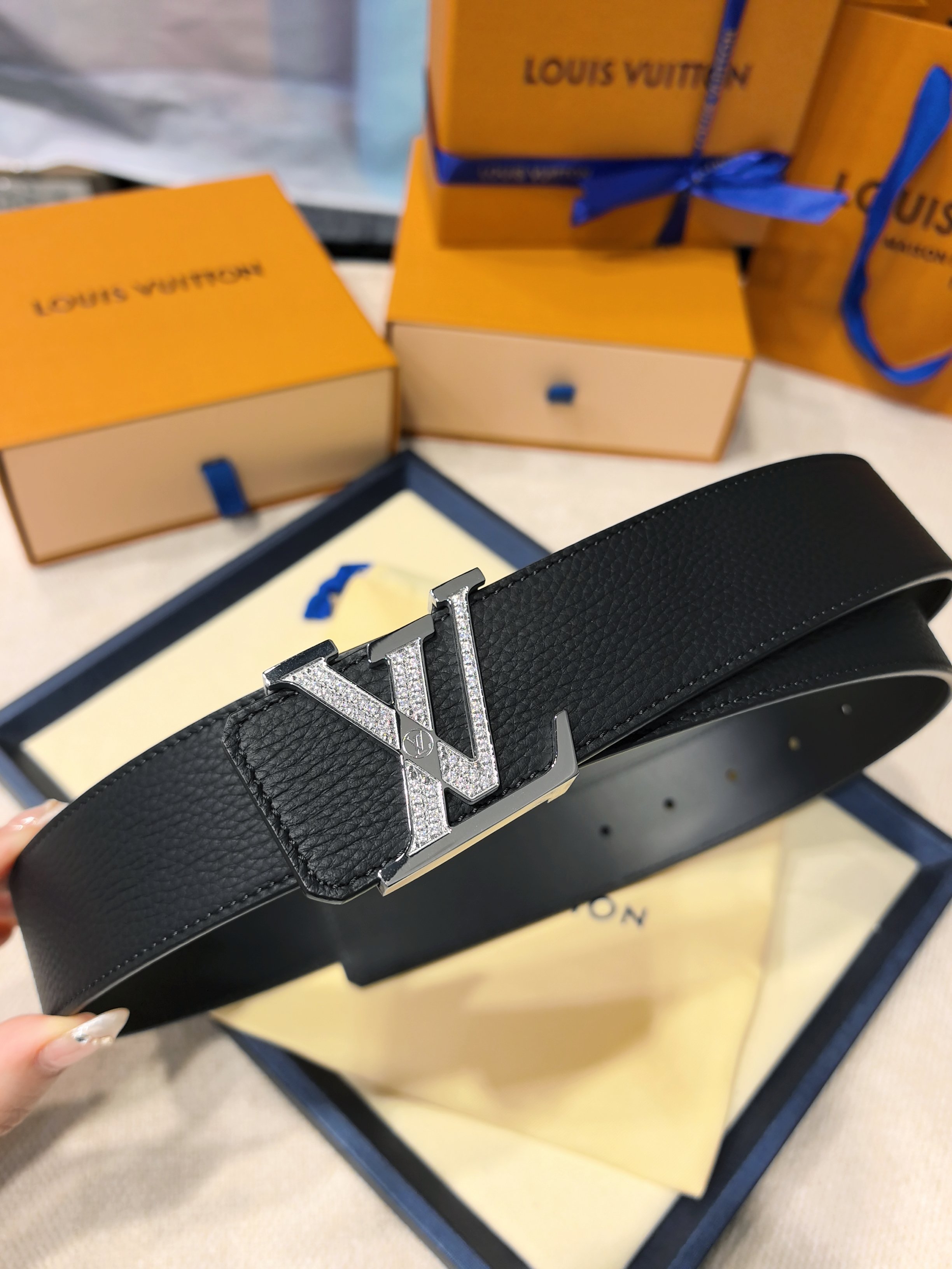 Donkey's Home French original factory leather, embossed texture paired with Italian imported size 4.0cm, high-quality hardware inlaid with diamonds, imported internal furnace hardware