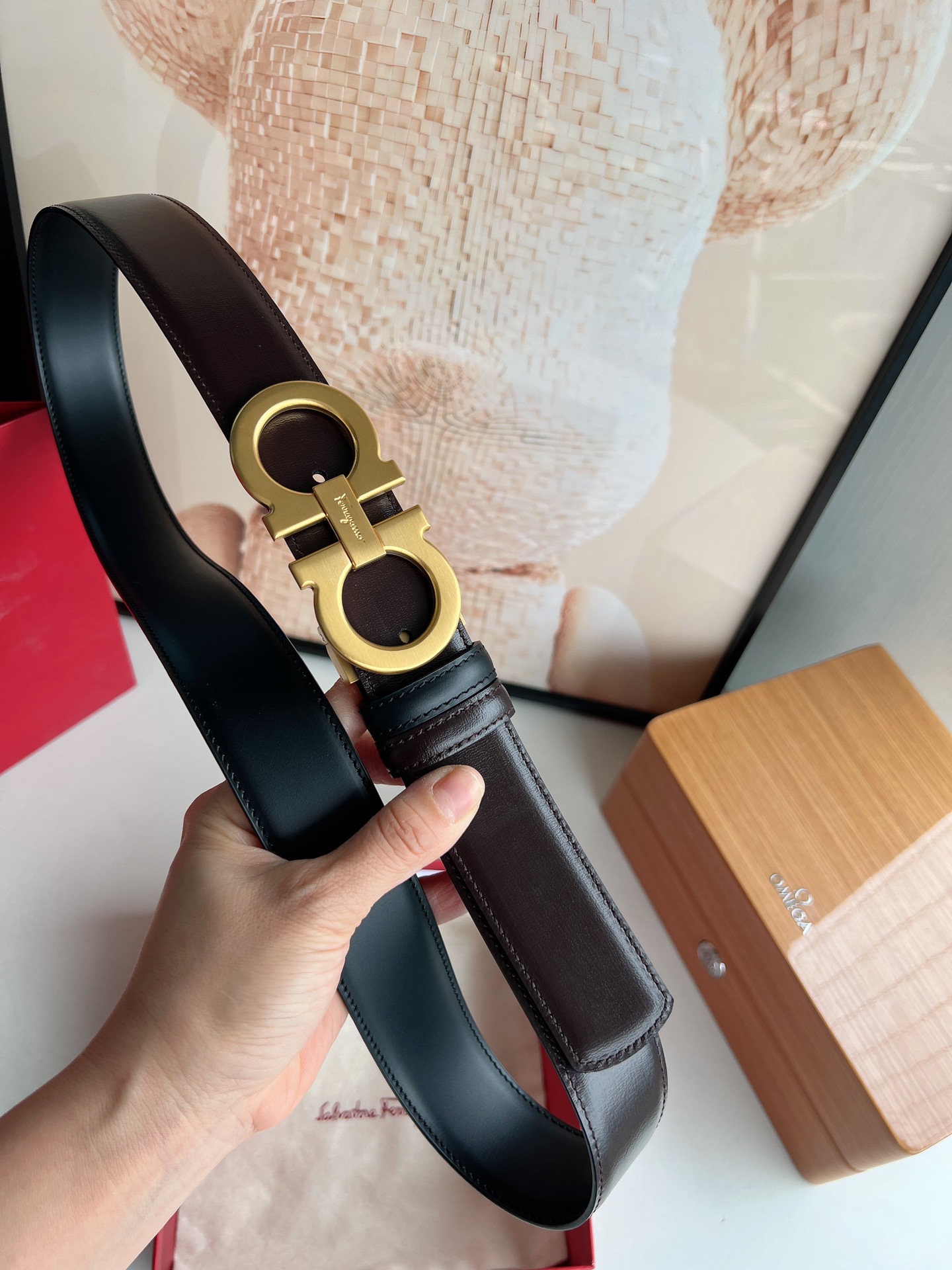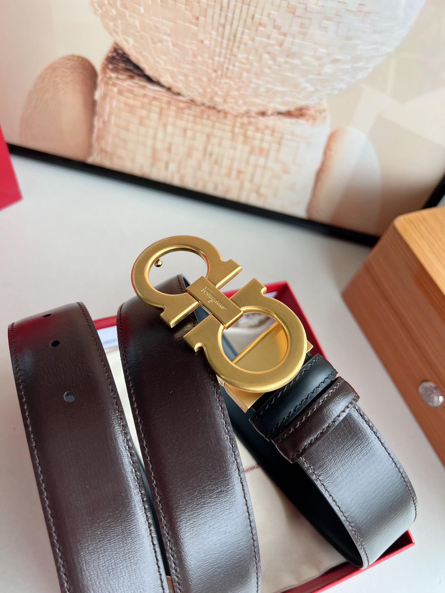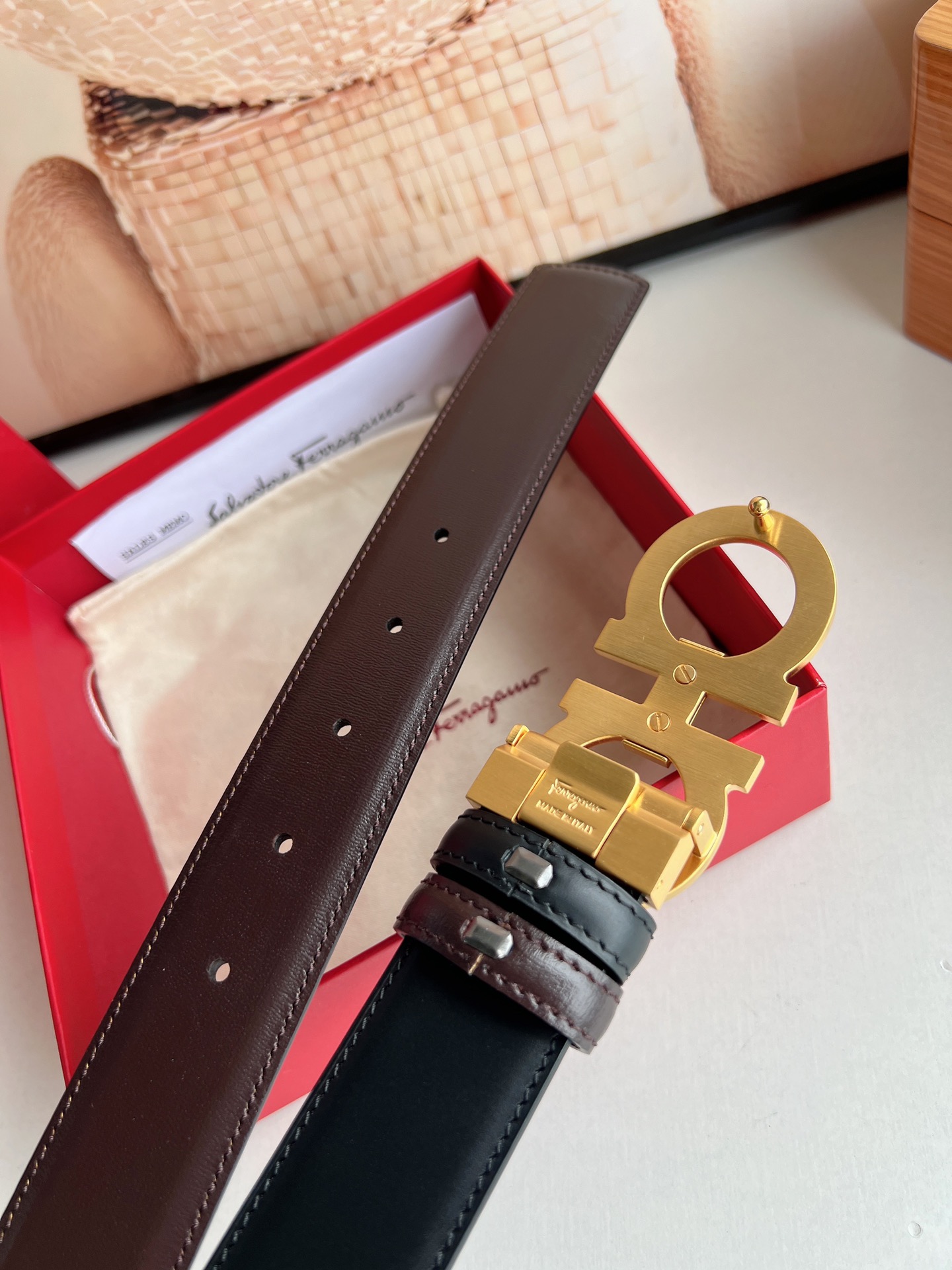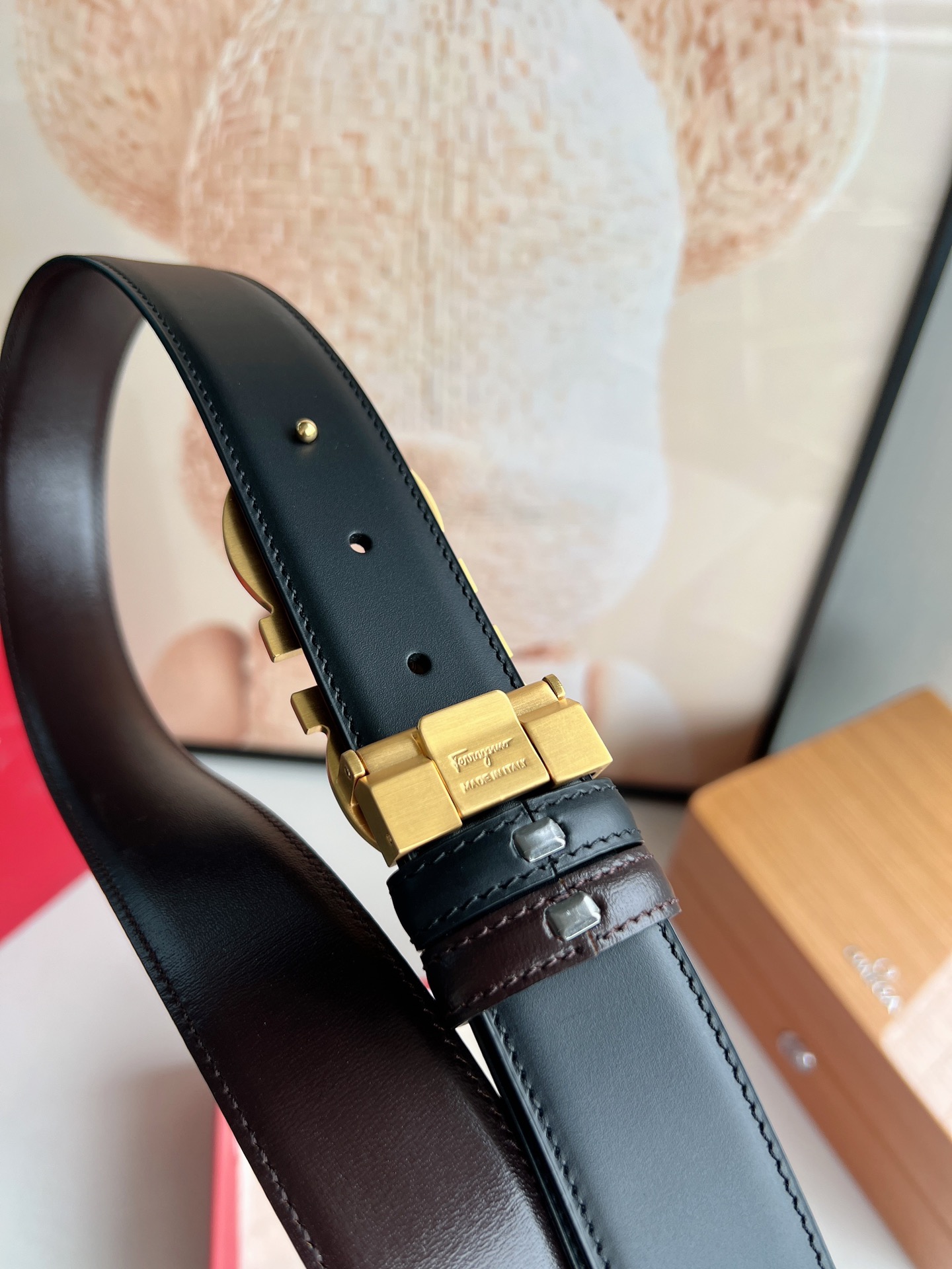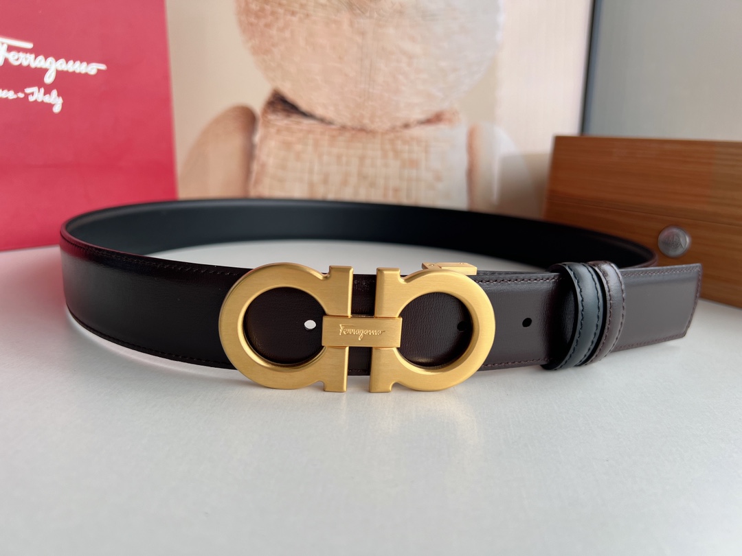Upgraded Premium Version - Ferragamo Men's 3.5cm Premium Metal Buckle, thickened electroplated layer for wear resistance, not easy to fade or discolor, hypoallergenic, imported double-sided top-grain cowhide, versatile and timeless.