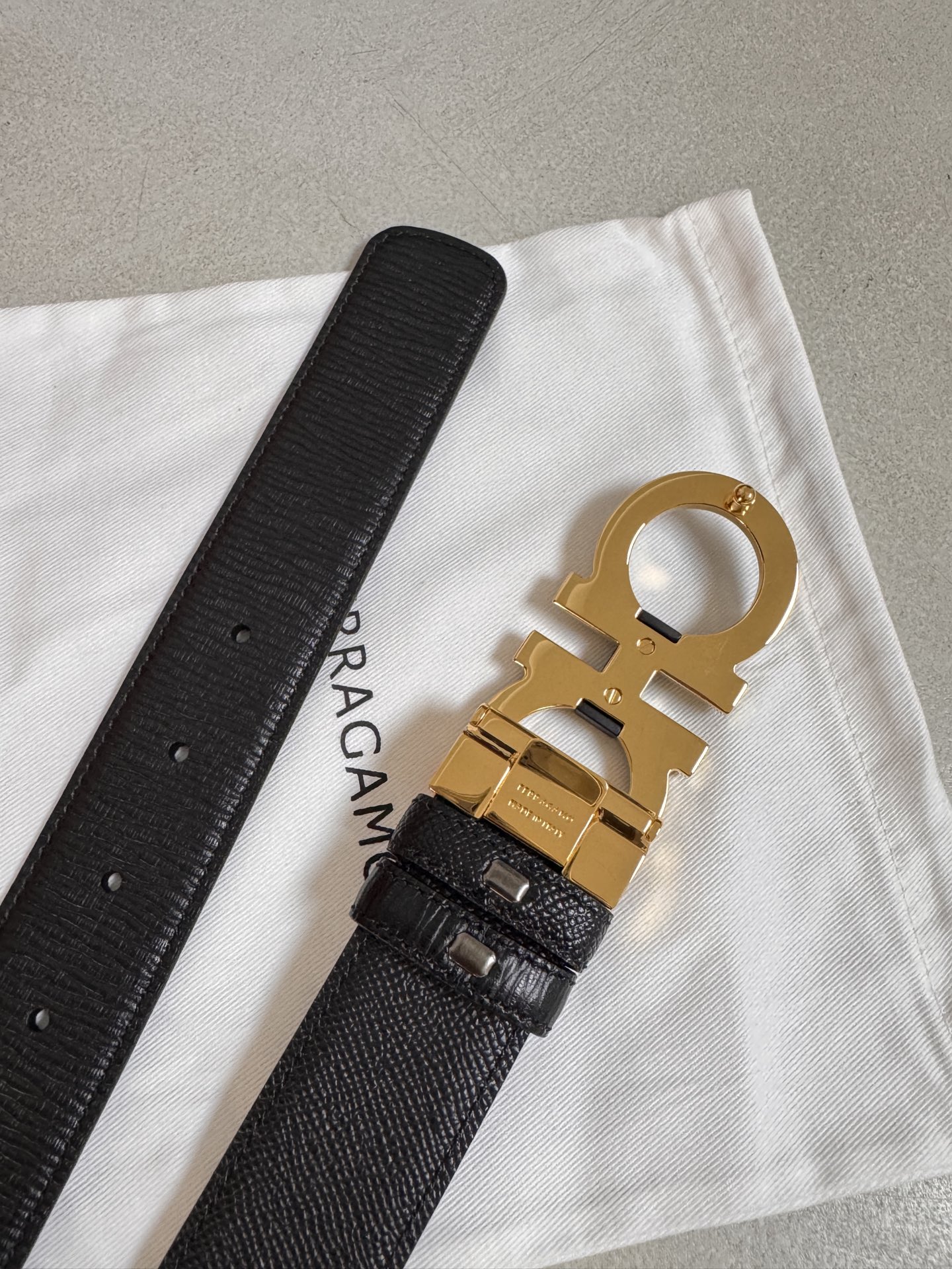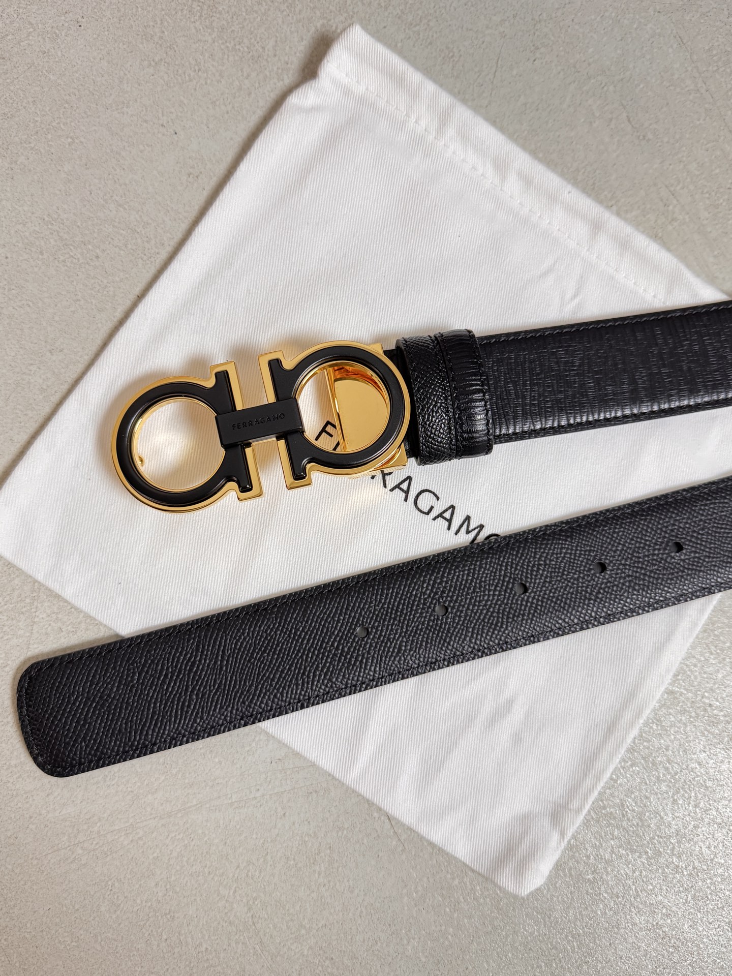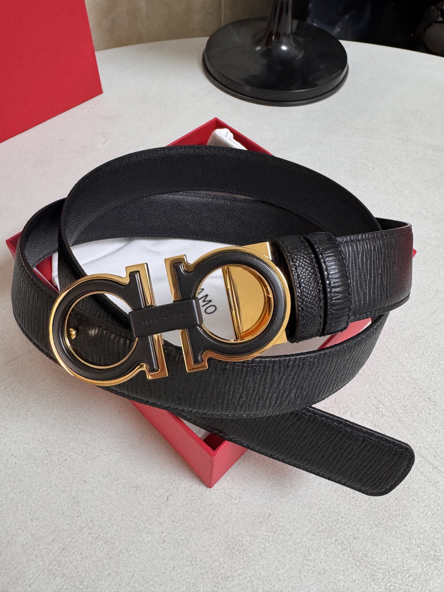Ferragamo men's leather belt in black/black-brown, double-sided, classic timeless boutique-style double-layer buckle belt 3.5cm, exquisite workmanship, perfect presentation