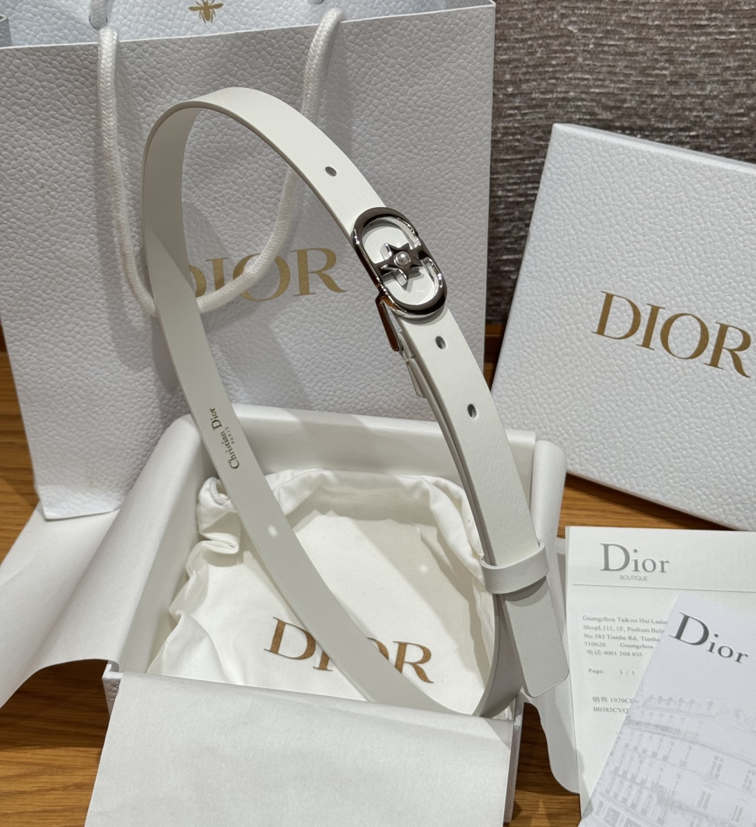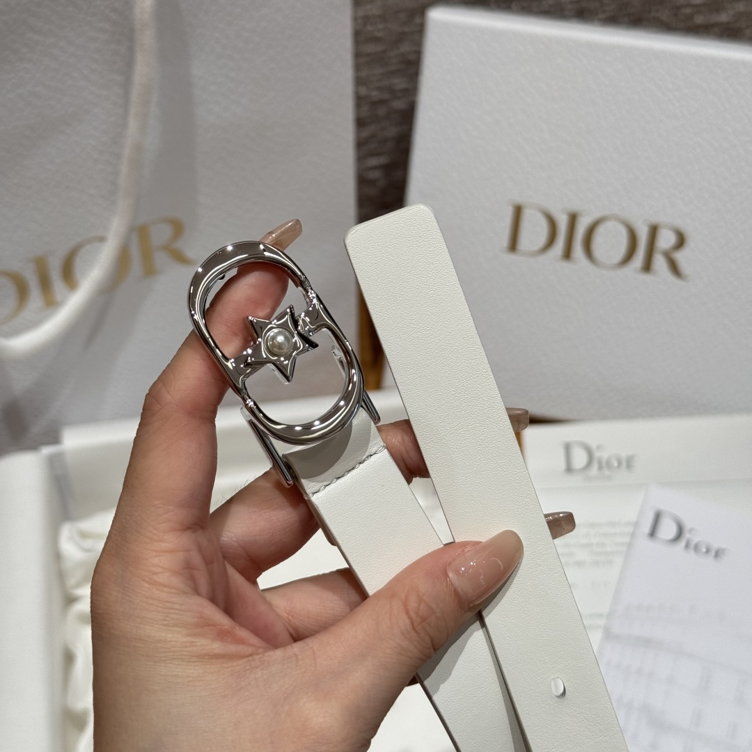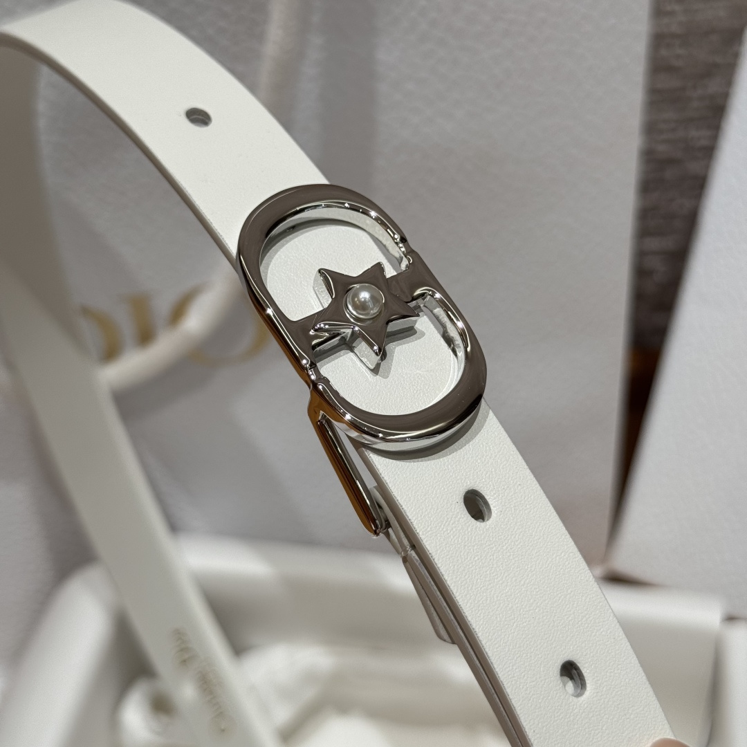 This Lucky 30 Montaigne Star belt is a new ready-to-wear piece from the 2025 Spring-Summer collection, highlighting one of the brand's cherished symbols. It is meticulously crafted from smooth black calfskin and features a lustrous silver-finished CD buckle. Adorned with the brand's lucky star to elevate the style, it is accented with white resin beads in the center. It can be paired with classic blazers, dresses, or jeans to enhance an elegant temperament.
