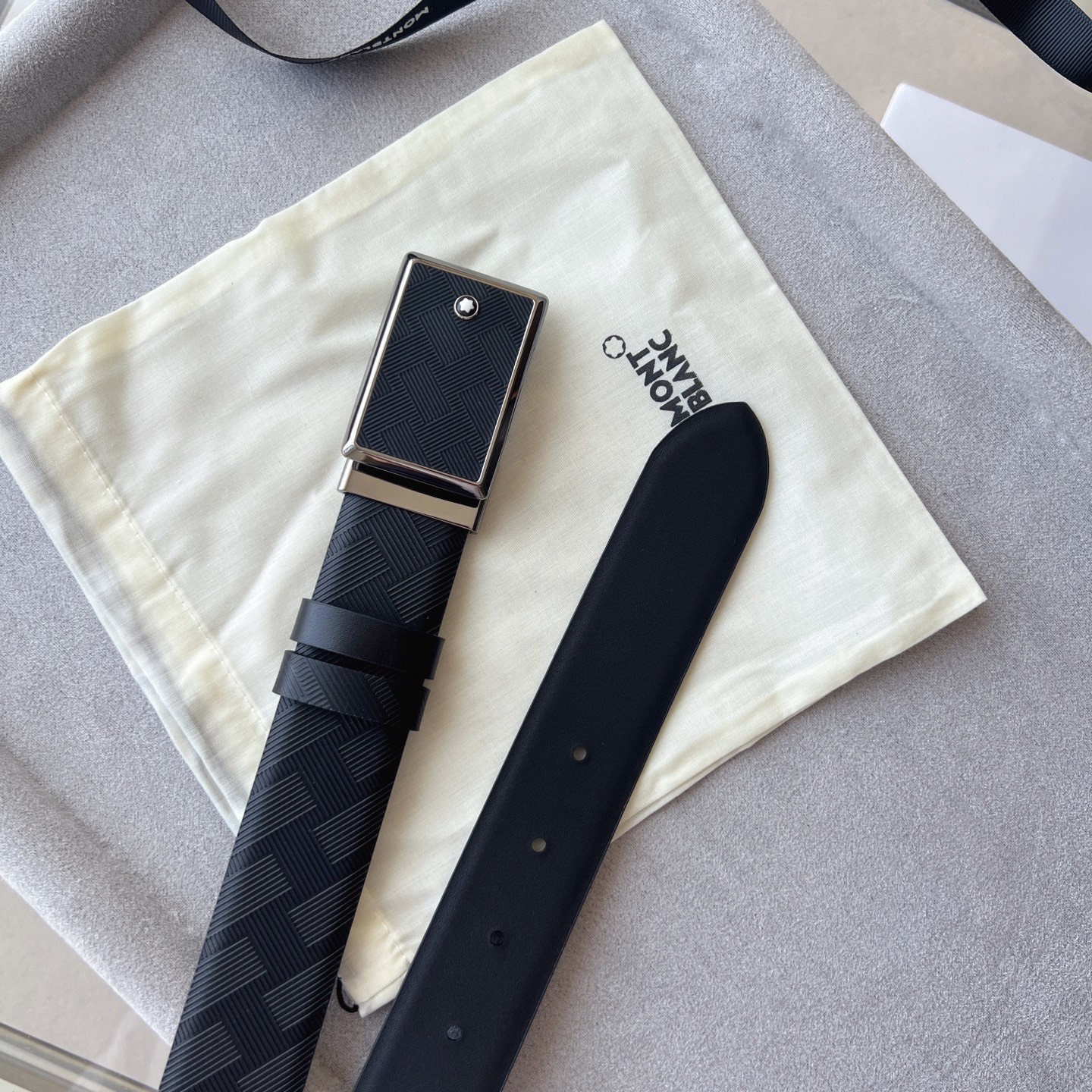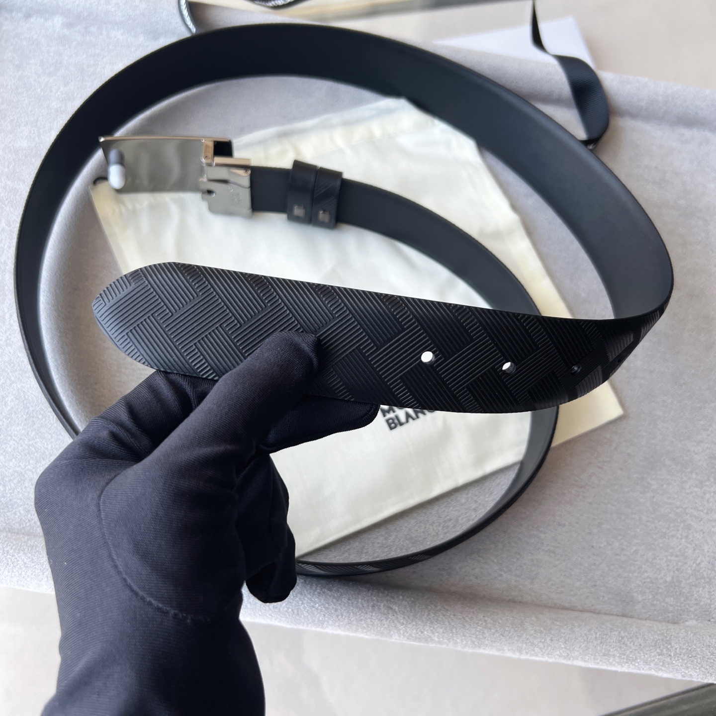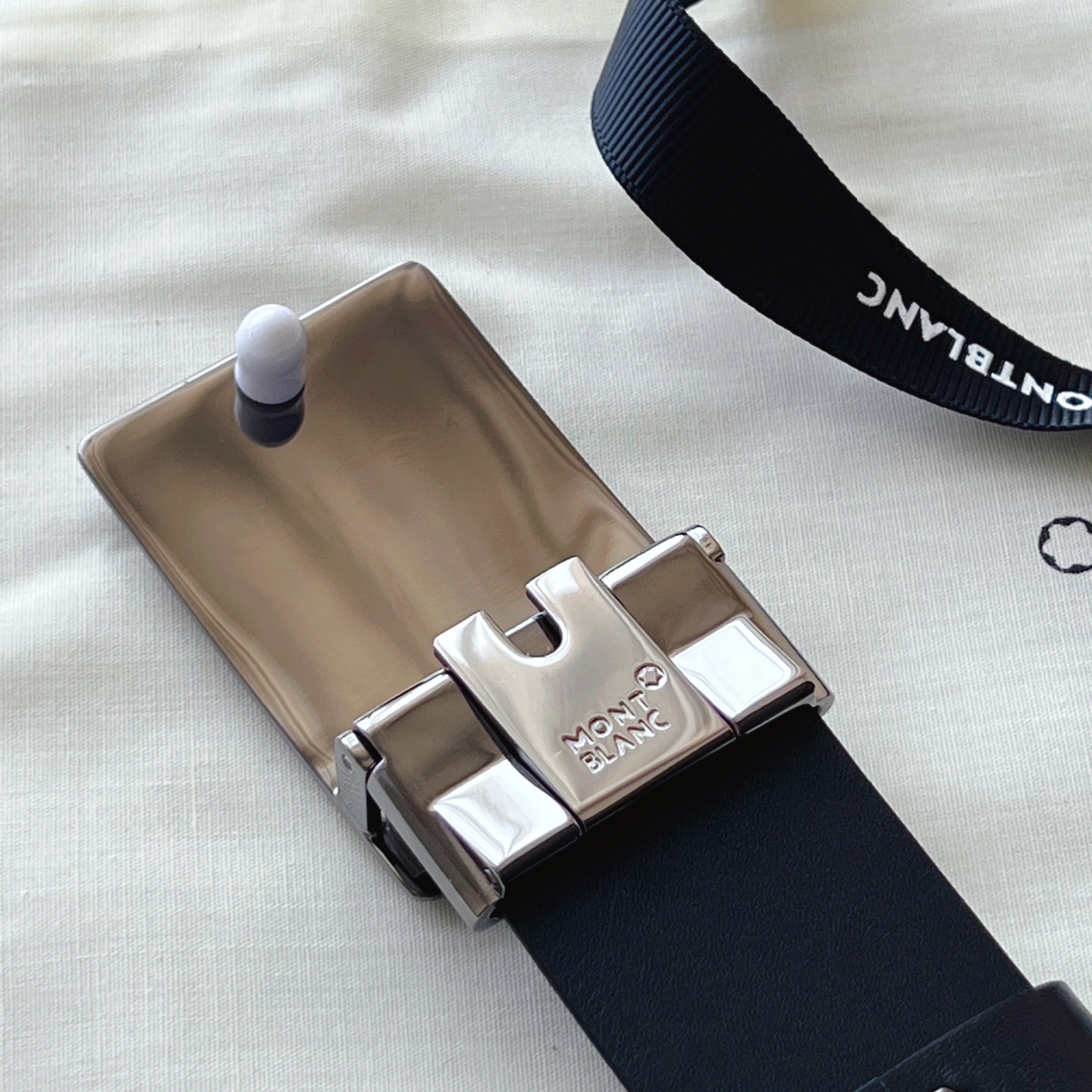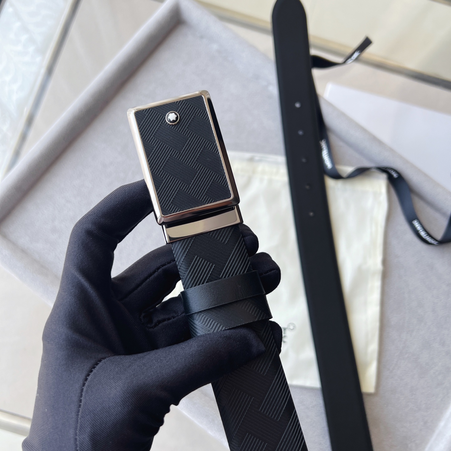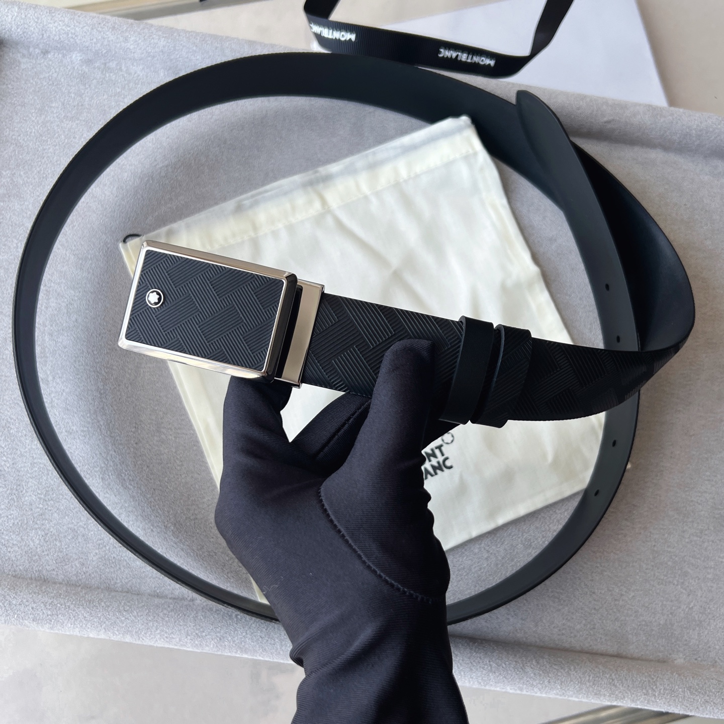 Black Belt 35mm The buckle of this 35mm black belt features a shiny ruthenium-plated finish, classic and versatile.