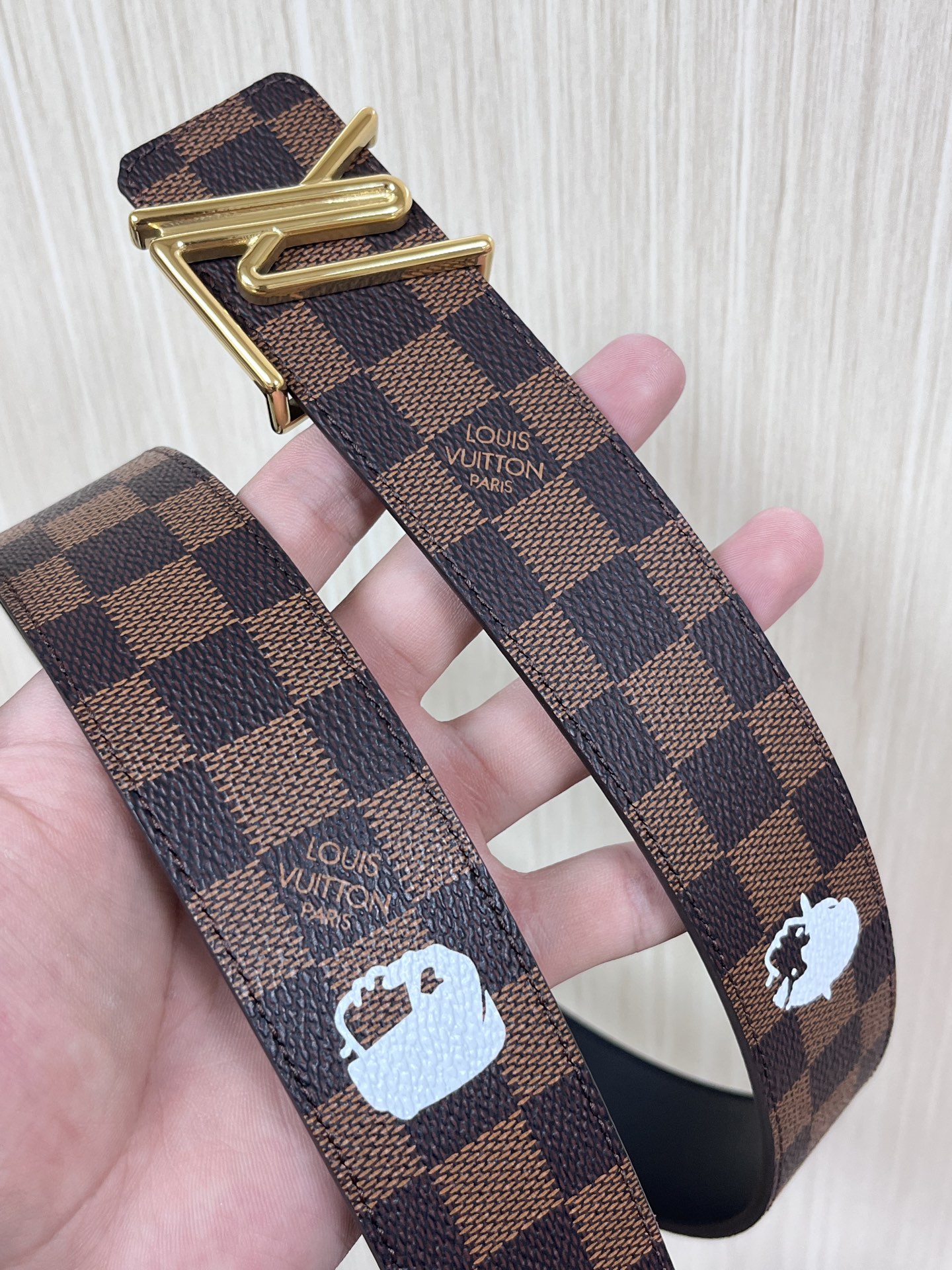 Season's new style, 4.0 wide coffee grid printed with white letters/small figure, paired with black imported calfskin, equipped with high-quality buckle. Exquisite workmanship, details can be seen in the pictures, synchronized with the official website.