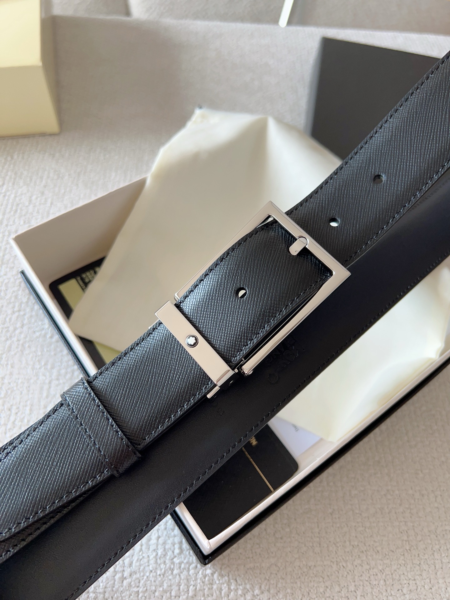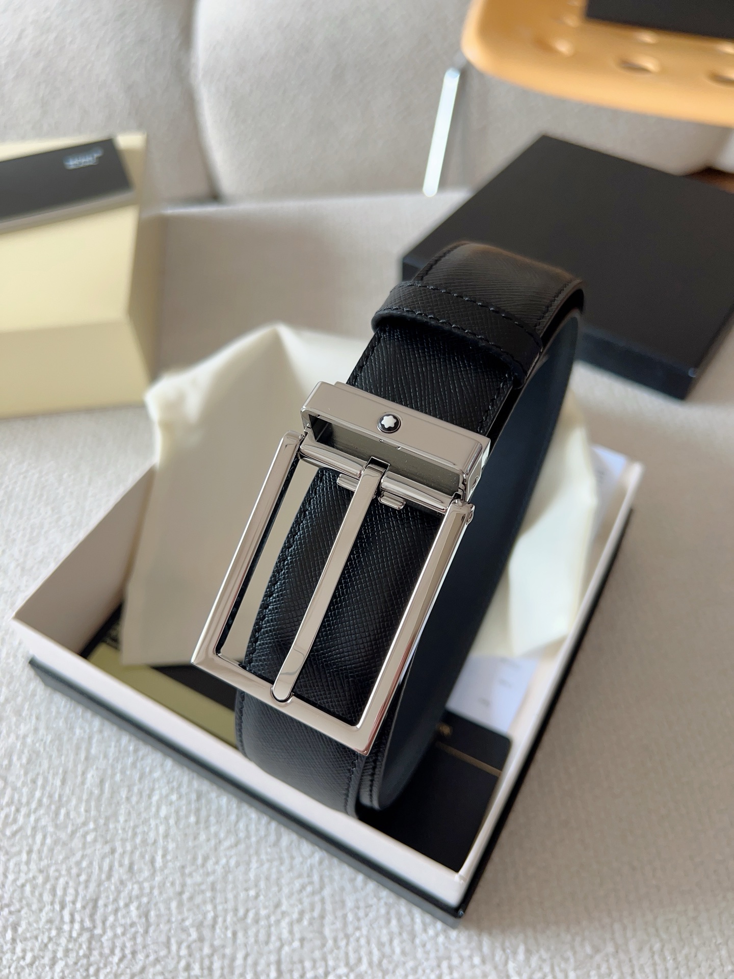 The Montblanc brand represents elegant and enduring lifestyle essentials, reflecting today's society's pursuit and celebration of culture, design, tradition, and exquisite craftsmanship. The elegant hexagonal white star emblem has become a symbol of exceptional quality and perfect craftsmanship. Product selection: Imported materials paired with high-quality metal buckles; Belt width: 35mm