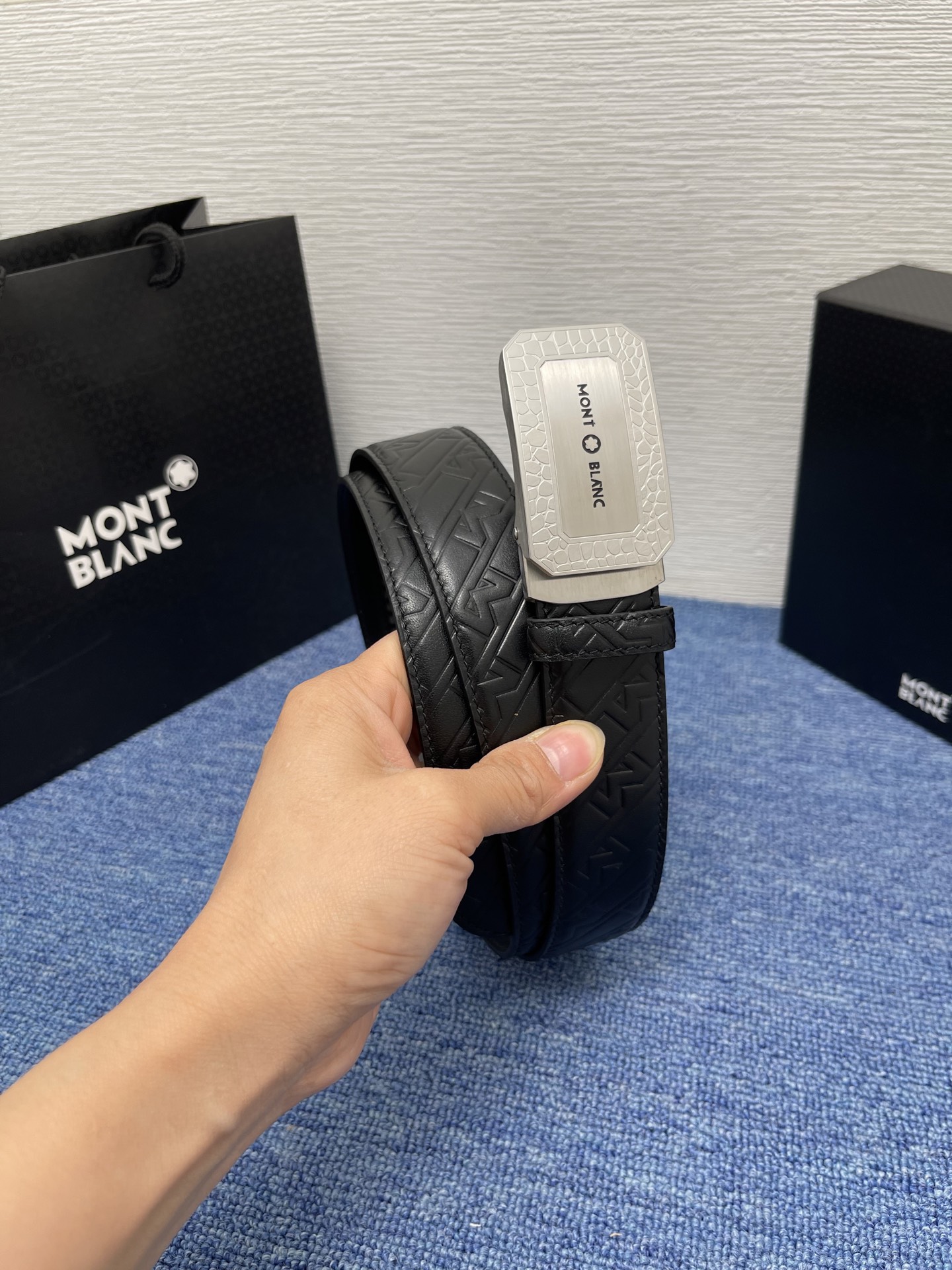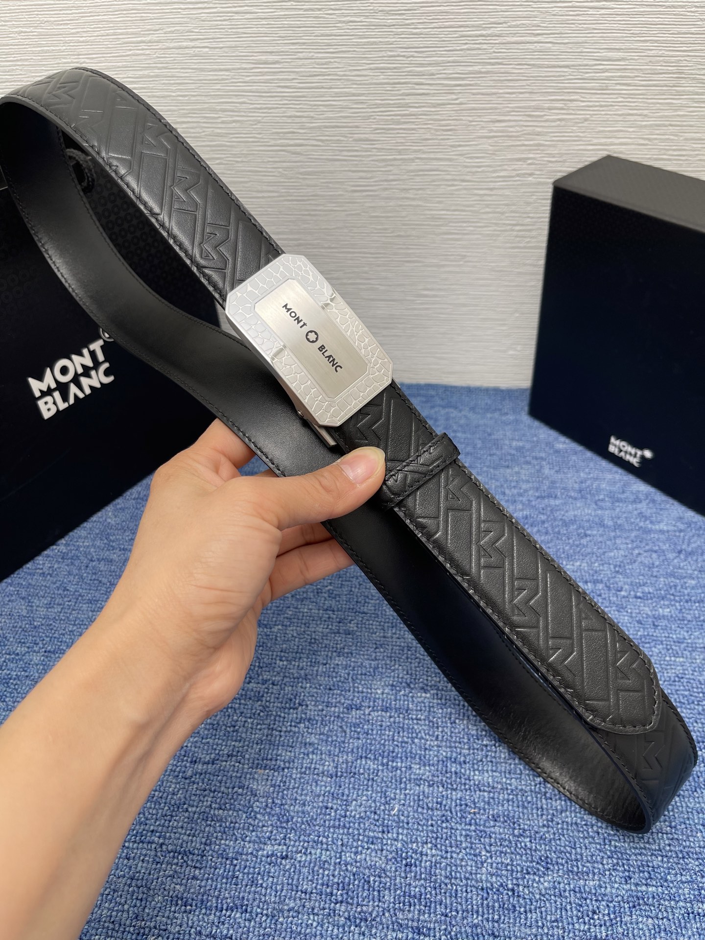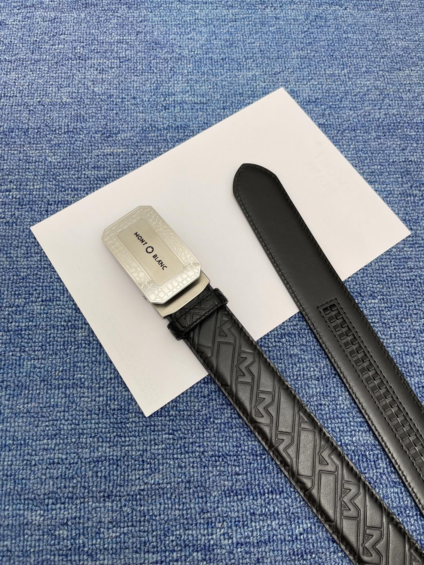Montblanc Double-sided original leather, this belt with a buckle is lined with buffalo leather and covered with Monogram cowhide. It showcases the brand's delicate characteristics and is an ideal accessory for jeans. 3.5 wide