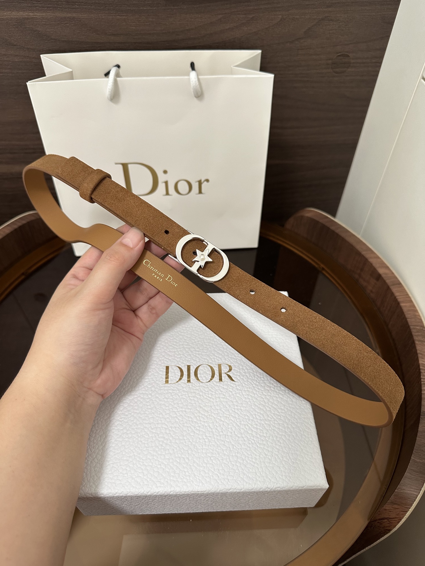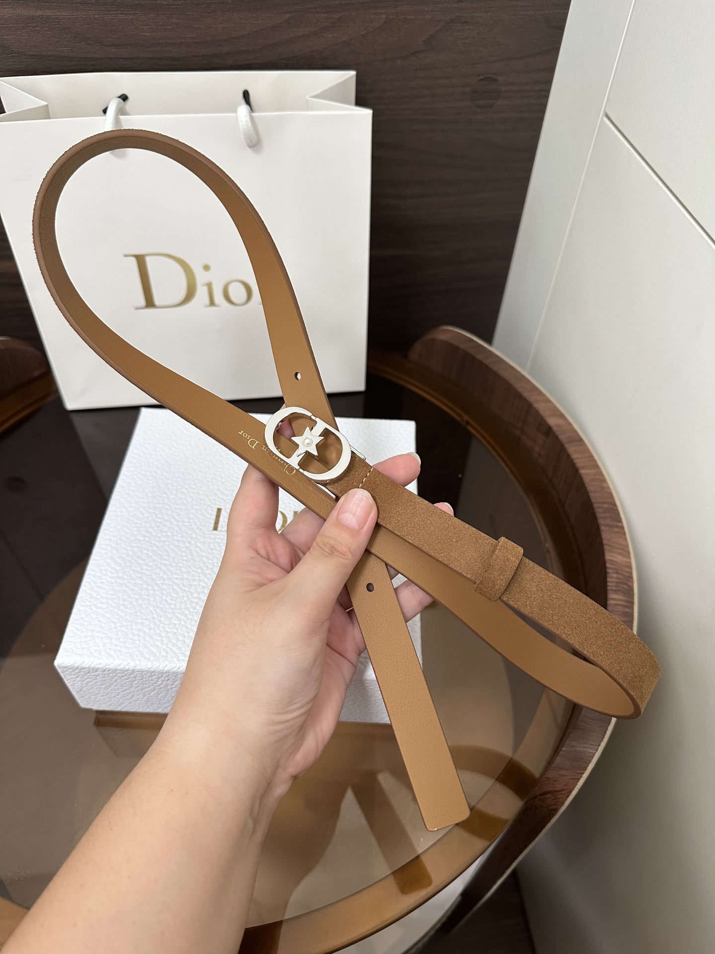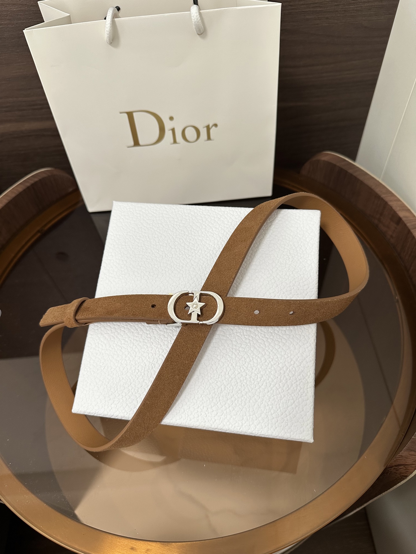 This Lucky 30 Montaigne Star belt is a new ready-to-wear piece from the Spring-Summer 2025 collection, highlighting one of the cherished symbols of Monsieur Dior. Meticulously crafted from smooth calfskin, it features a glossy gold-finished metal CD buckle, adorned with Dior's lucky star for elevated style, accented in the center with white resin beads.
