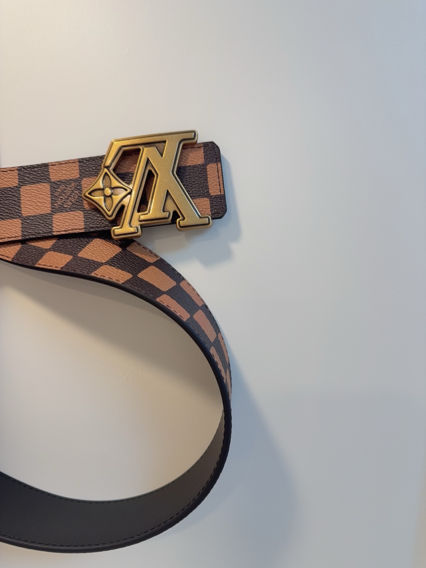 This double-sided belt is made from Monogram coated canvas, with the brand's Flower embossing on the back of the leather showcasing the new design by Pharrell Williams. The unique buckle incorporates bold letters and delicate floral patterns, giving the brand elements a modern charm.