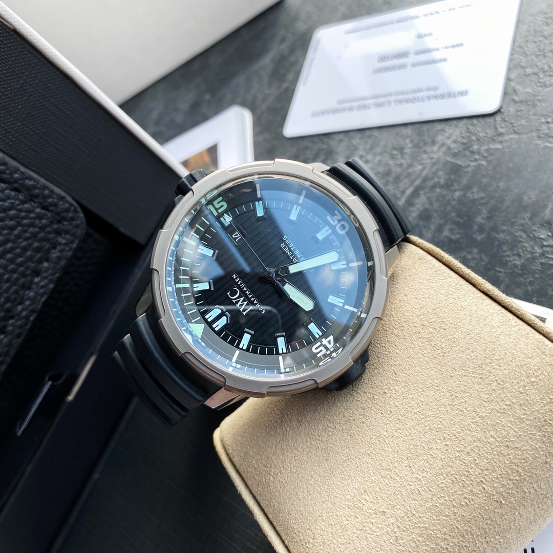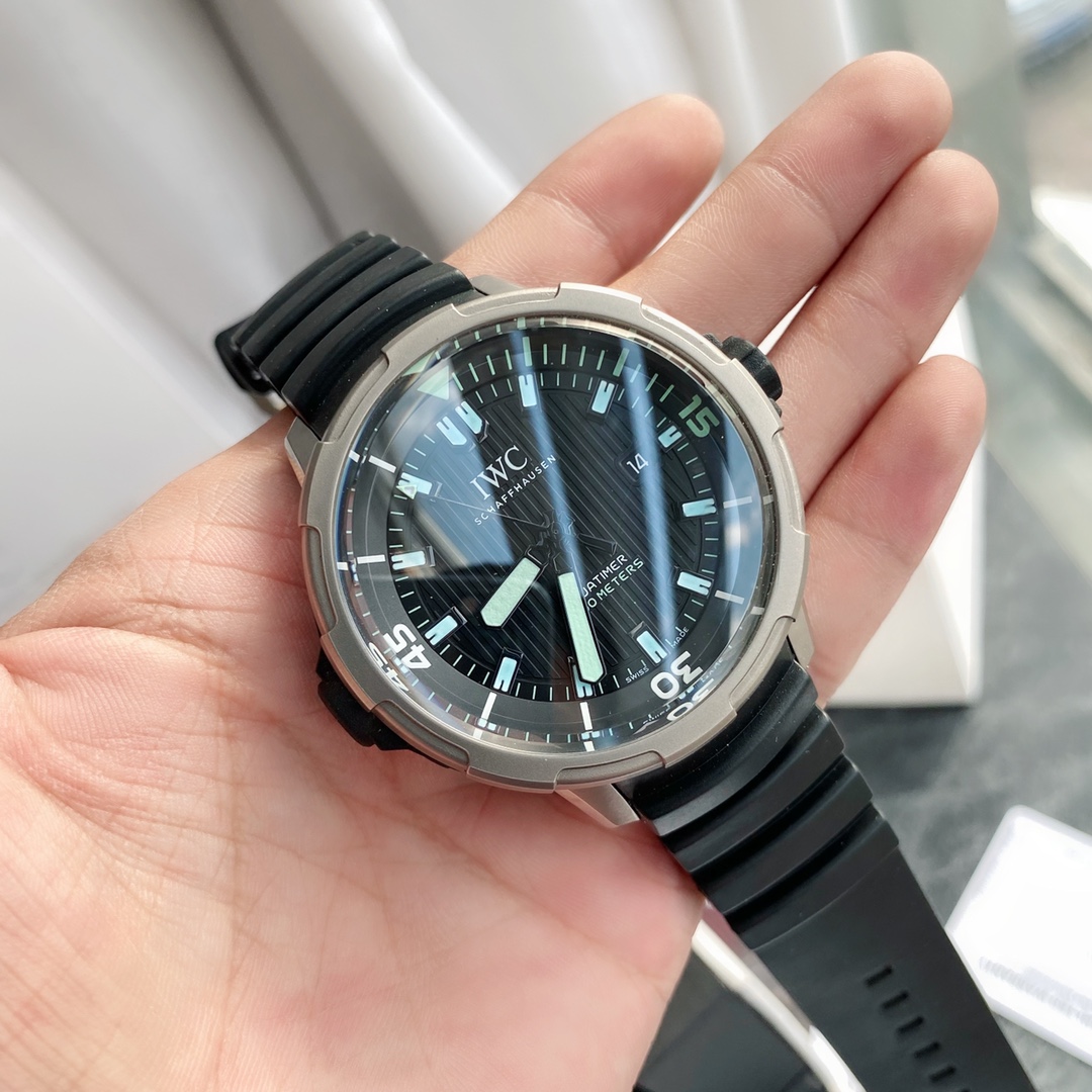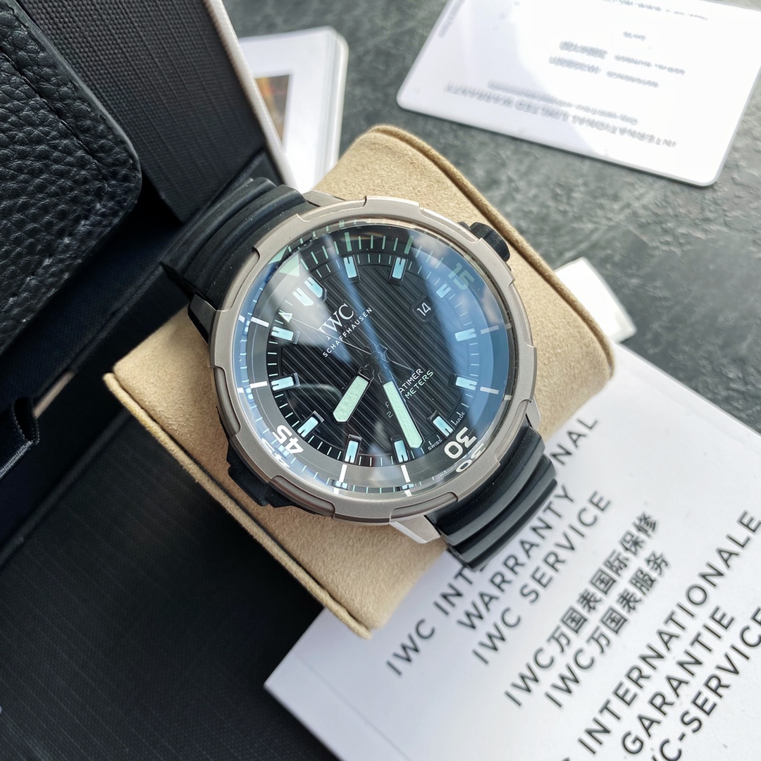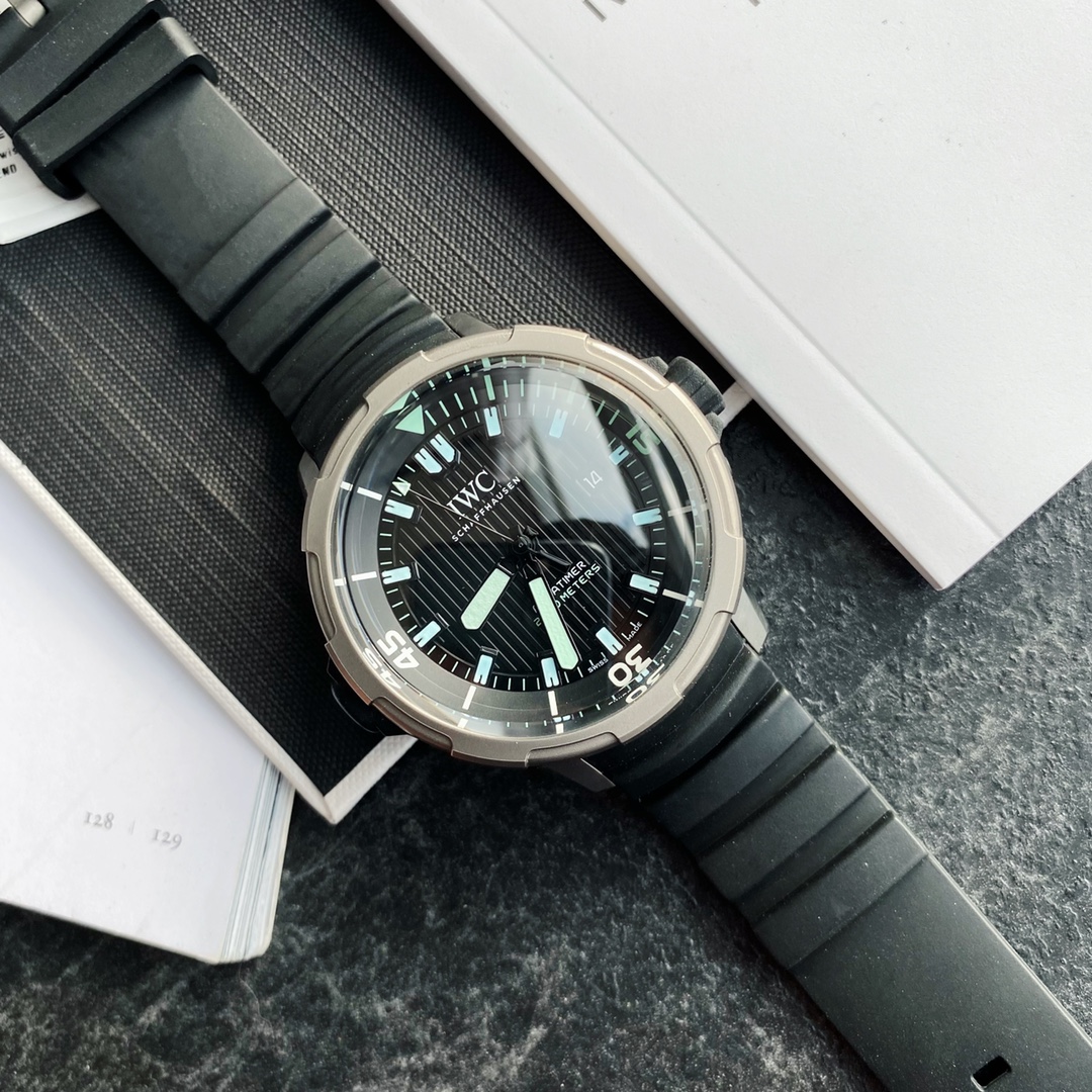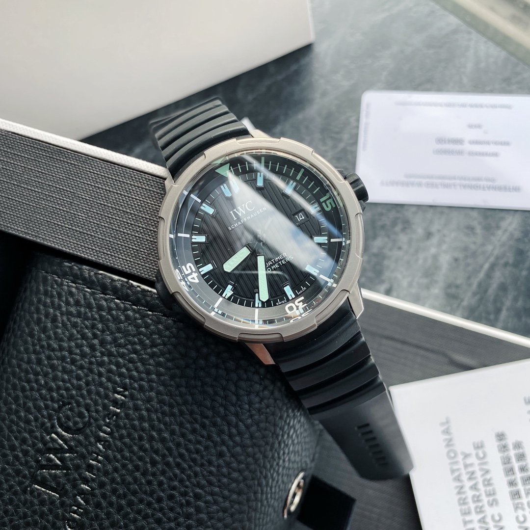 Batch! The new IWC Ocean 2000 Automatic Watch (Ref IW358002) draws inspiration from its 1982 heritage, with IWC's close connection to diving dating back to the 1960s. Designed by the legendary designer Ferdinand A. Porsche. The watch case measures 46mm in diameter and 20.0mm in thickness, powered by a Swiss-made ETA 2824 movement. The watch features a titanium case paired with a black rubber strap equipped with a patented quick-change system. The crown is also wrapped in black rubber, and the innovative inner and outer rotating bezel incorporates a safe diving system. With such a large case size, it can be described as "poison" for those who pursue large-diameter watches, ensuring extremely high recognition when worn. One version features markers coated with green luminous material, while the other comes with yellow coating—two versions to choose from. Limited quantity available, don’t miss out if you like it. It’s an excellent choice for both personal wear and gifting!