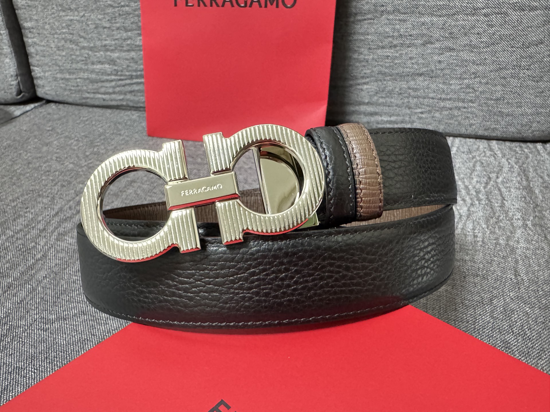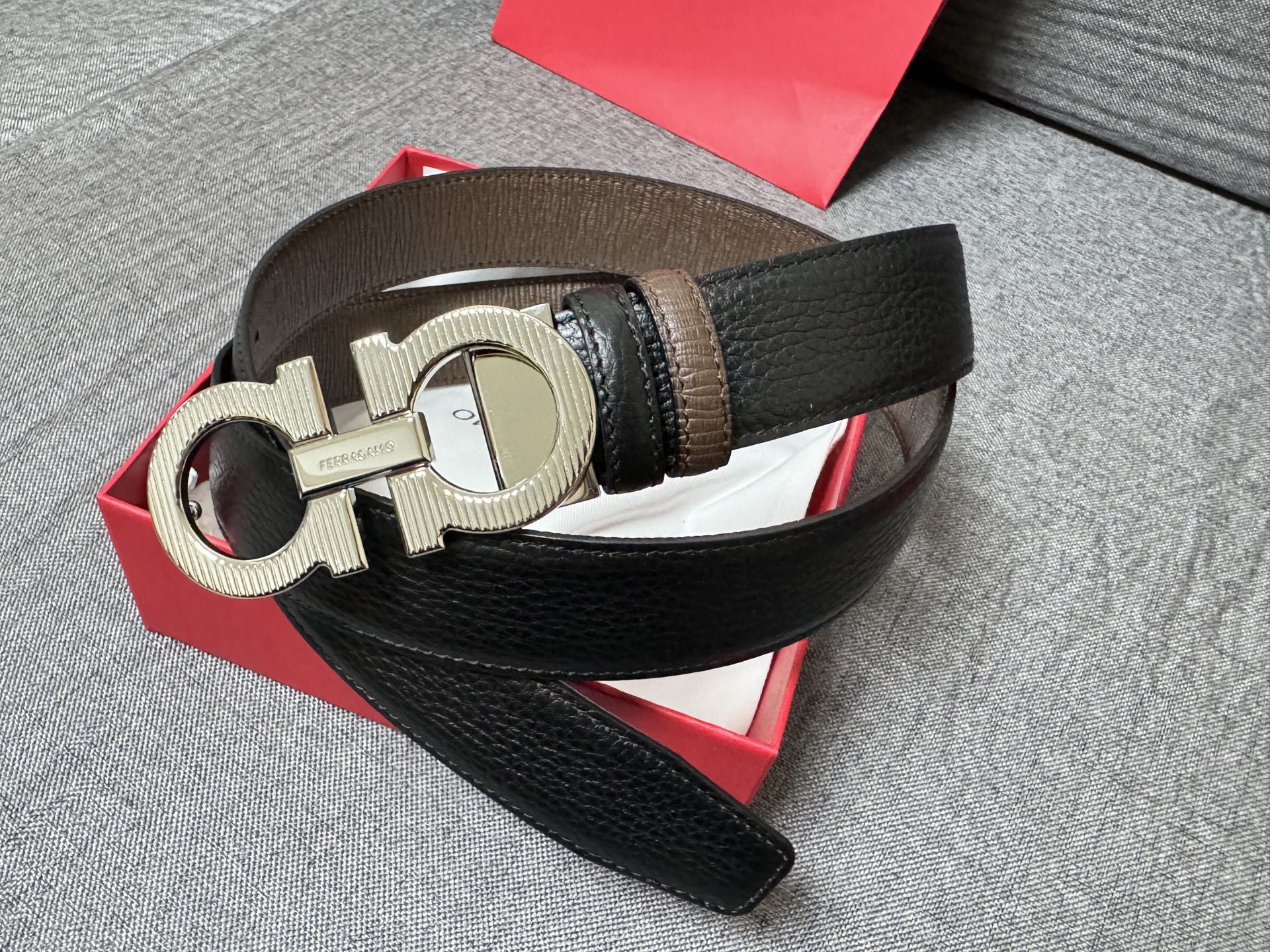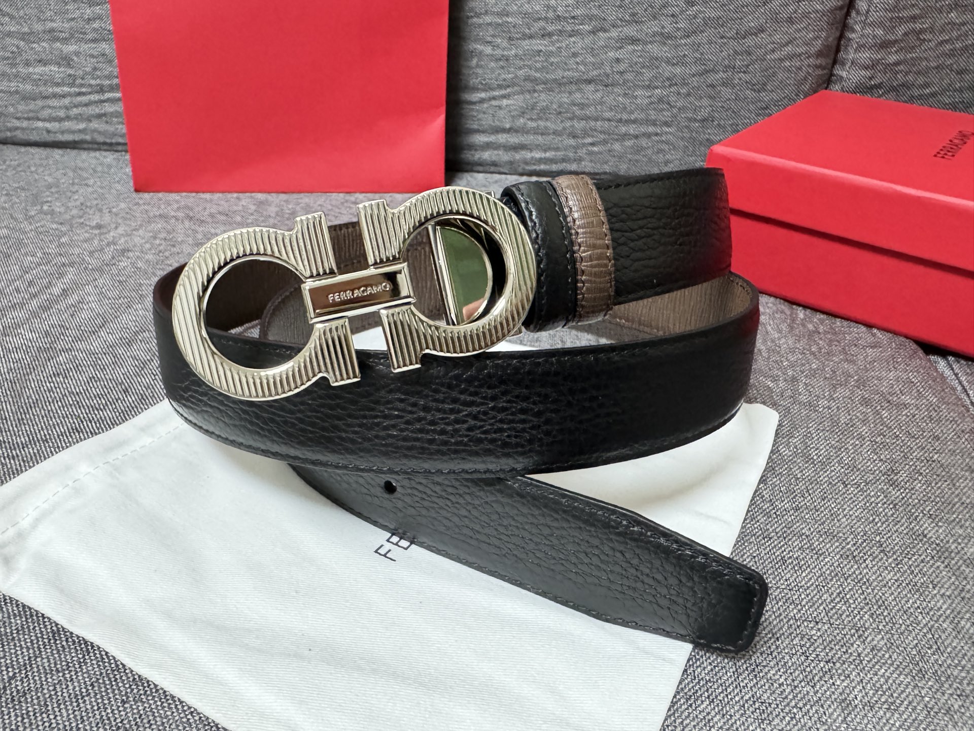 Collection of Good Items—Salvatore Ferragamo Men's 3.5cm Exquisite Counter New Stripe Design, New Logo Double Loop Horsebit Metal Buckle, Top Grain Leather Reversible Versatile Stylish Piece