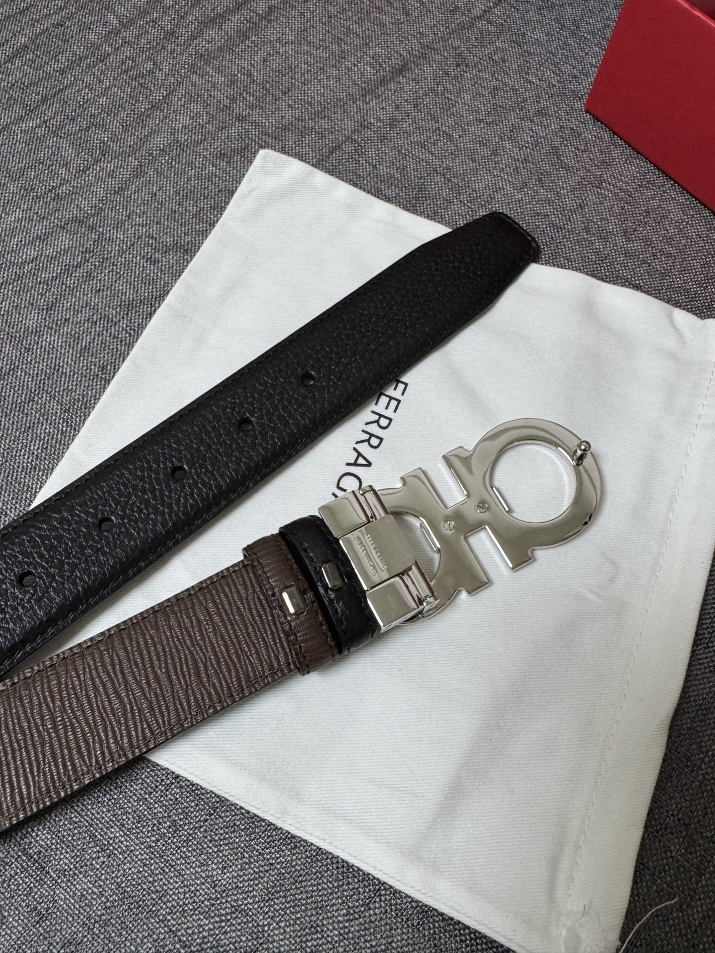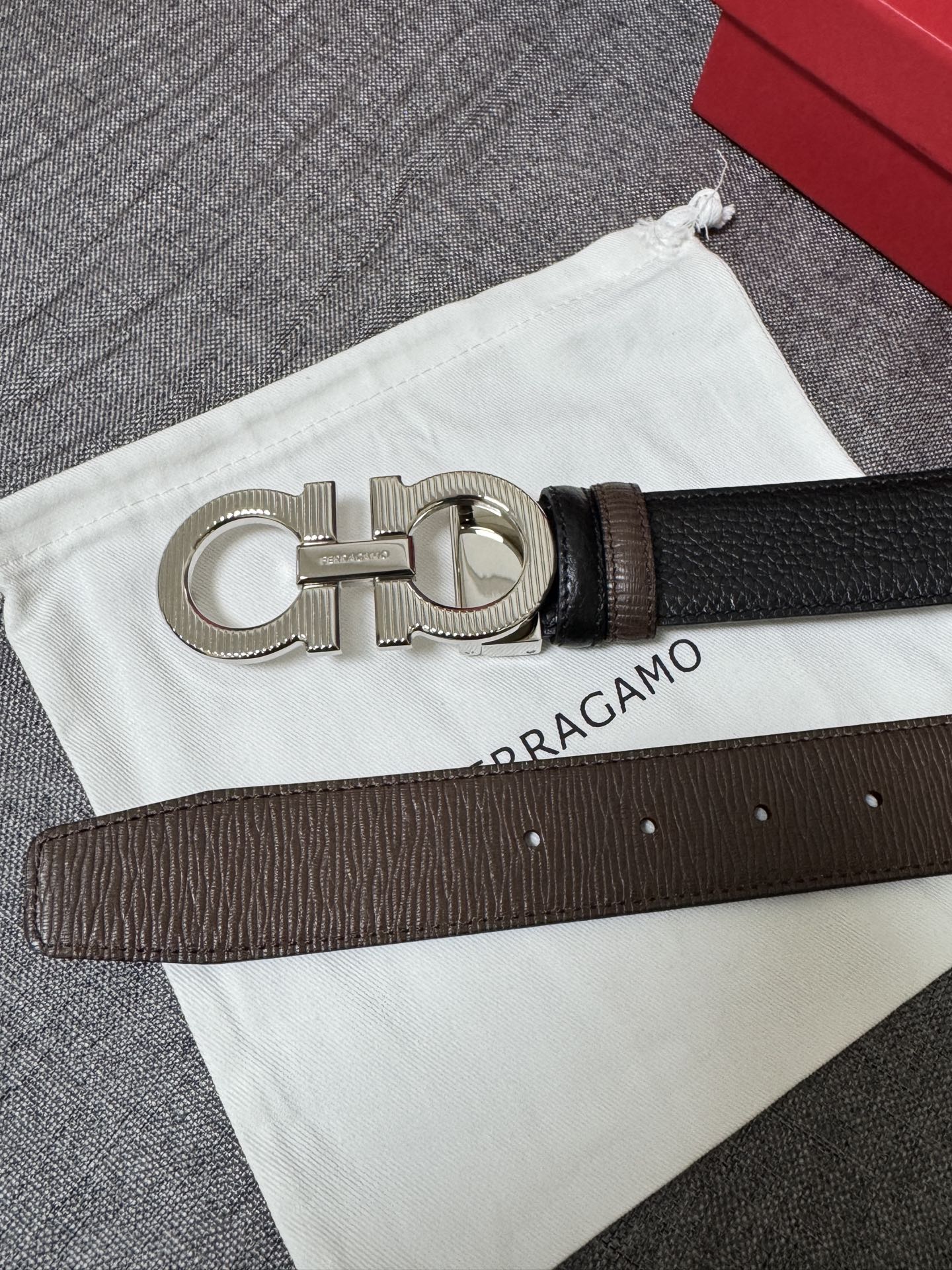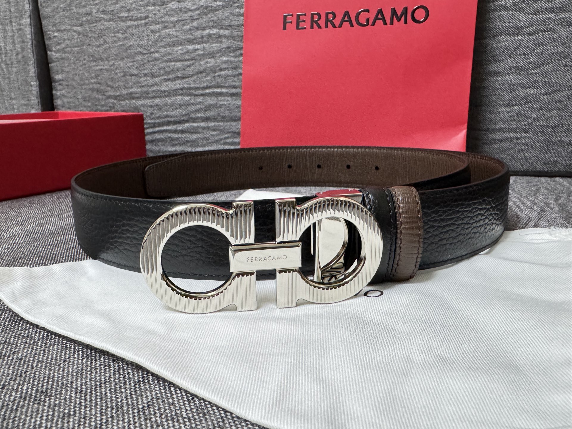 Collection of Good Items—Salvatore Ferragamo Men's 3.5cm Exquisite Counter New Stripe Design, New Logo Double Loop Horsebit Metal Buckle, Top Grain Leather Reversible Versatile Stylish Piece