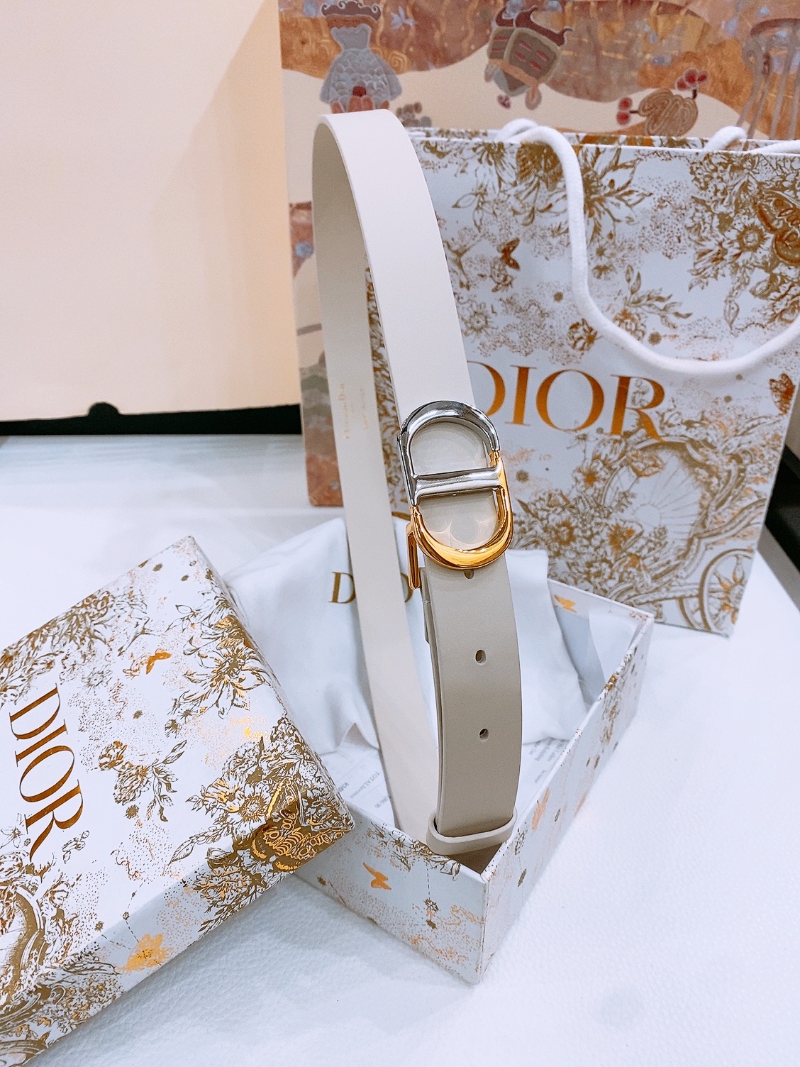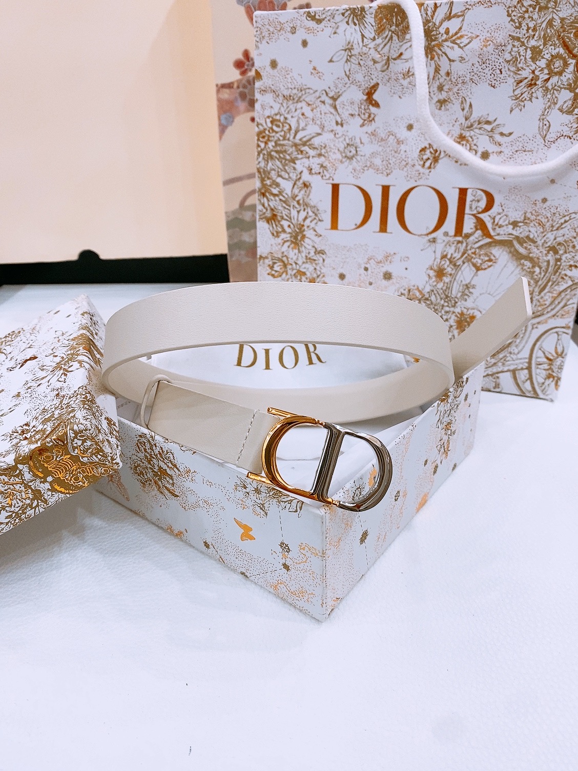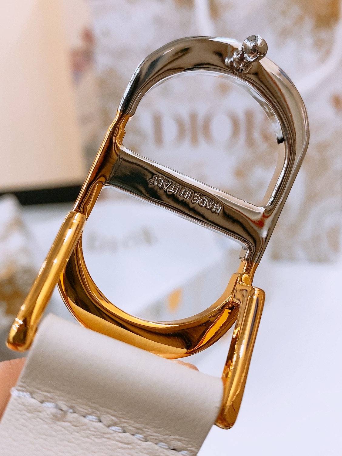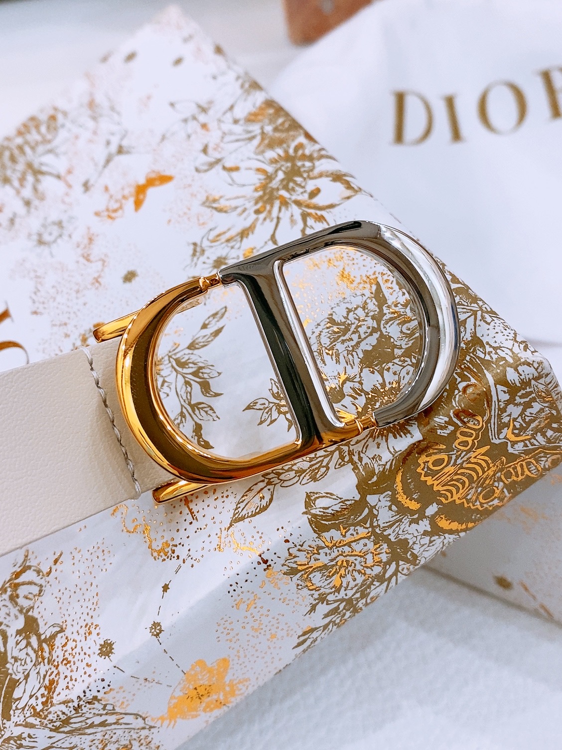 Dior Montaigne CD Belt Featuring the Christian Dior Logo, Shiny Gold-Finish Metal Details, Two Removable Rings, Calfskin Belt