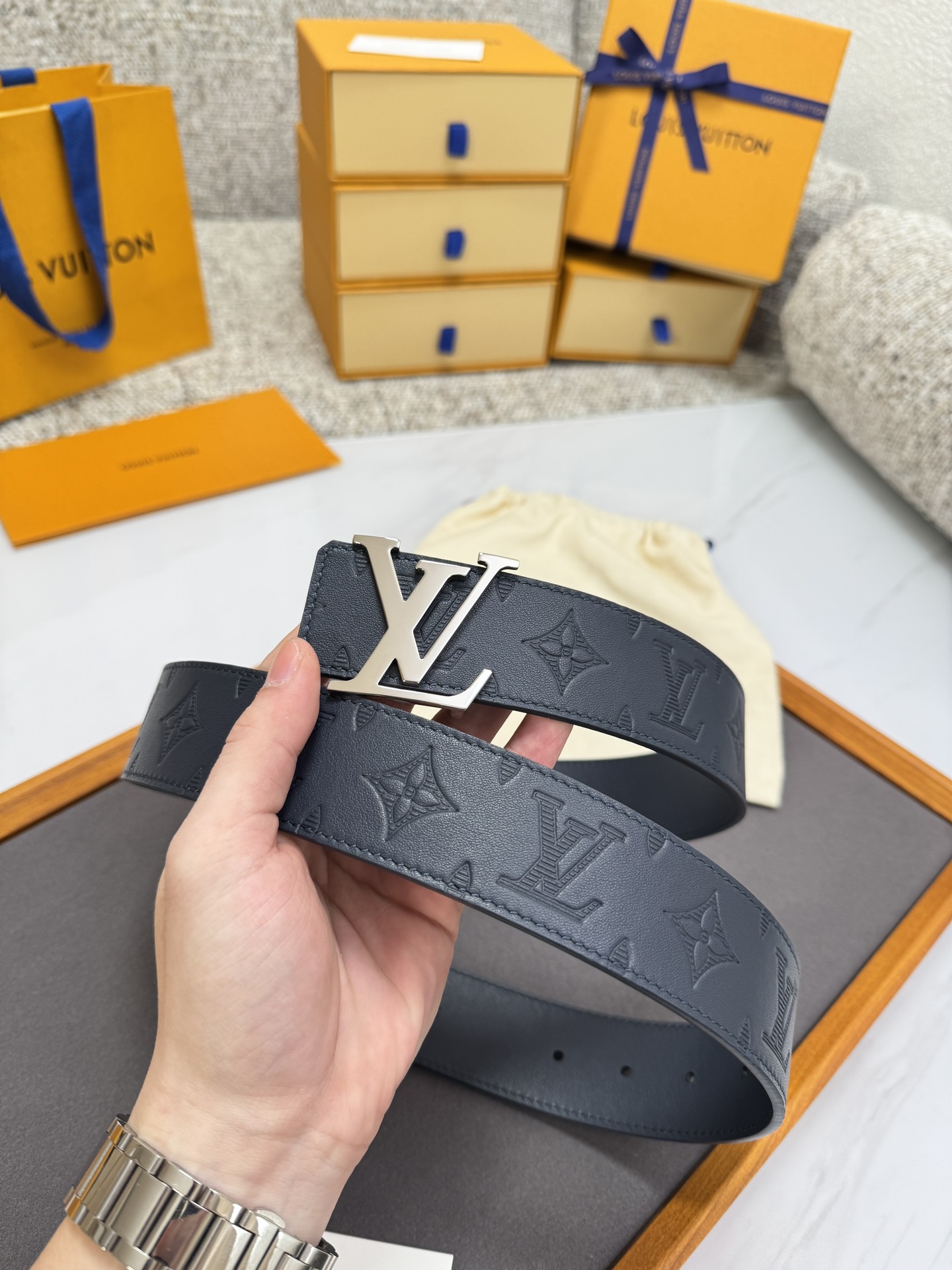 Louis Vuitton LV belt series original hardware exquisite hand-painted edges soft and comfortable width 4.0