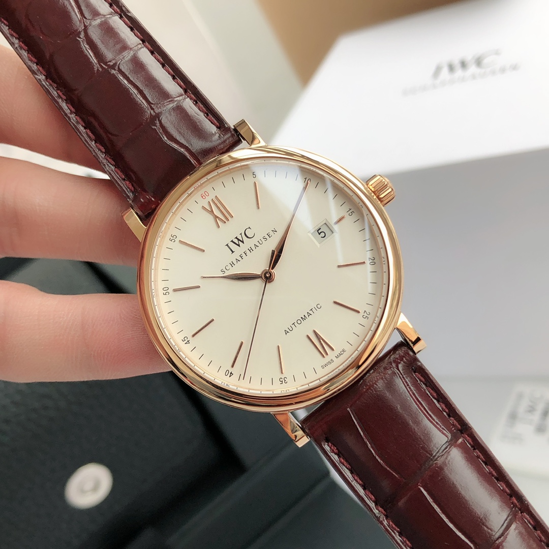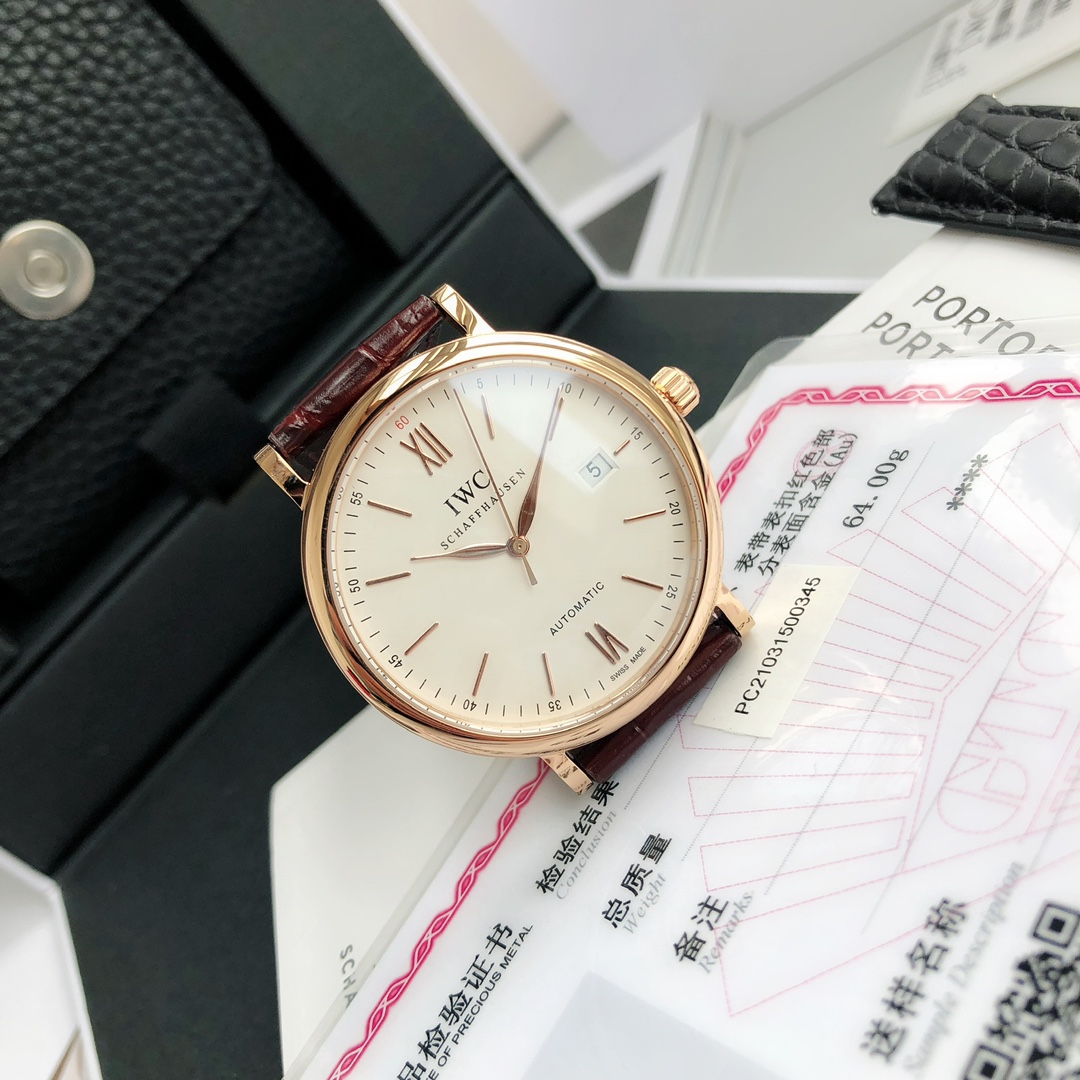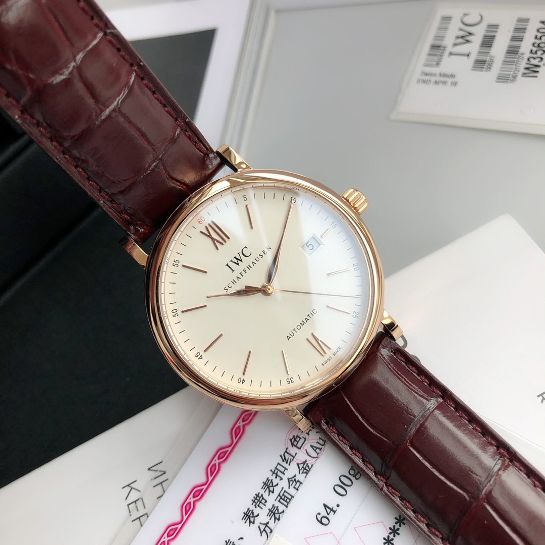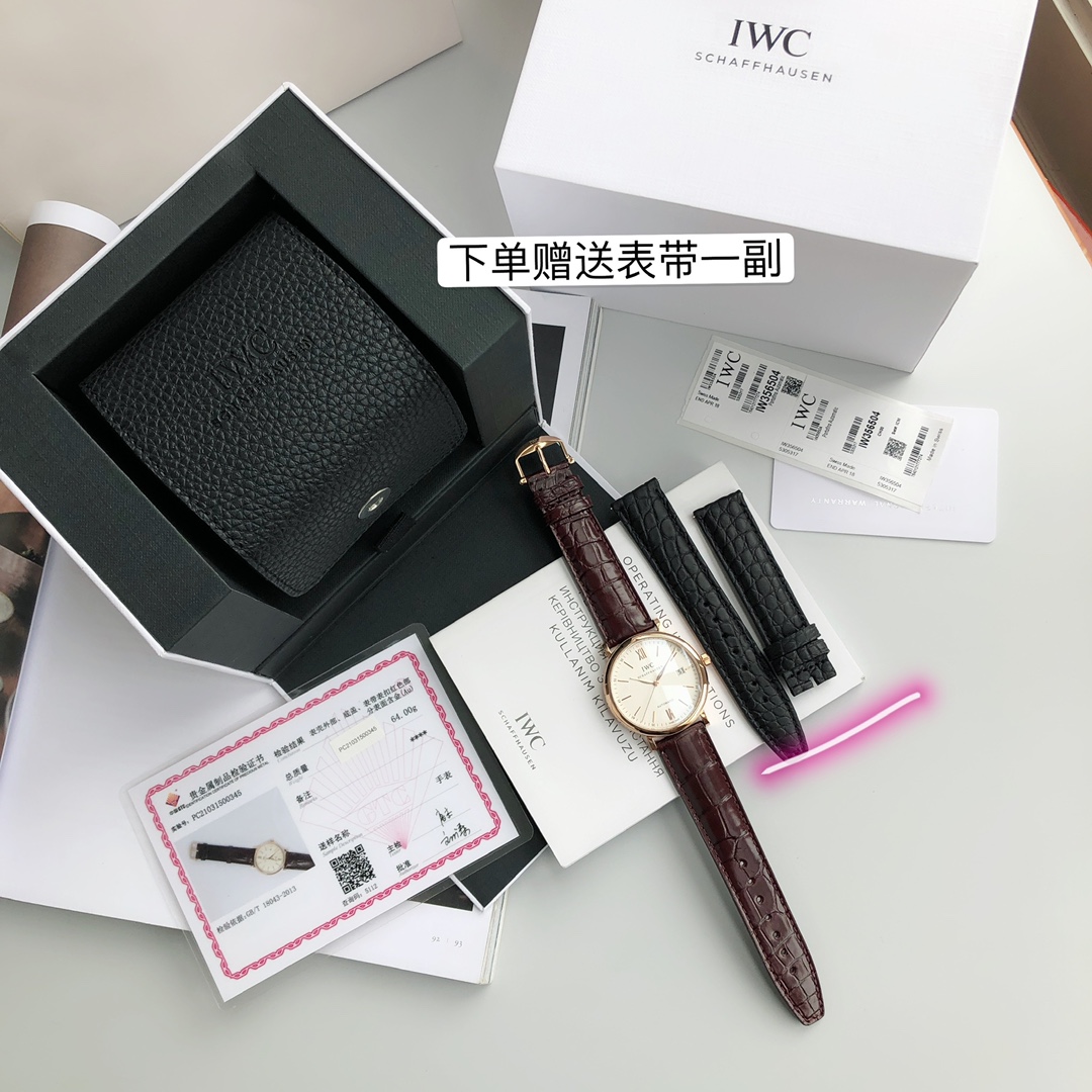 Model: IW356504. The most impressive piece since entering the industry! Export order channel! Original sealed! Only missing a dealer stamp to be authentic! The famous IWC Portofino three-hand gold watch, the Gentleman of the watch world, always exists like a gentleman! Simple and classic, this is the secret to the Portofino automatic watch's success over the years. The 18K red gold case, gold-plated embellishments, and gold-plated hands highlight its grandeur and high aesthetics! The exquisite engraving of a harbor scene on the case back is the most distinctive feature of the Portofino three-hand gold watch, exuding elegance and nobility everywhere! Equipped with an original Swiss ETA-W300 automatic mechanical movement (also named 35111 by IWC), anti-glare sapphire crystal, and an American alligator leather strap, it is the ideal watch for most men. The dial is clean, slim, low-key, and meaningful. With a formal 40mm case diameter, the willow-leaf hand design never gets old, and the red highlight on the "60" numeral is the perfect finishing touch! Available in three color schemes: white dial, blue dial, and gray dial. The warranty card, tag, and outer packaging all have labels with the model and the watch's unique serial number. Being able to get such a perfect piece truly makes me happy for you! Unbeatable value for money, exclusive supply, act fast...