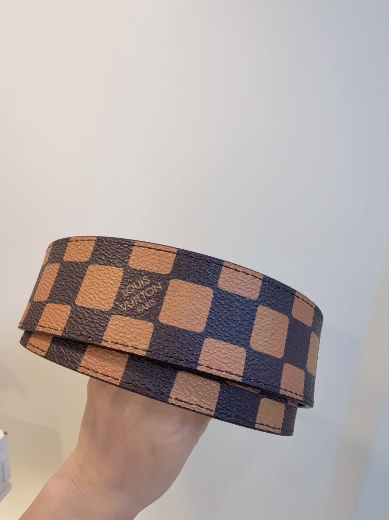 This double-sided belt is crafted from Monogram coated canvas, with the brand's Flower embossing on the back leather showcasing the new design by Pharrell Williams. The unique buckle incorporates bold letters and delicate floral patterns, giving the brand elements a modern charm.