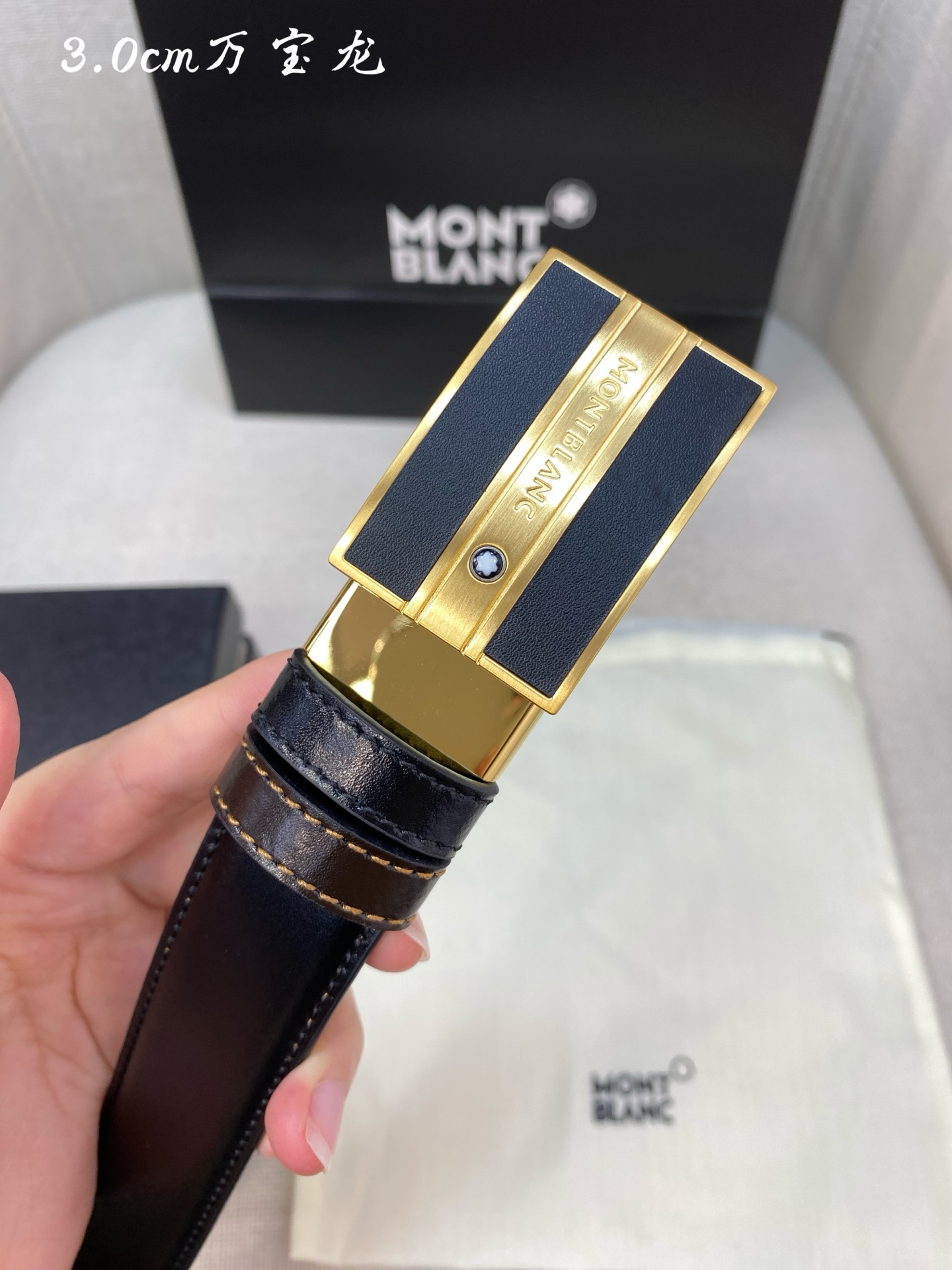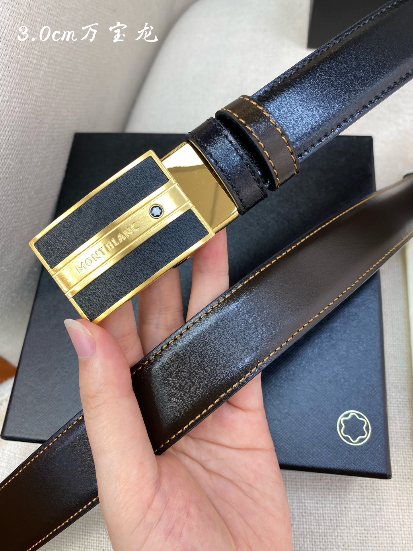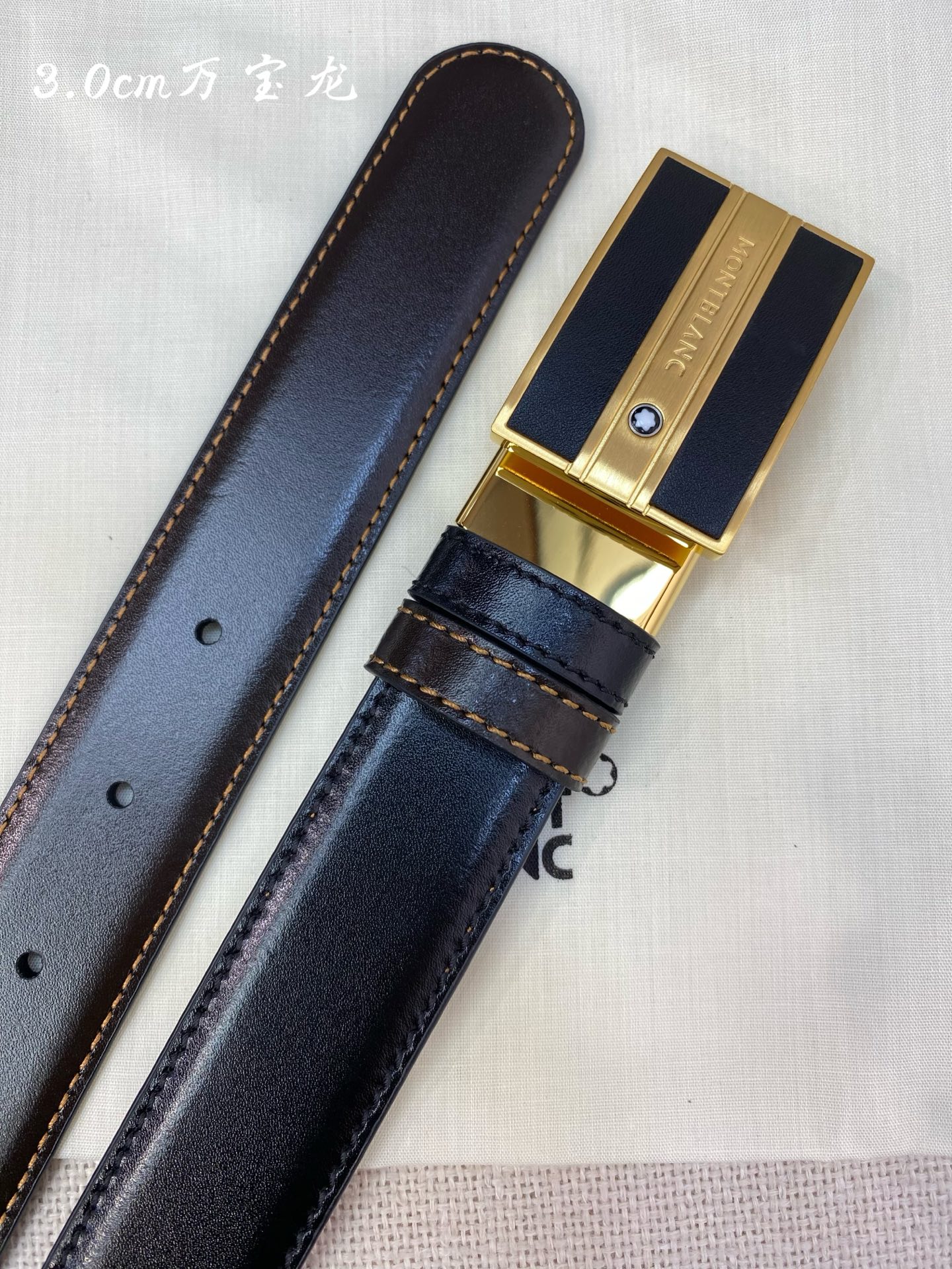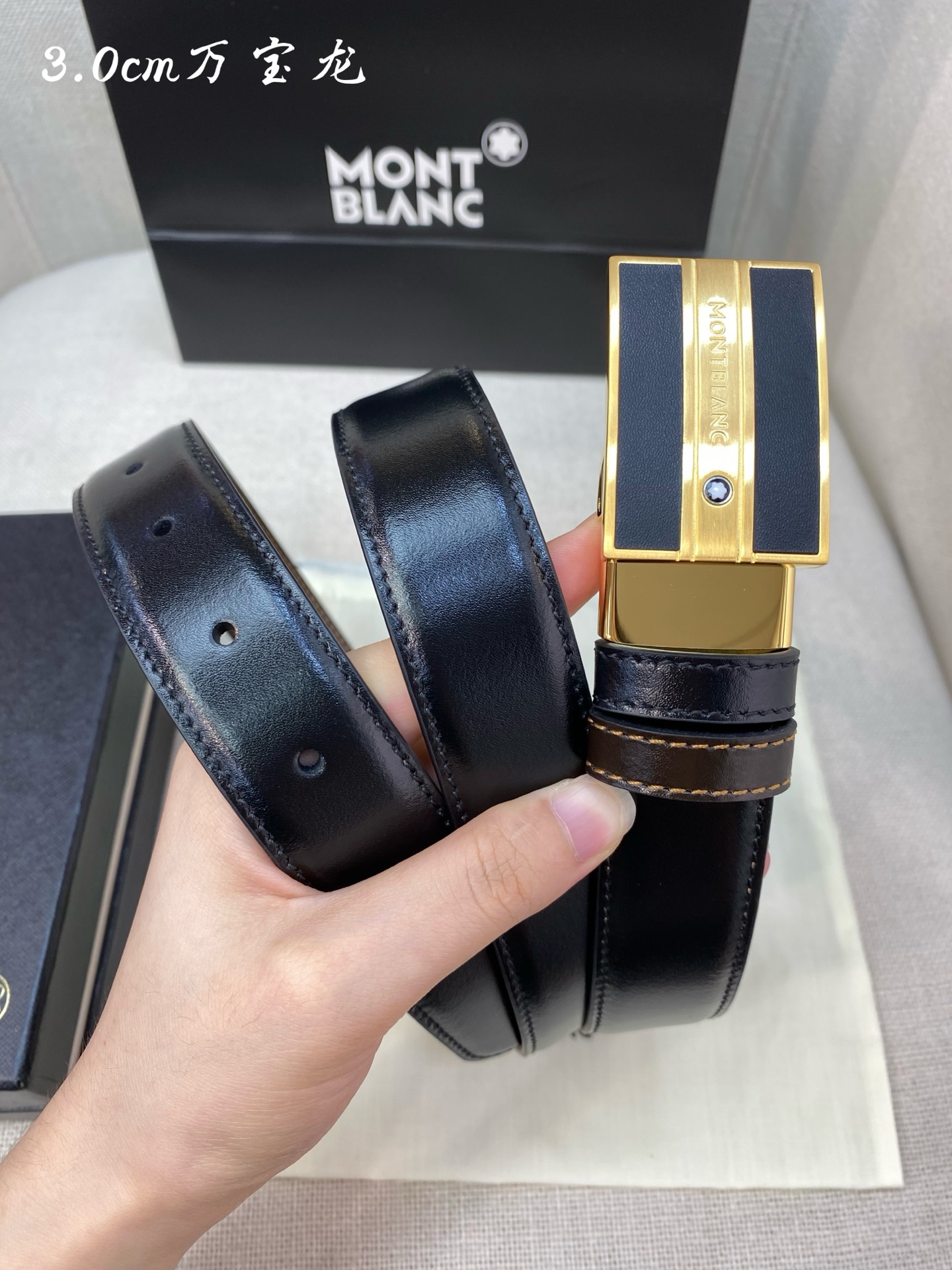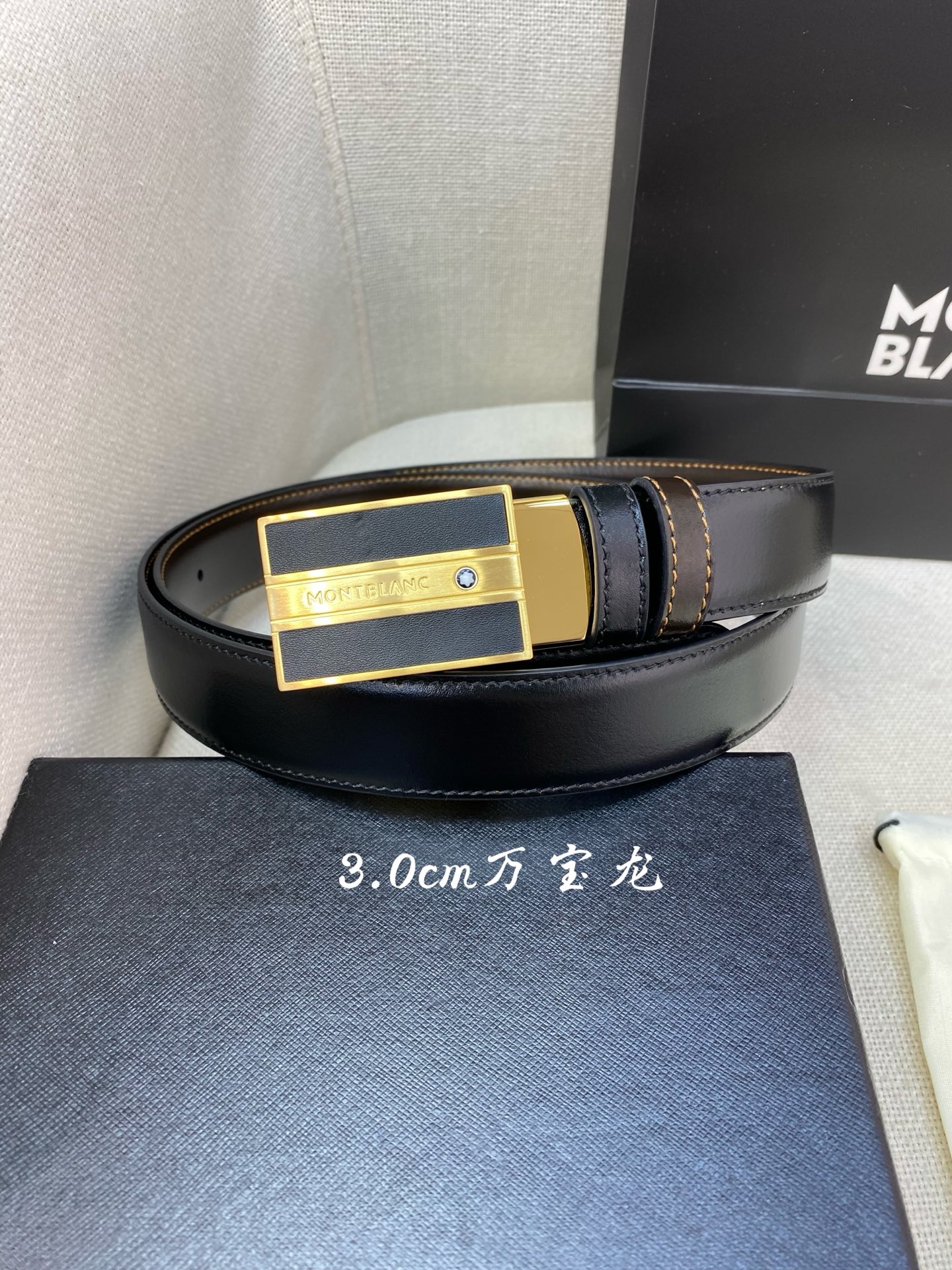 Montblanc 3.0cm wide, made of top grain leather, high-quality pin buckle, free-cut business casual belt