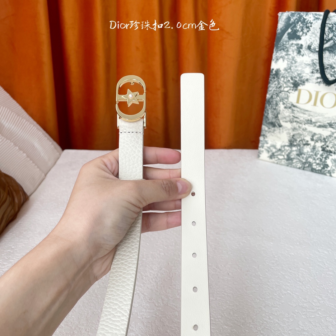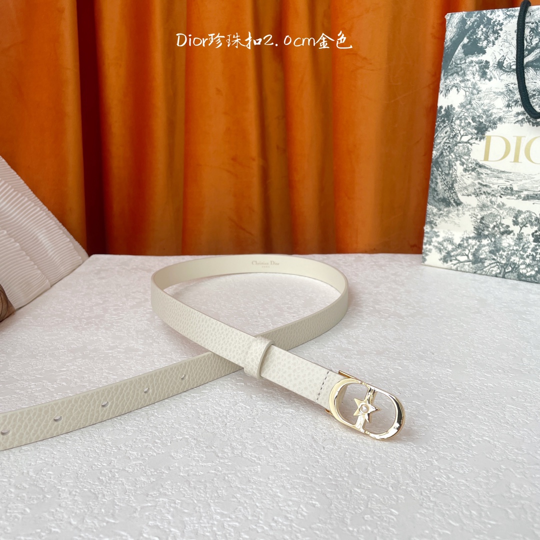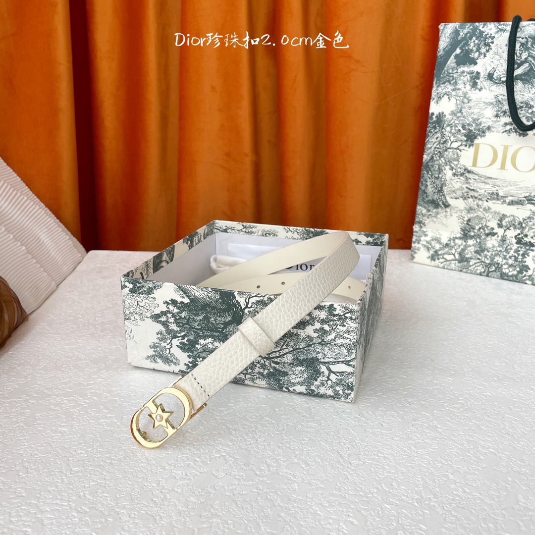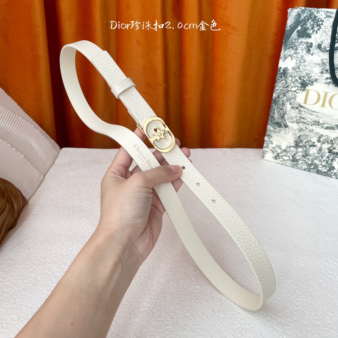 Dior's new belt is made of exquisite top-grain leather, soft to the touch, comfortable and delicate. It features a delicate and elegant five-point star pearl buckle, stylish and generous. Width 2.0cm
