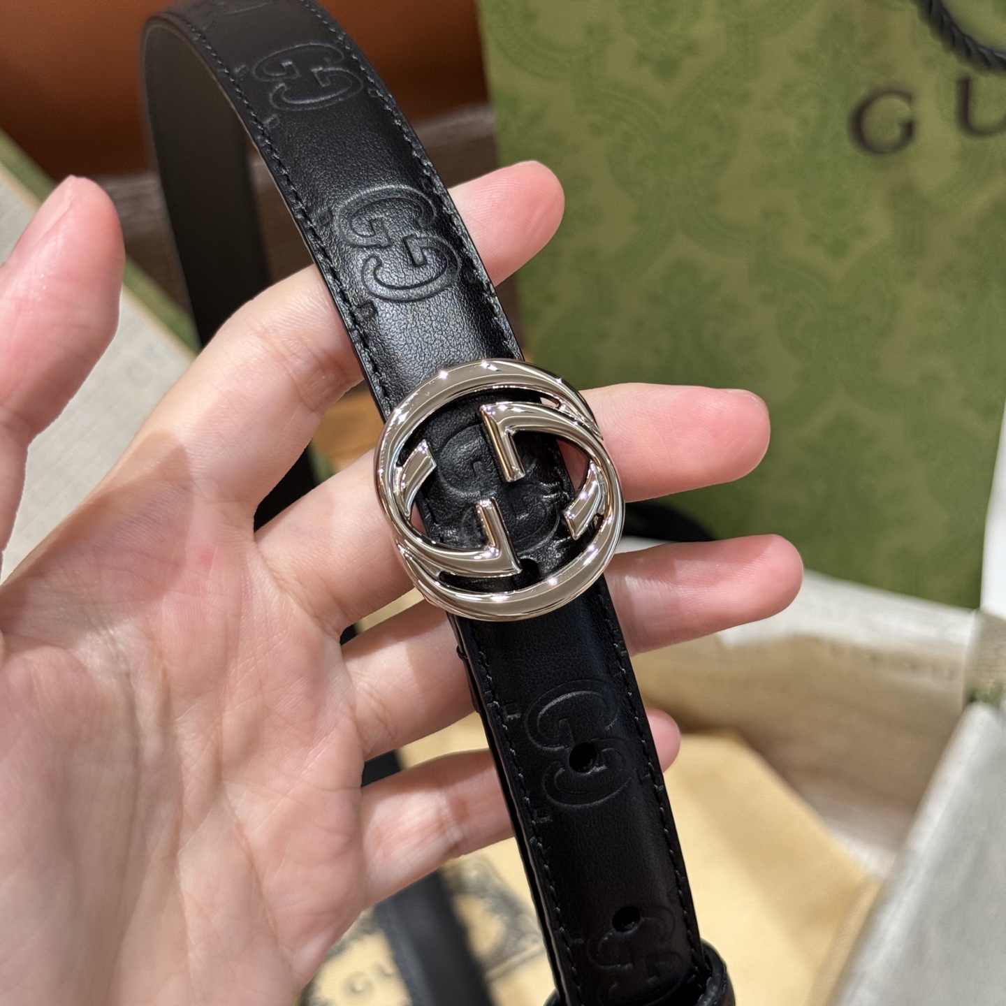 Classic double G buckle design, durable, glossy finish for a more exquisite look. Made from Italian top-grain leather with a fine texture, suitable for any occasion, perfectly matching any style. Width 2cm, a must-have item in the wardrobe.