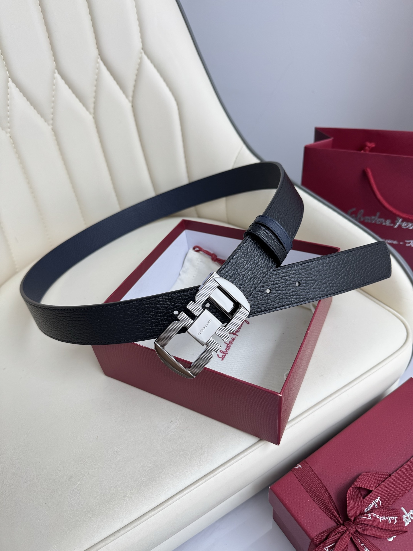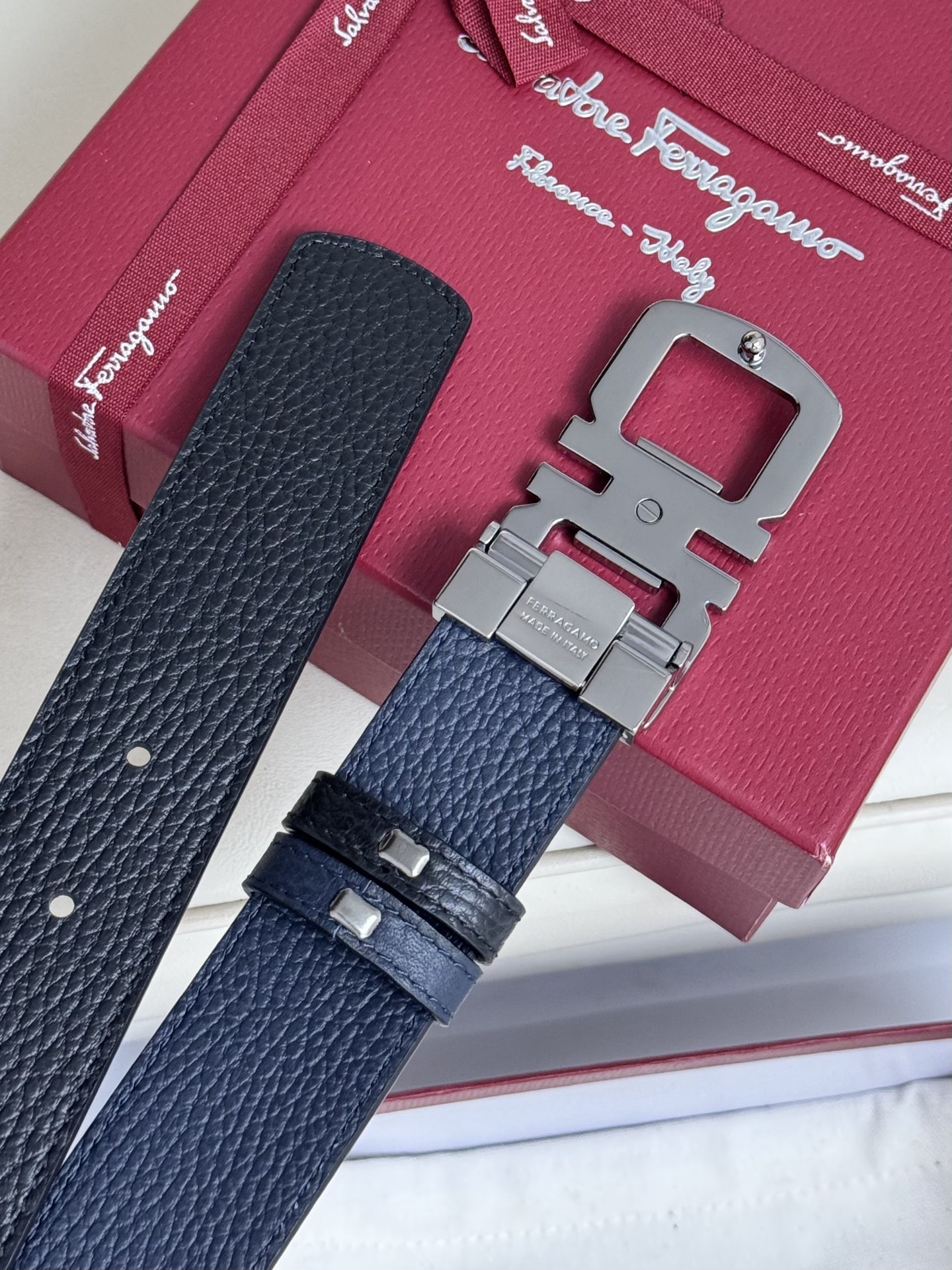(Ferragamo) Double-sided original imported top-grain leather, usable on both sides, vacuum electroplated copper buckle, exquisite workmanship, boutique quality! Fashionable, casual, versatile, and highly popular! Comes with a full set of boutique packaging, width 3.5.