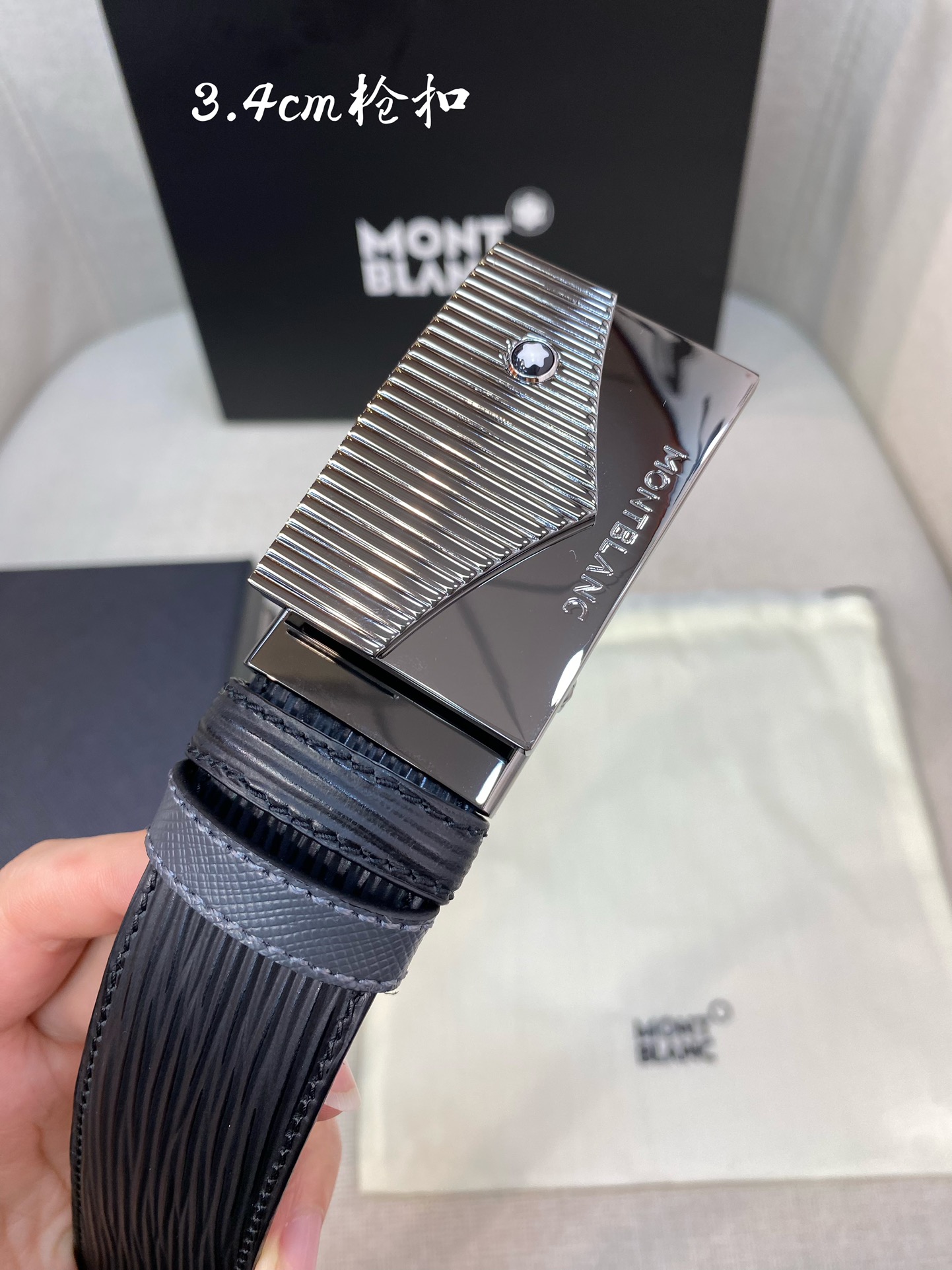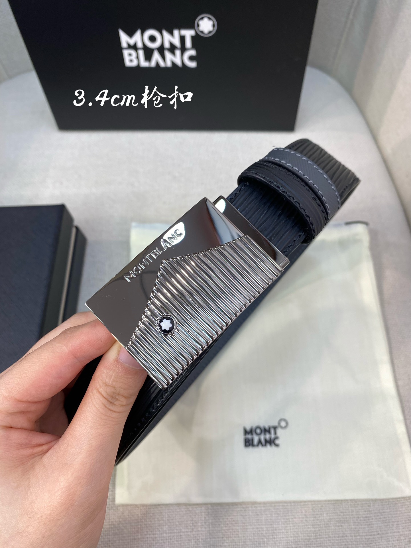 Montblanc 3.5cm wide genuine leather belt with pin buckle, business casual style.