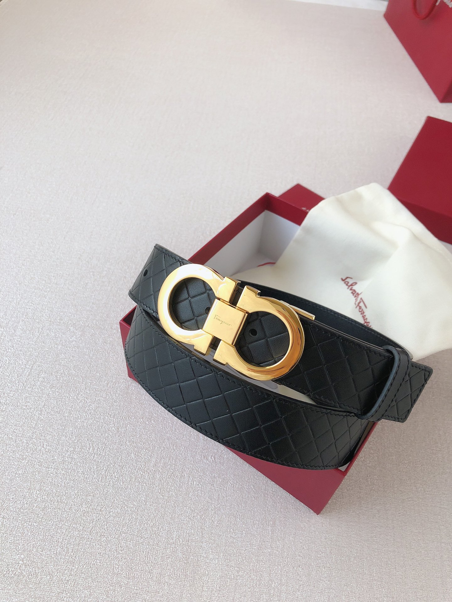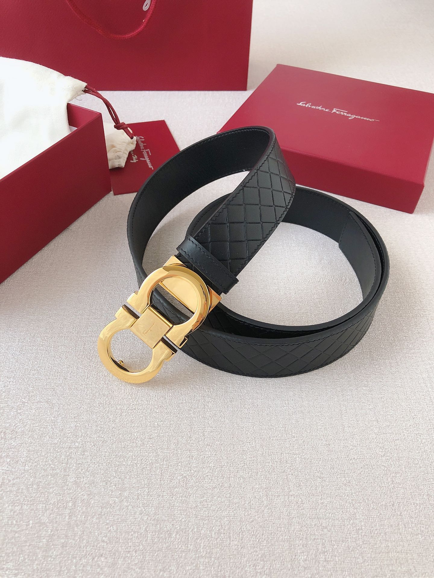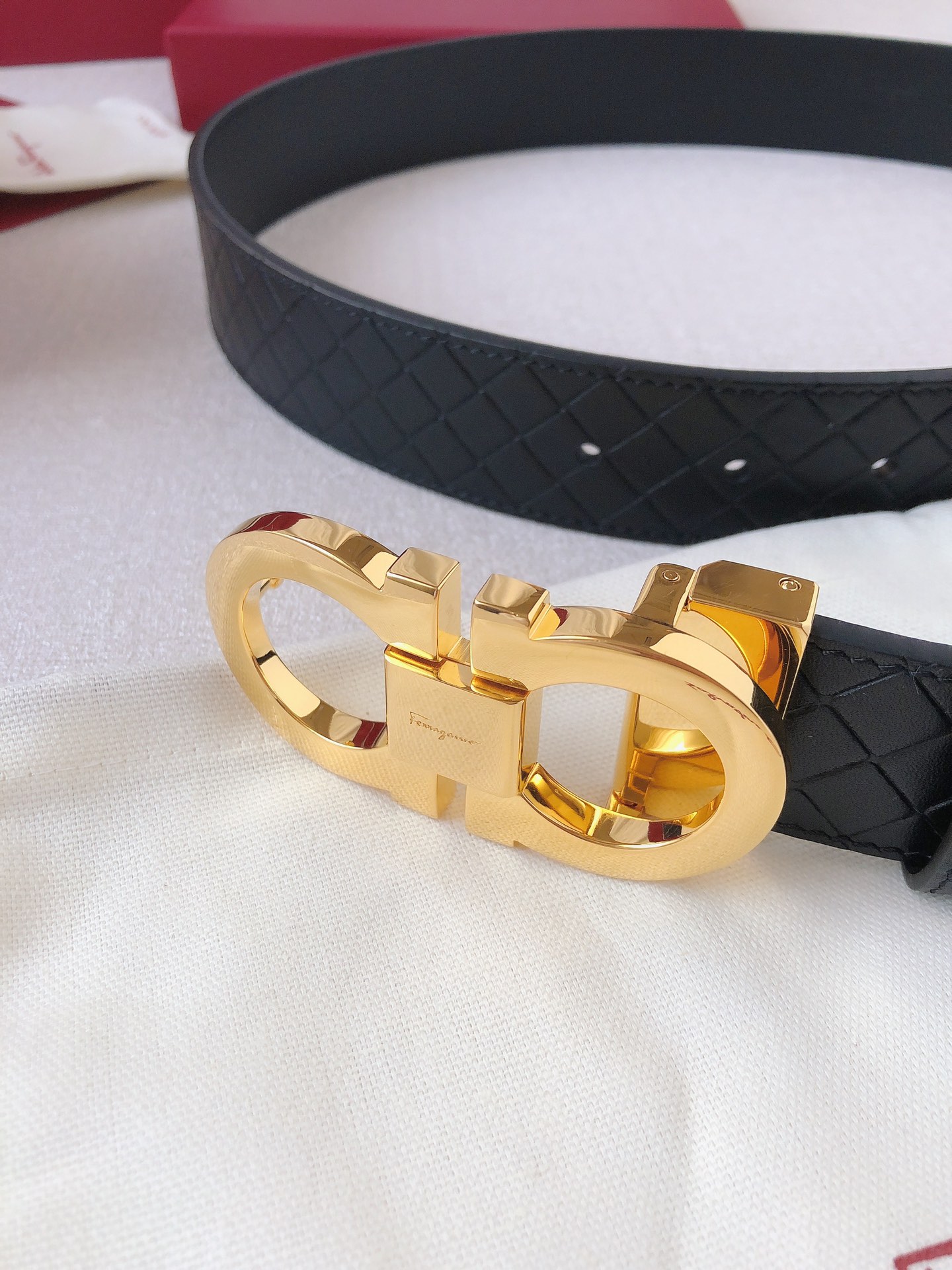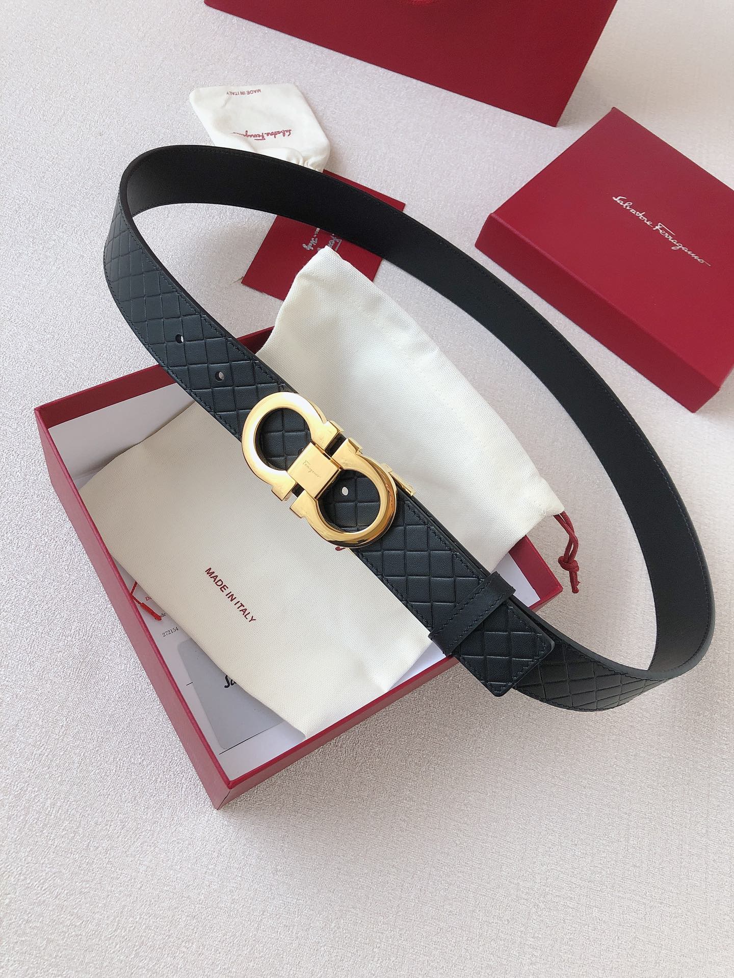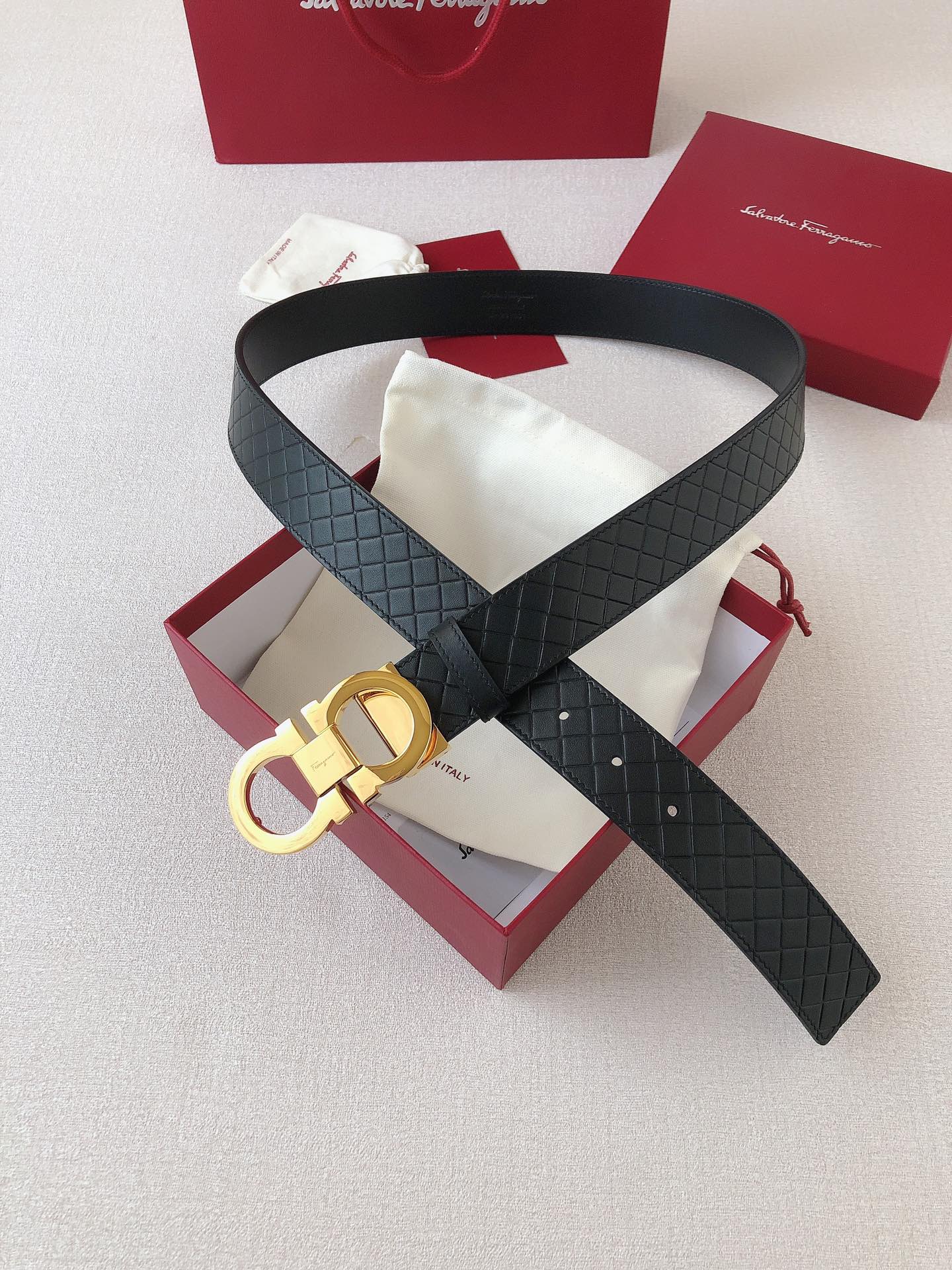 Ferragamo has recreated one of its most iconic symbols, blending the craftsmanship of artisans with modern style, the GANCINI ICONIC style. Timeless elegance undergoes a bold and unexpected transformation. Double-sided top-layer leather paired with high-quality metal buckle; width 35mm