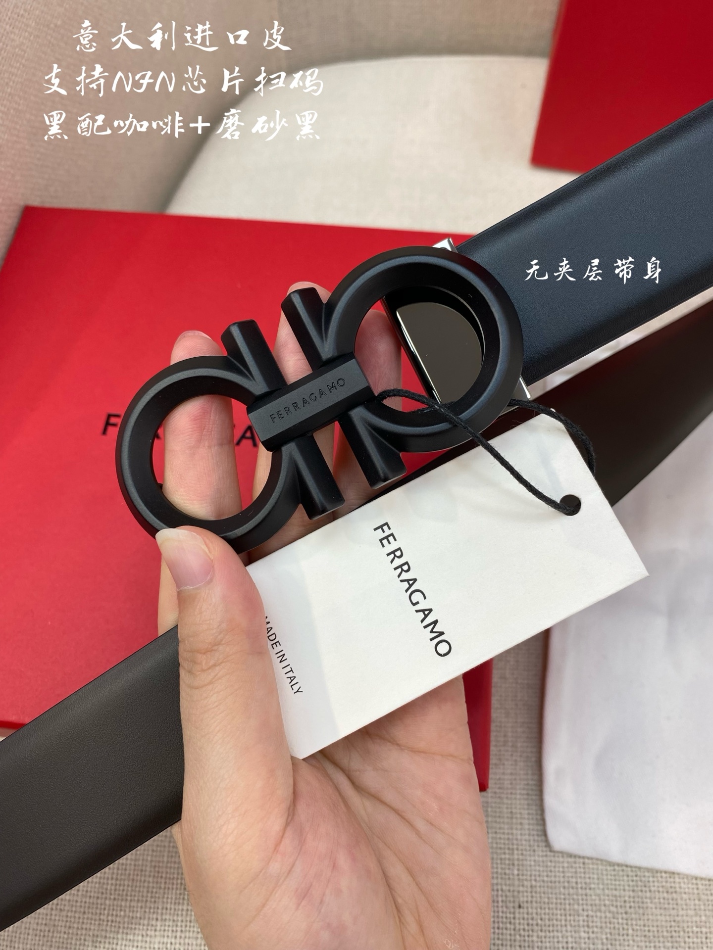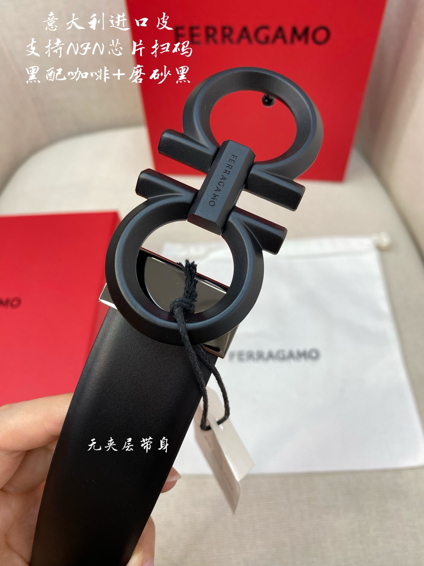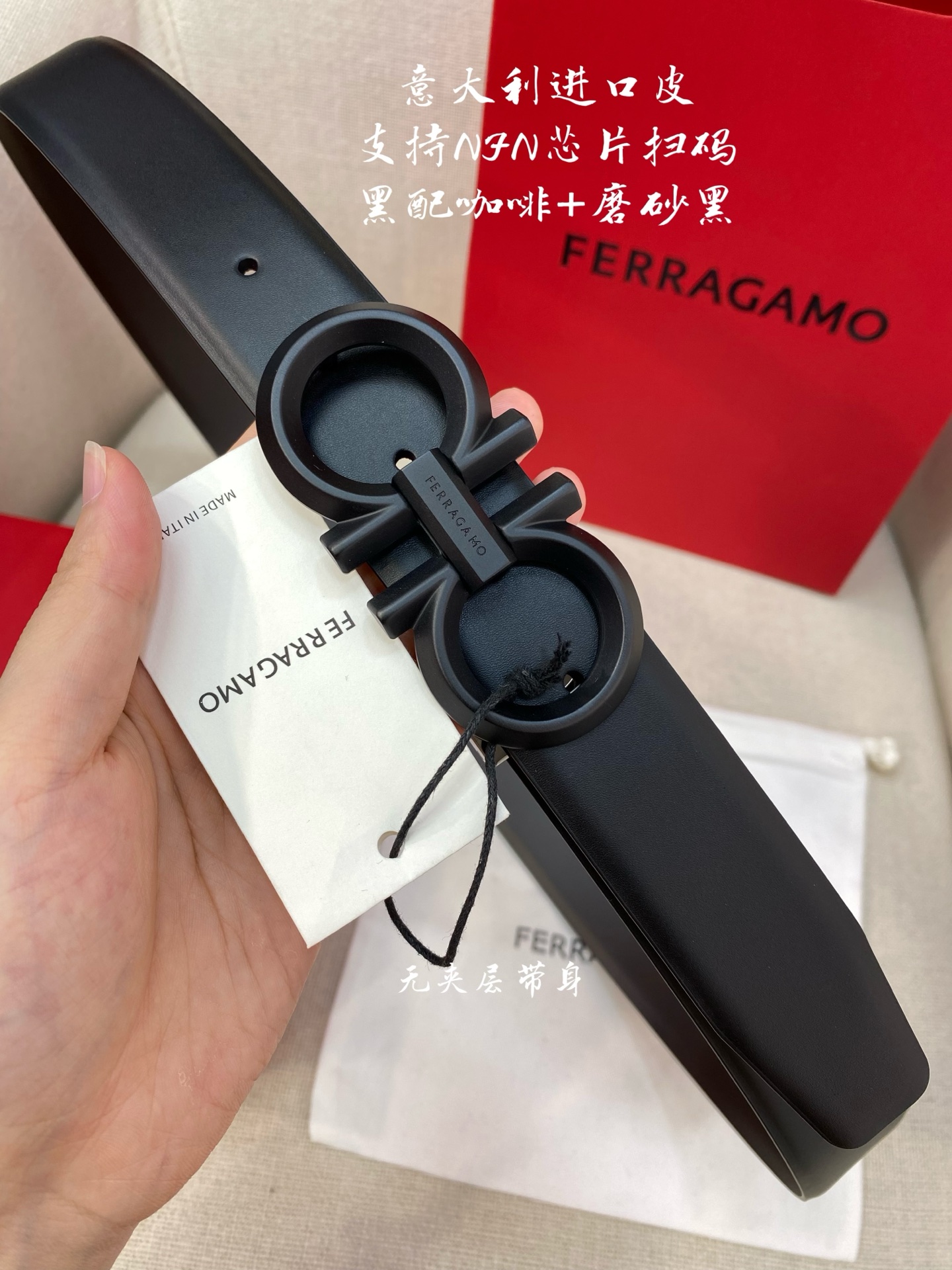 Ferragamo Ferragamo NFC chip scanning code version Genuine size 3.5cm Italian original factory leather