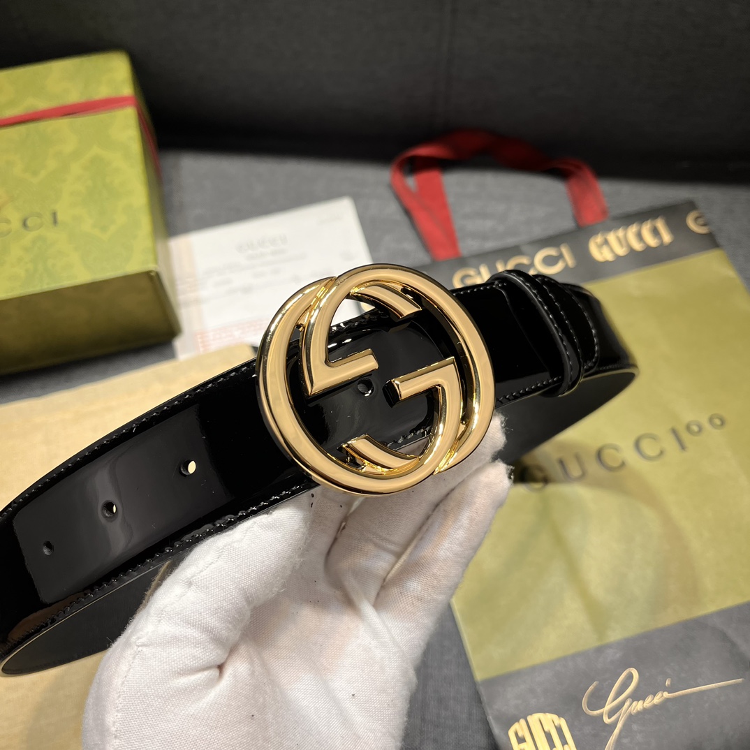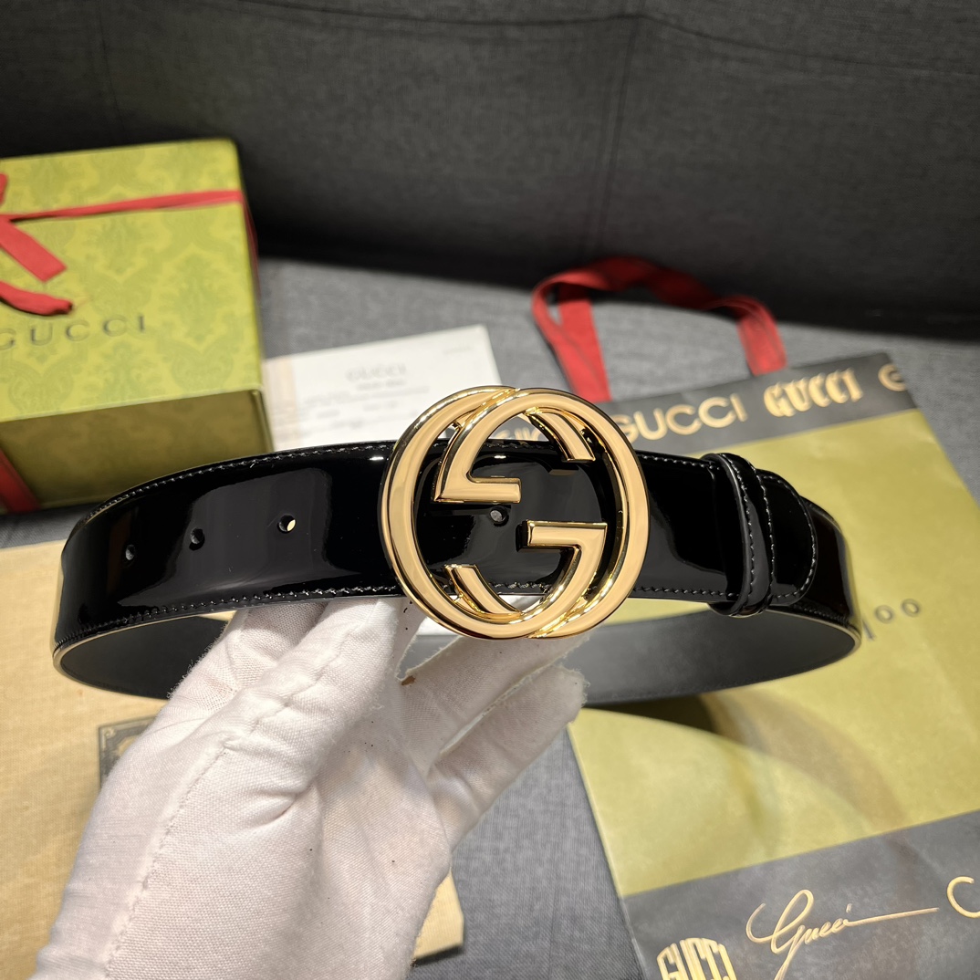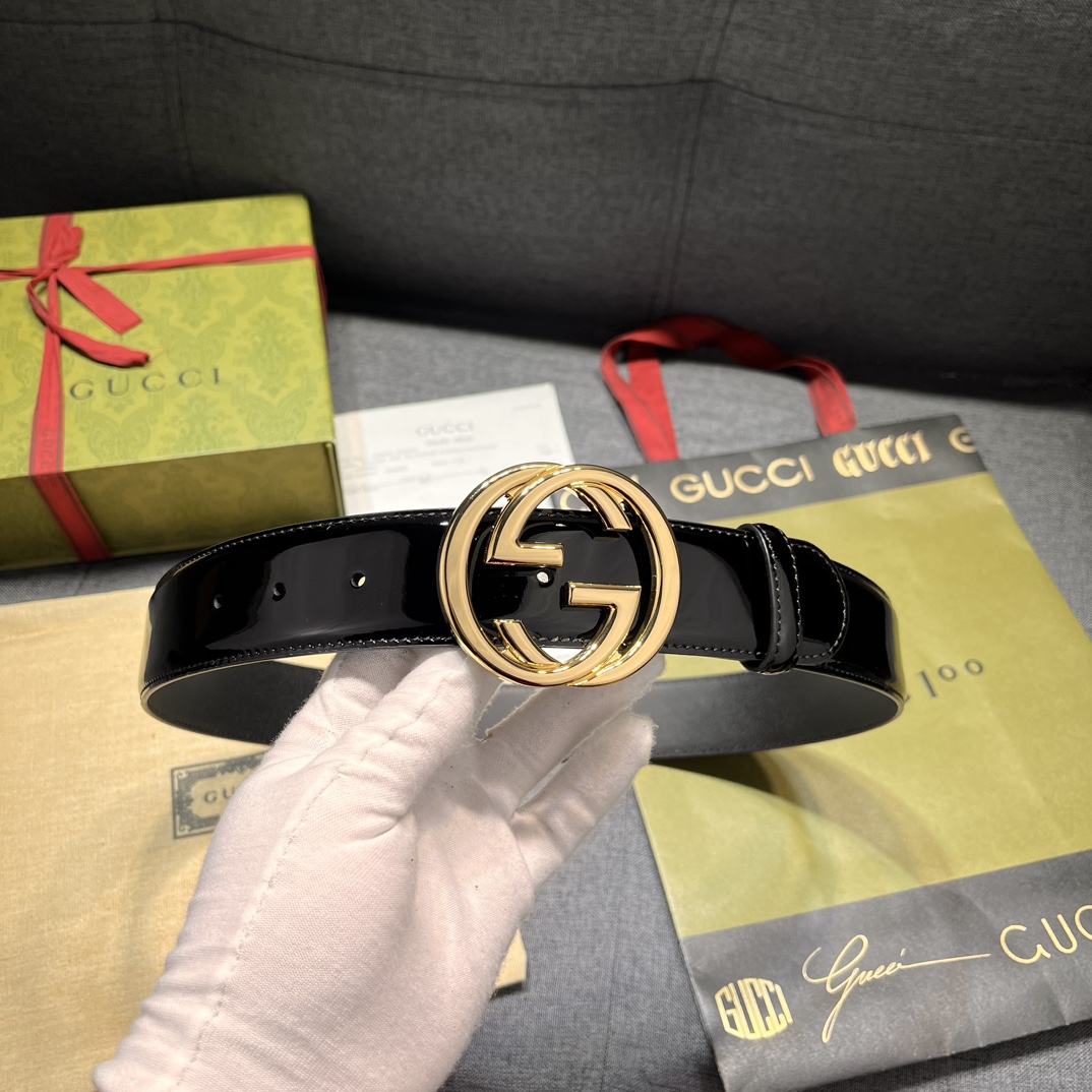 Gucci width 4.0cm new model classic details and modern elements add eye-catching highlights to Gucci's new series. Skillfully integrated with classic letter interlocking shape accessories, paying tribute to the brand founder Mr. Guccio Gucci. This belt is made of top-layer leather, meticulously decorated with GG belt buckle