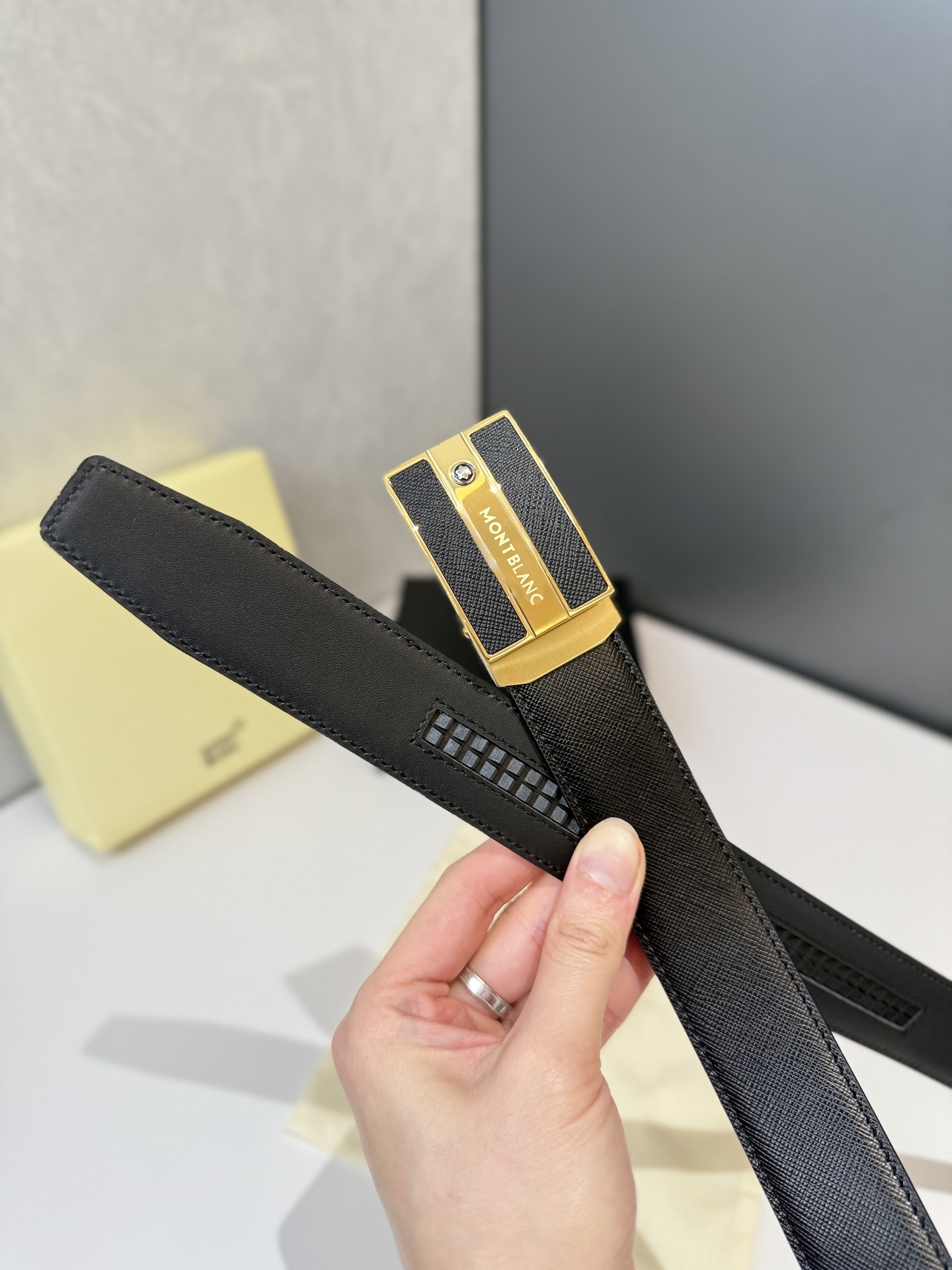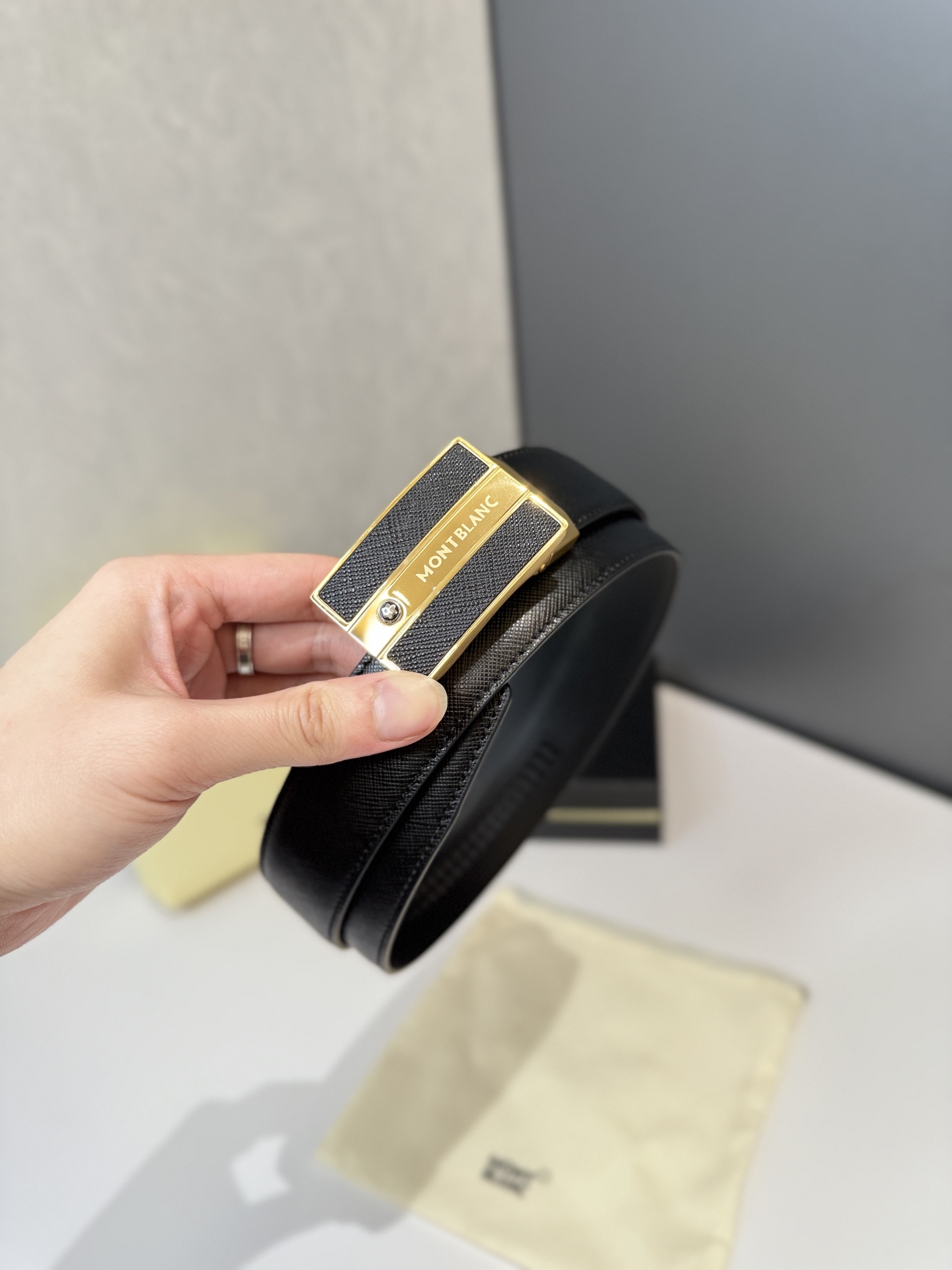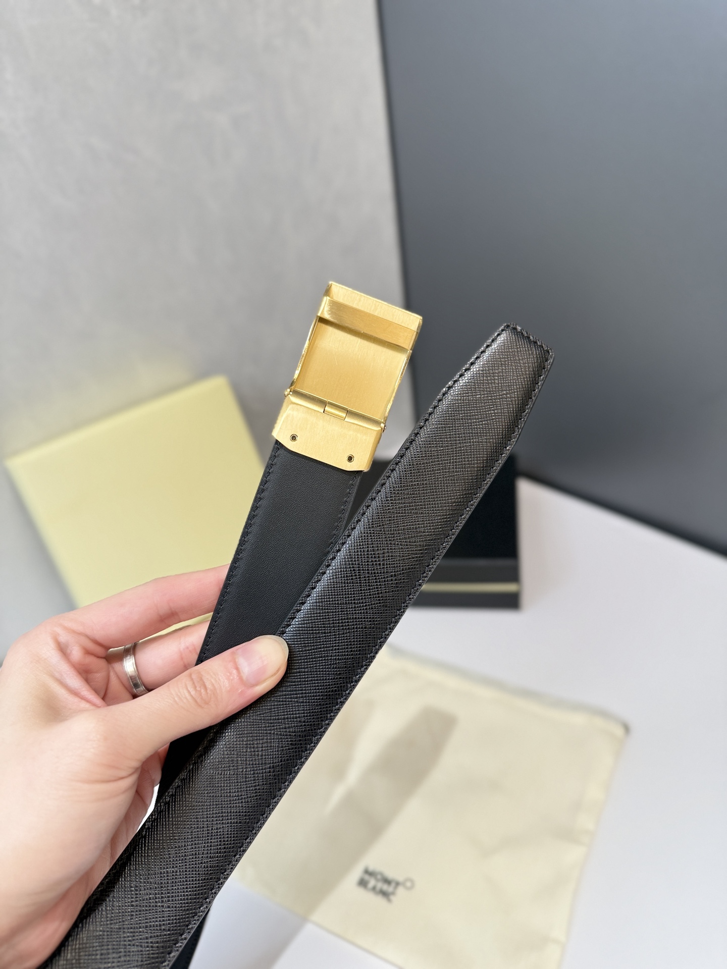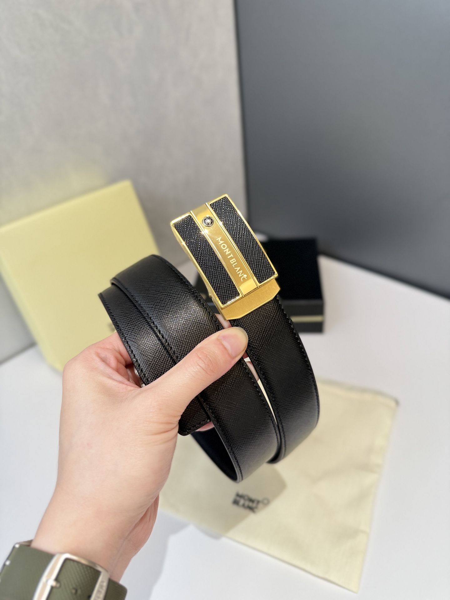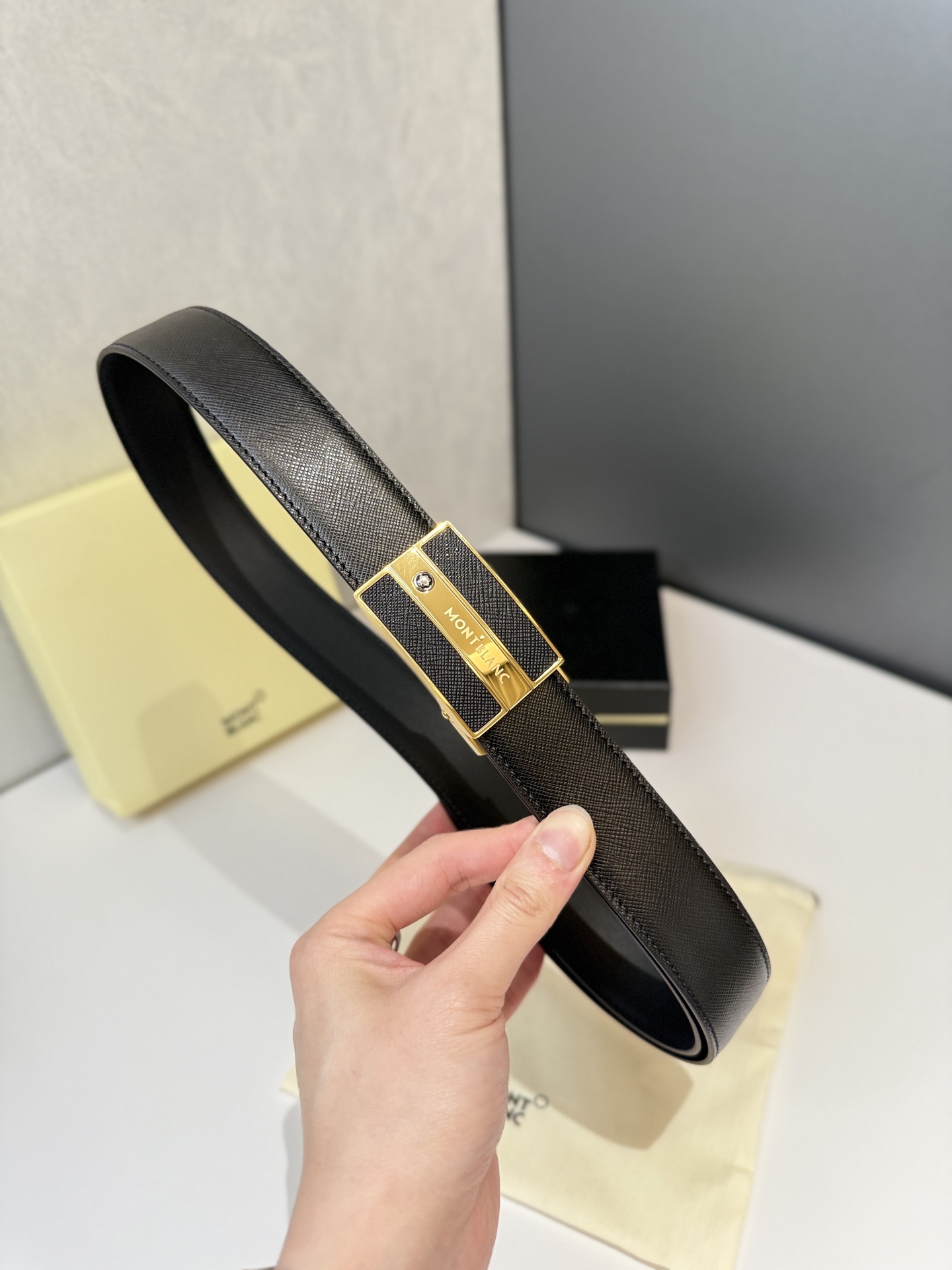 Montblanc Automatic Smooth Buckle Belt is one of the classic accessories of the luxury brand Montblanc, renowned for its exquisite design, high-quality materials, and exceptional craftsmanship. Montblanc belts are typically suitable for business, formal occasions, or daily wear, showcasing understated luxury. Stainless steel automatic hardware paired with double-sided original top-grain leather. Length can be adjusted.