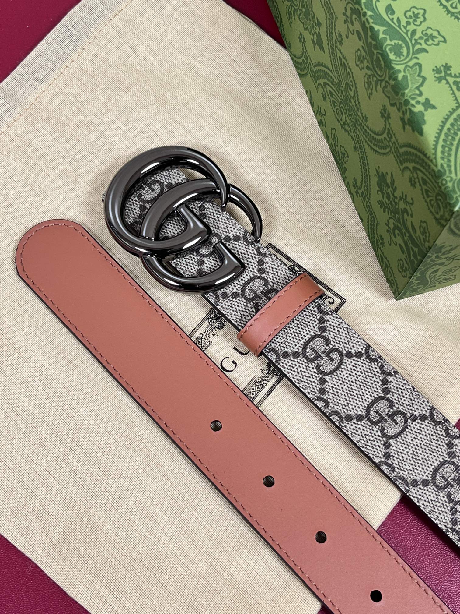 Seasonal new style. One side canvas, one side calfskin, paired with a premium buckle. 3.0 Apricot Buckle